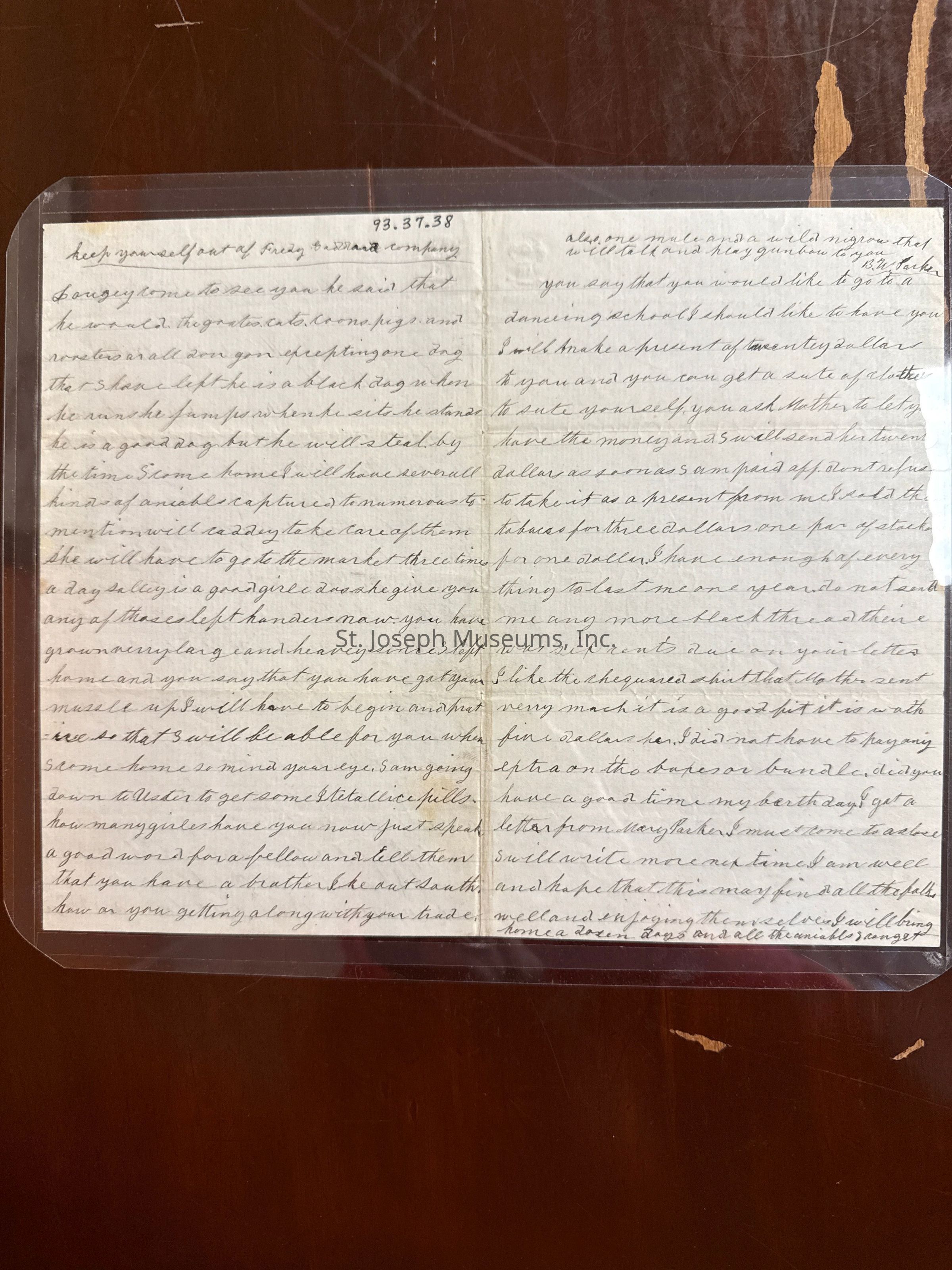 Civil War Letter: Parker, Benjamin Letter, Tivoli Circle, to his brother Clark, 1864Entry/Object ID