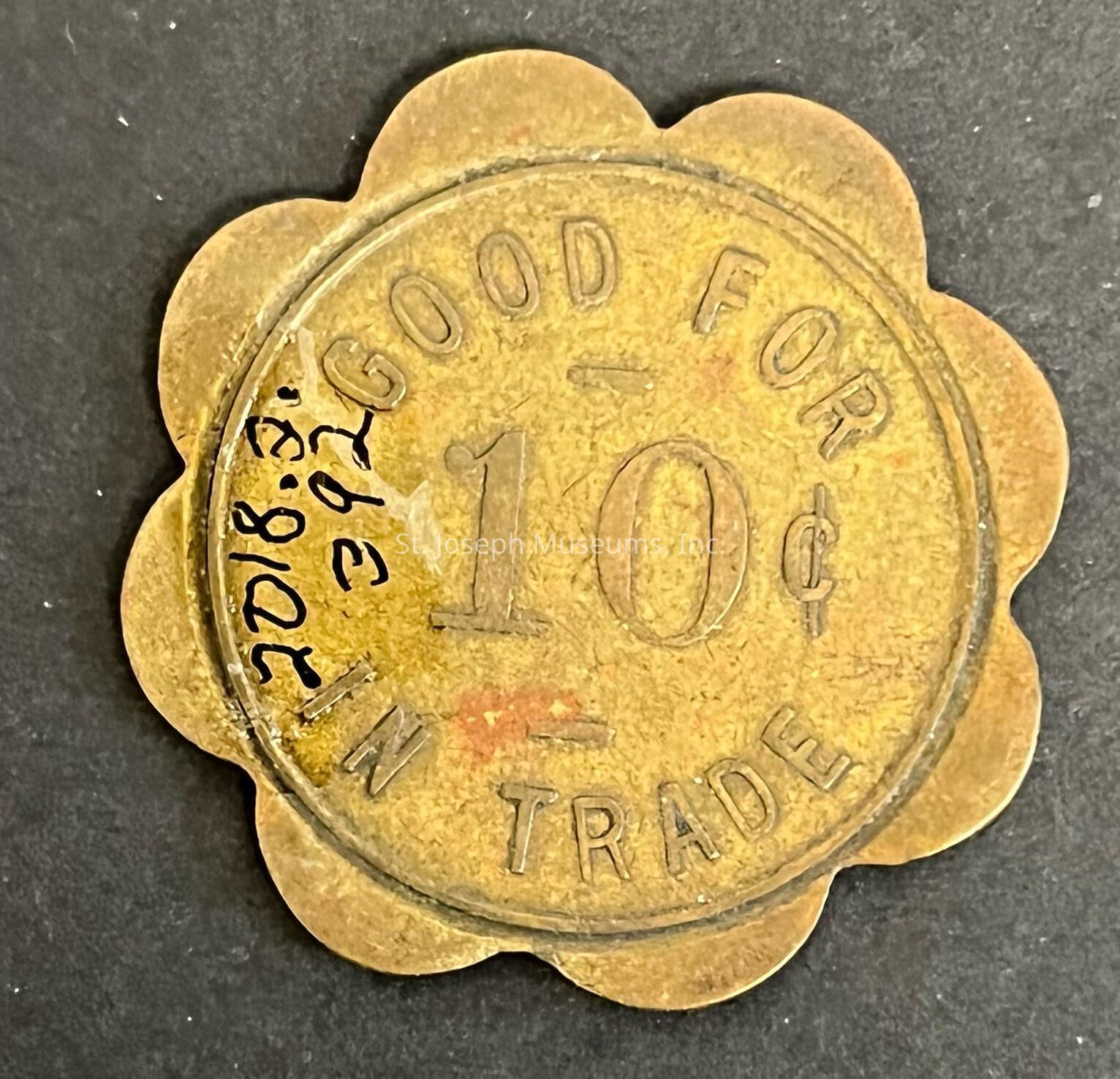 ONE/GOLD COLORED/METAL/ SCALLOPED EDGE/D & G TAVERN 1918 FREDERICK AVE. ON ONE SIDE/GOOD FOR 10 C ON THE OTHER SIDE