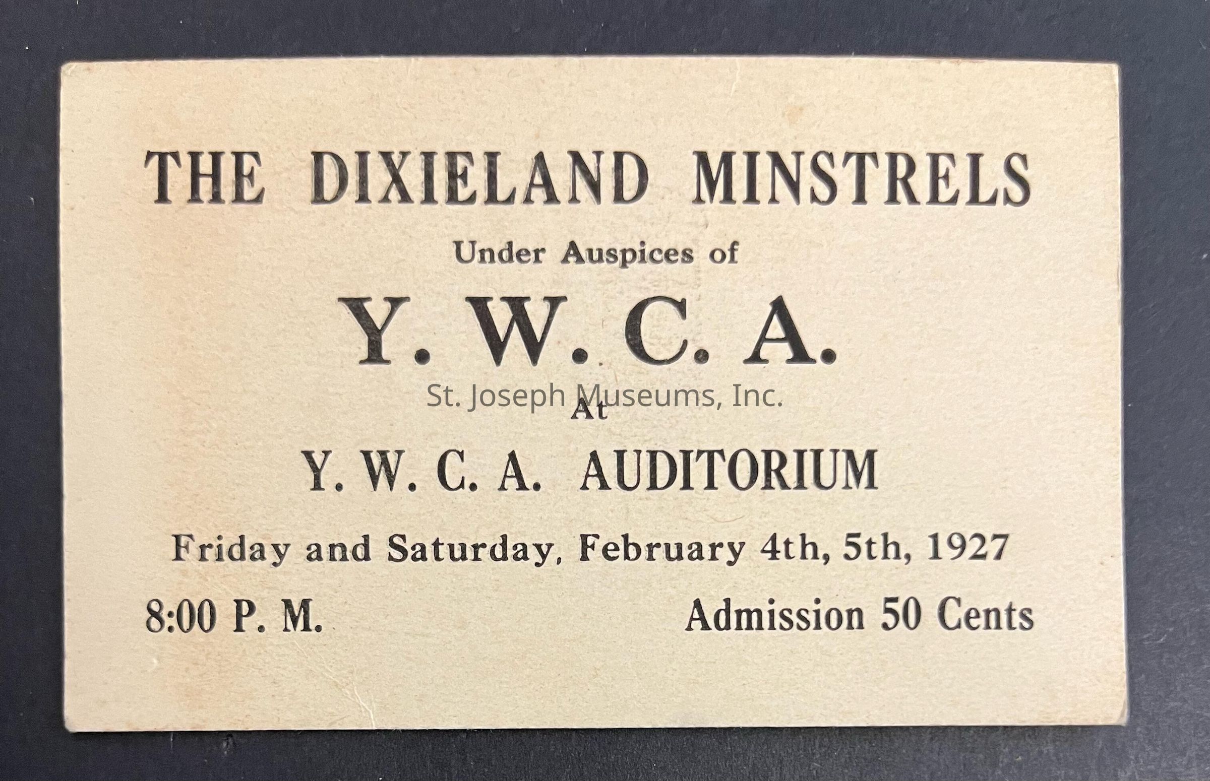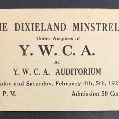 Dixieland Minstrels at Y.W.C.A. Ticket, 1927Entry/Object ID
