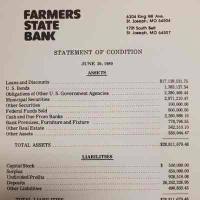 An Official Statement for June 30, 1980 listed are some assets and liabilities for Farmers State Bank.