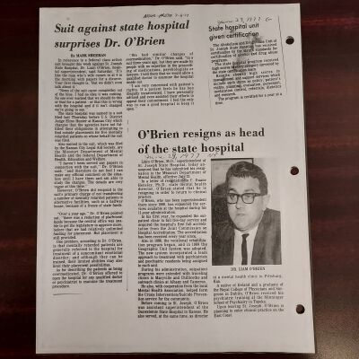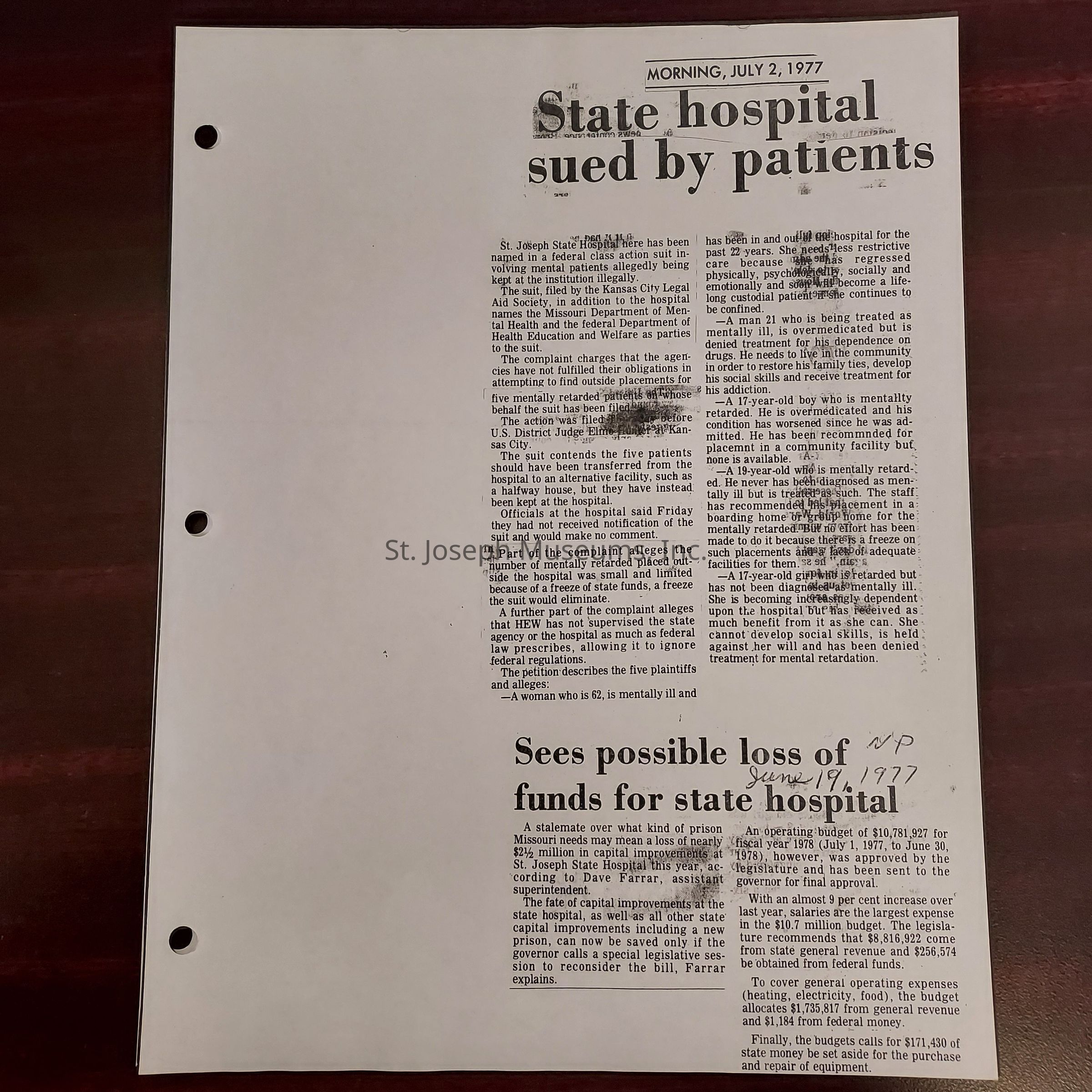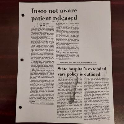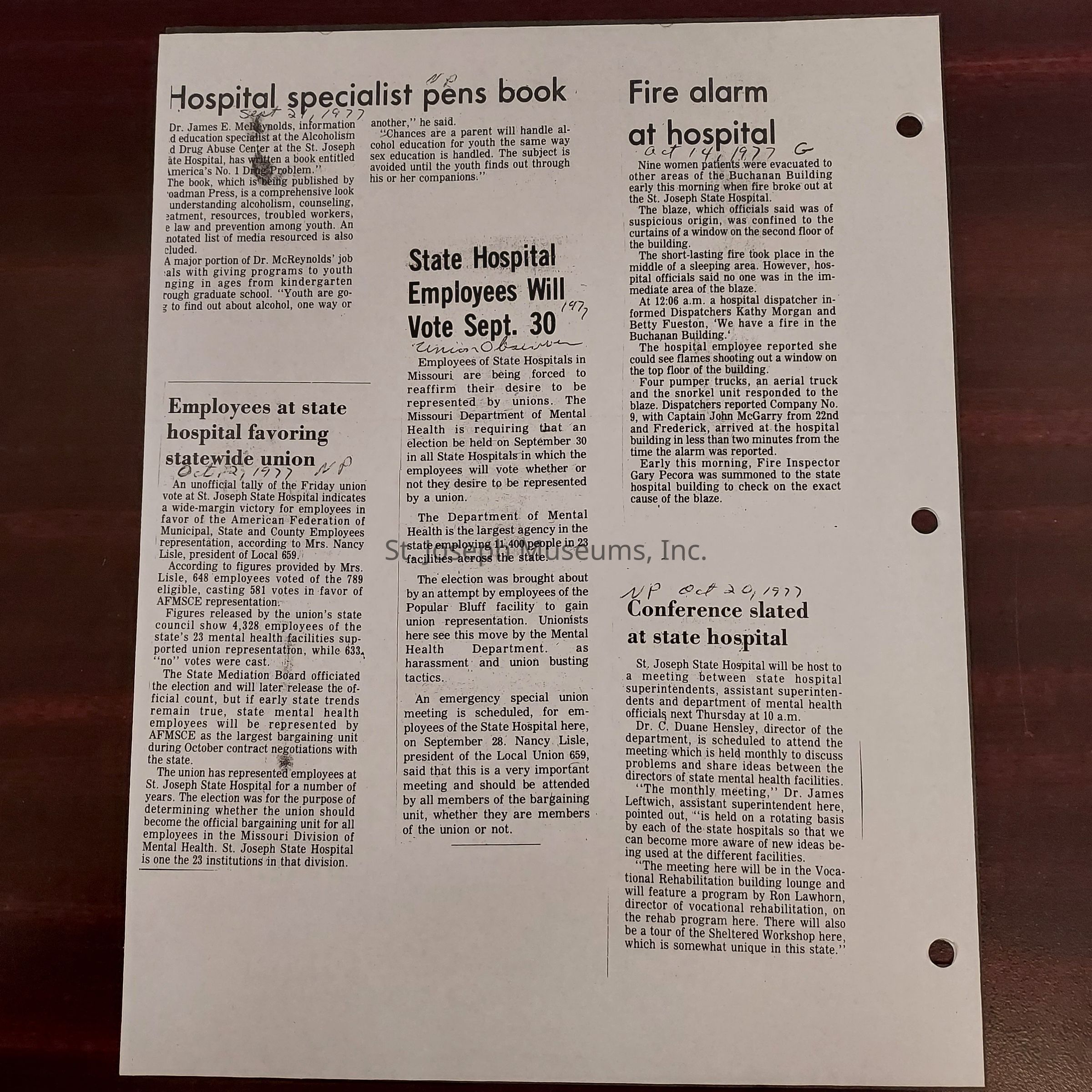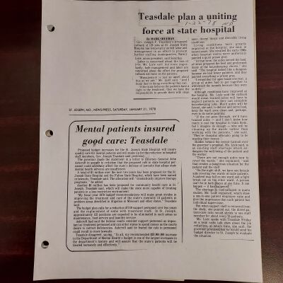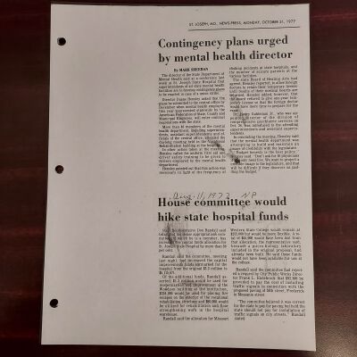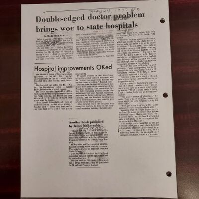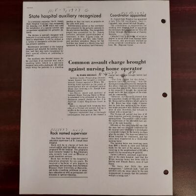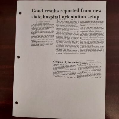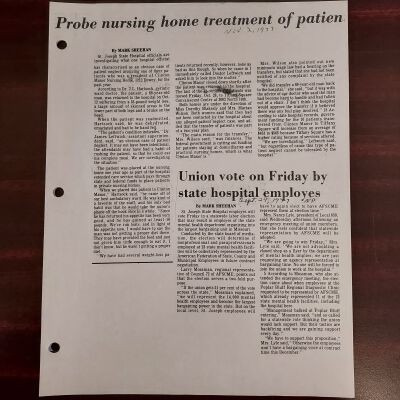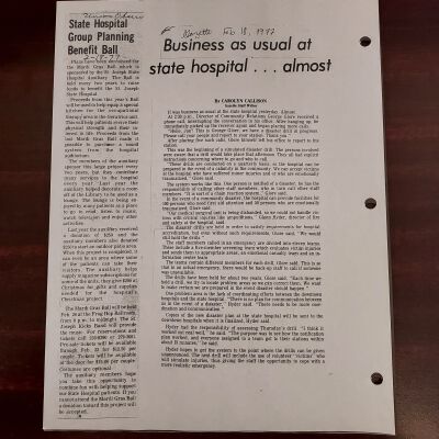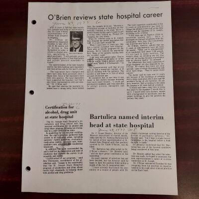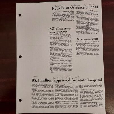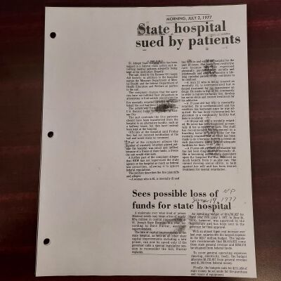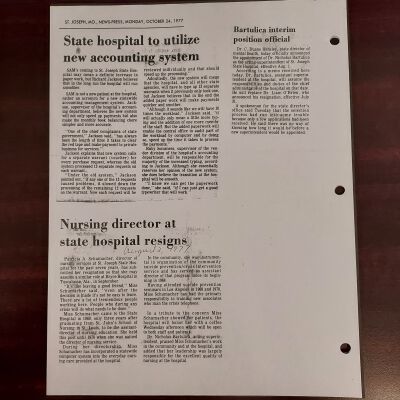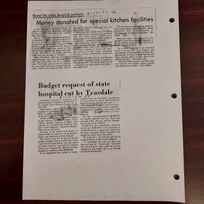 Newspaper clippings concerning the State Hospital in 1977.Entry/Object ID