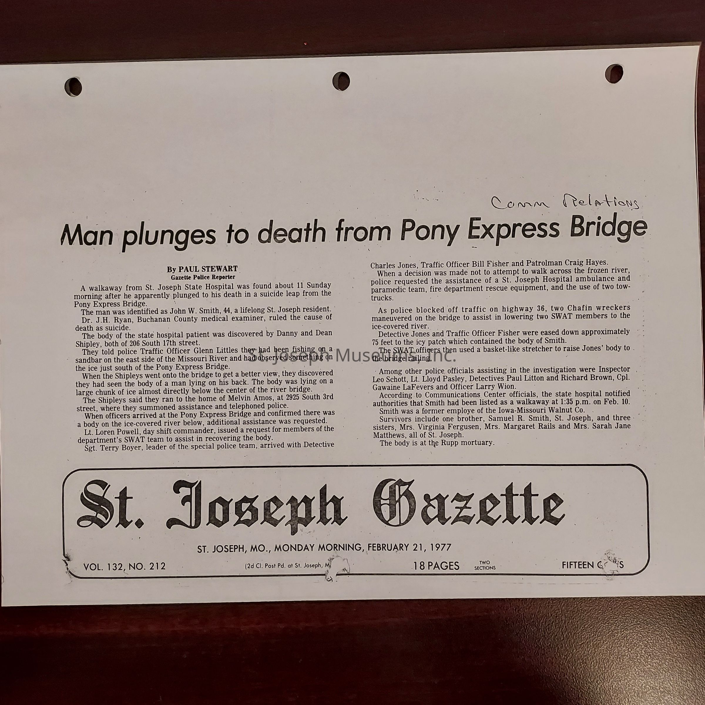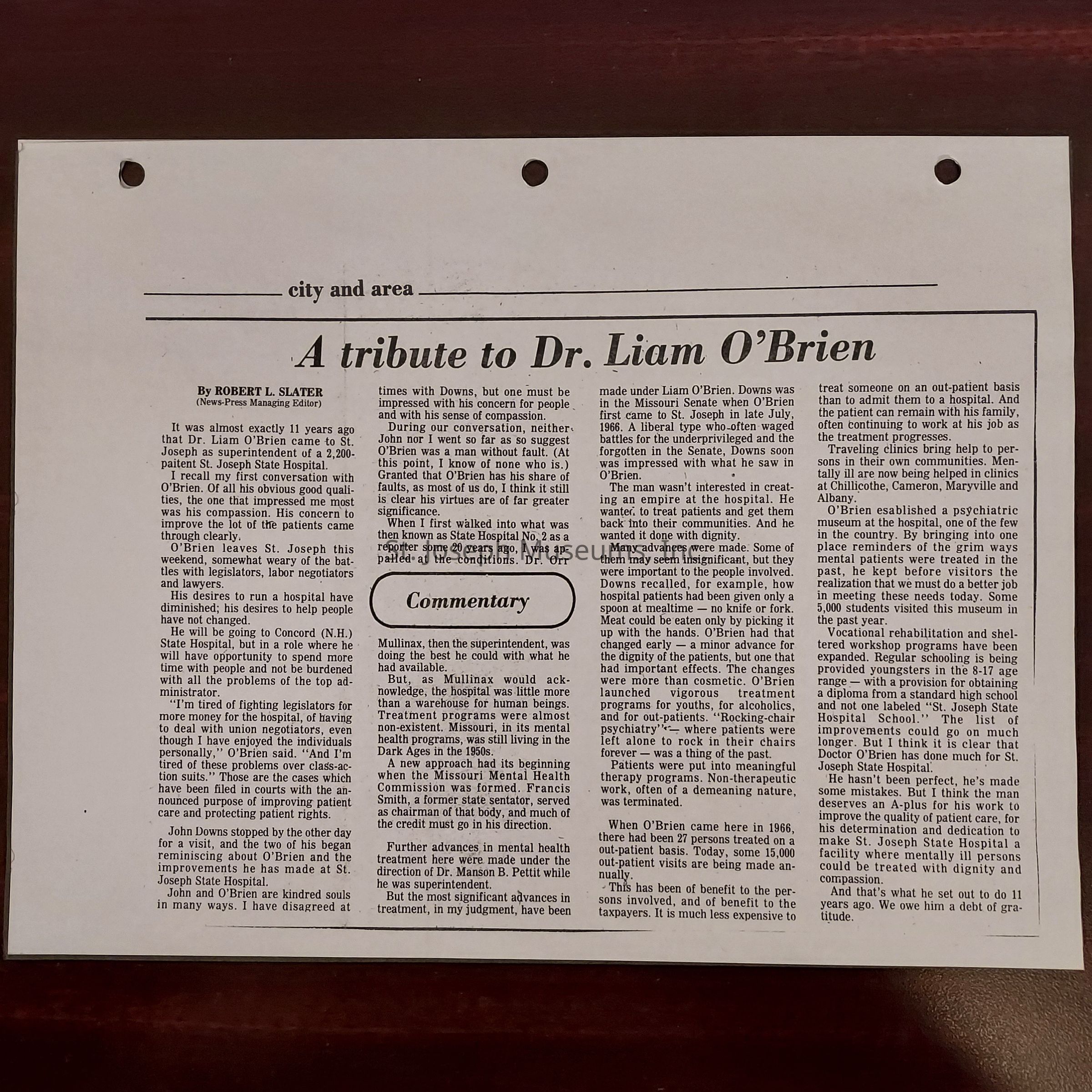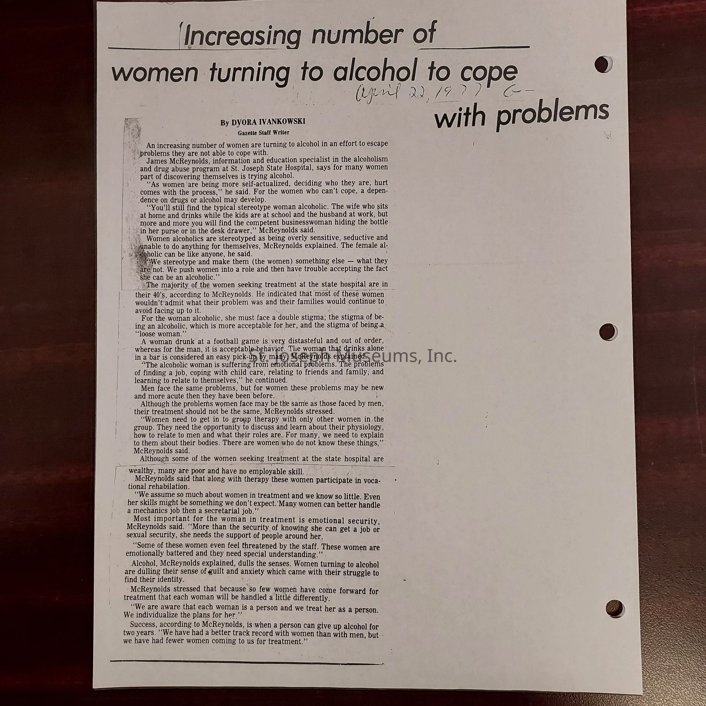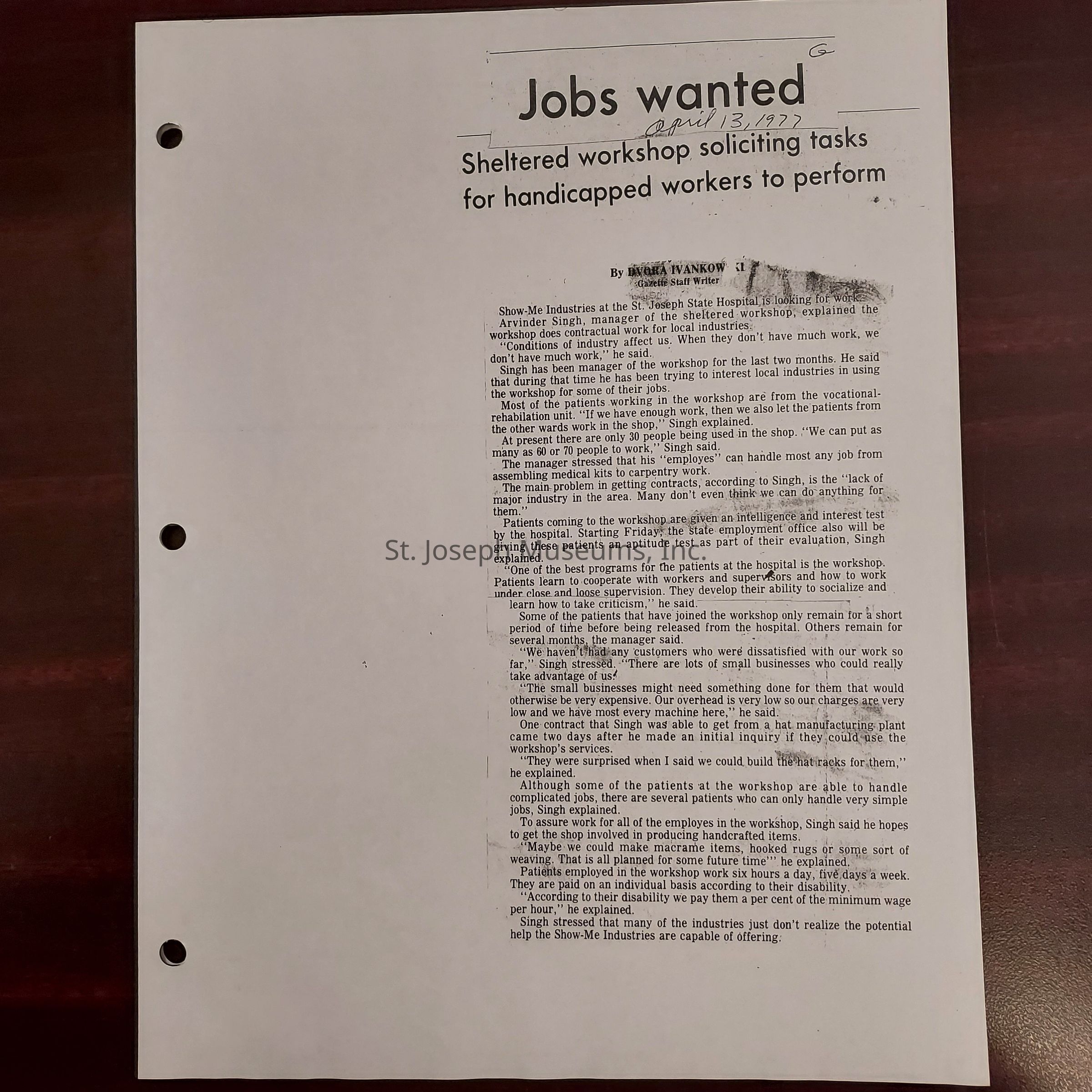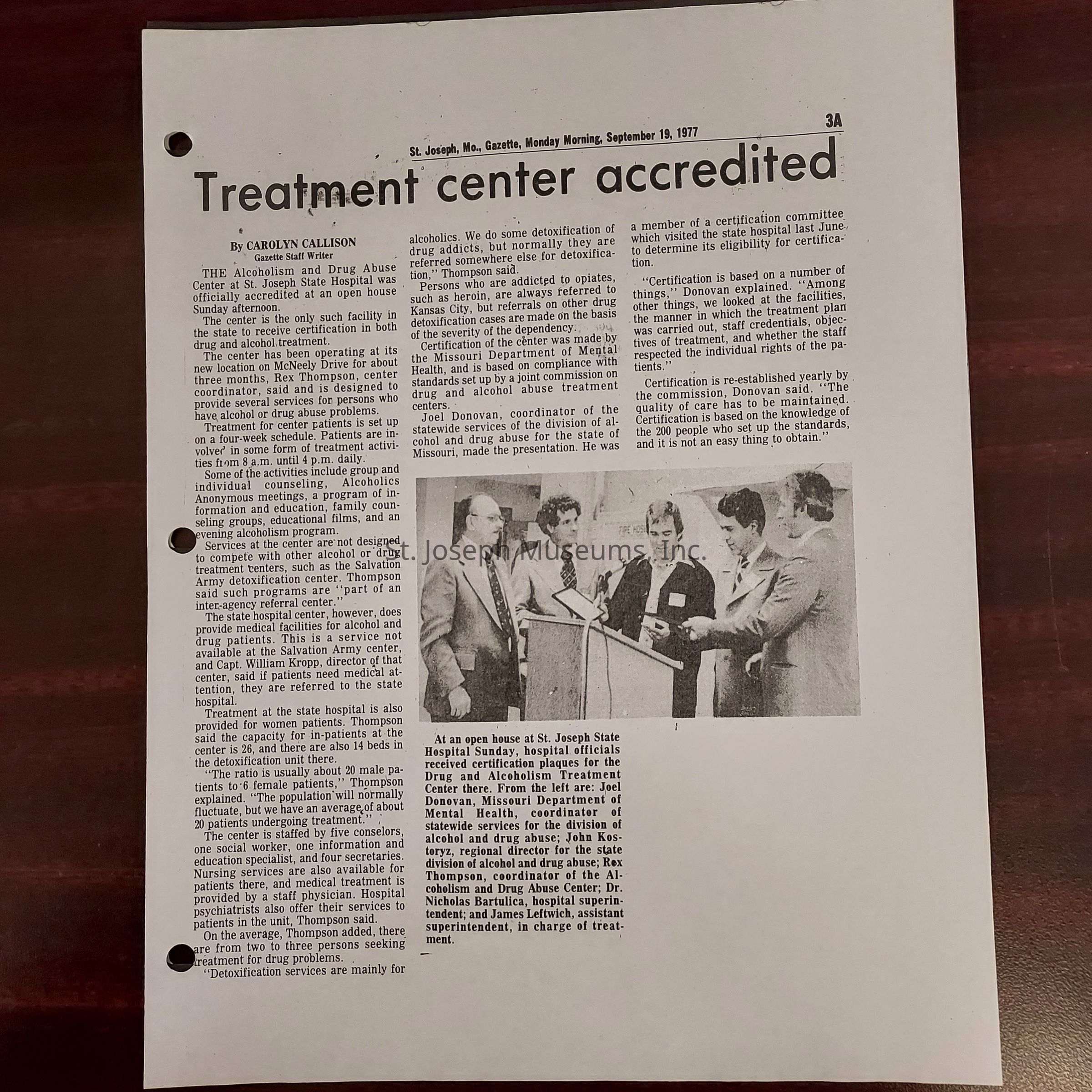 Newspaper clippings concerning the State Hospital in 1977.Entry/Object ID