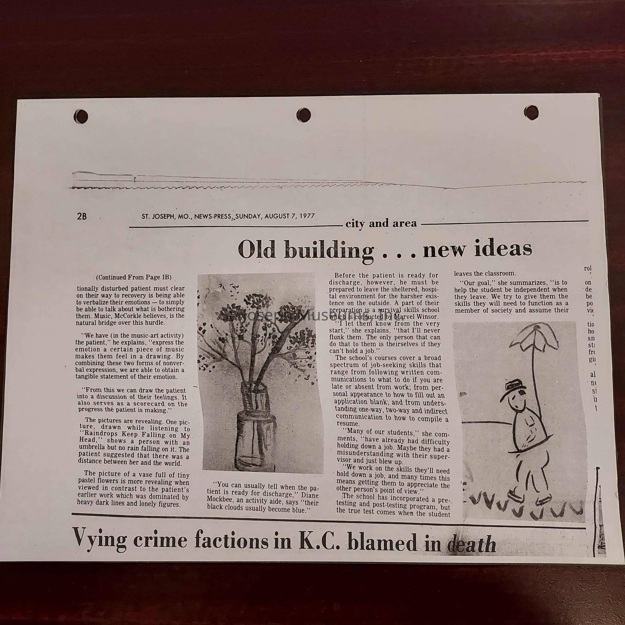 Newspaper clippings concerning the State Hospital in 1977.
