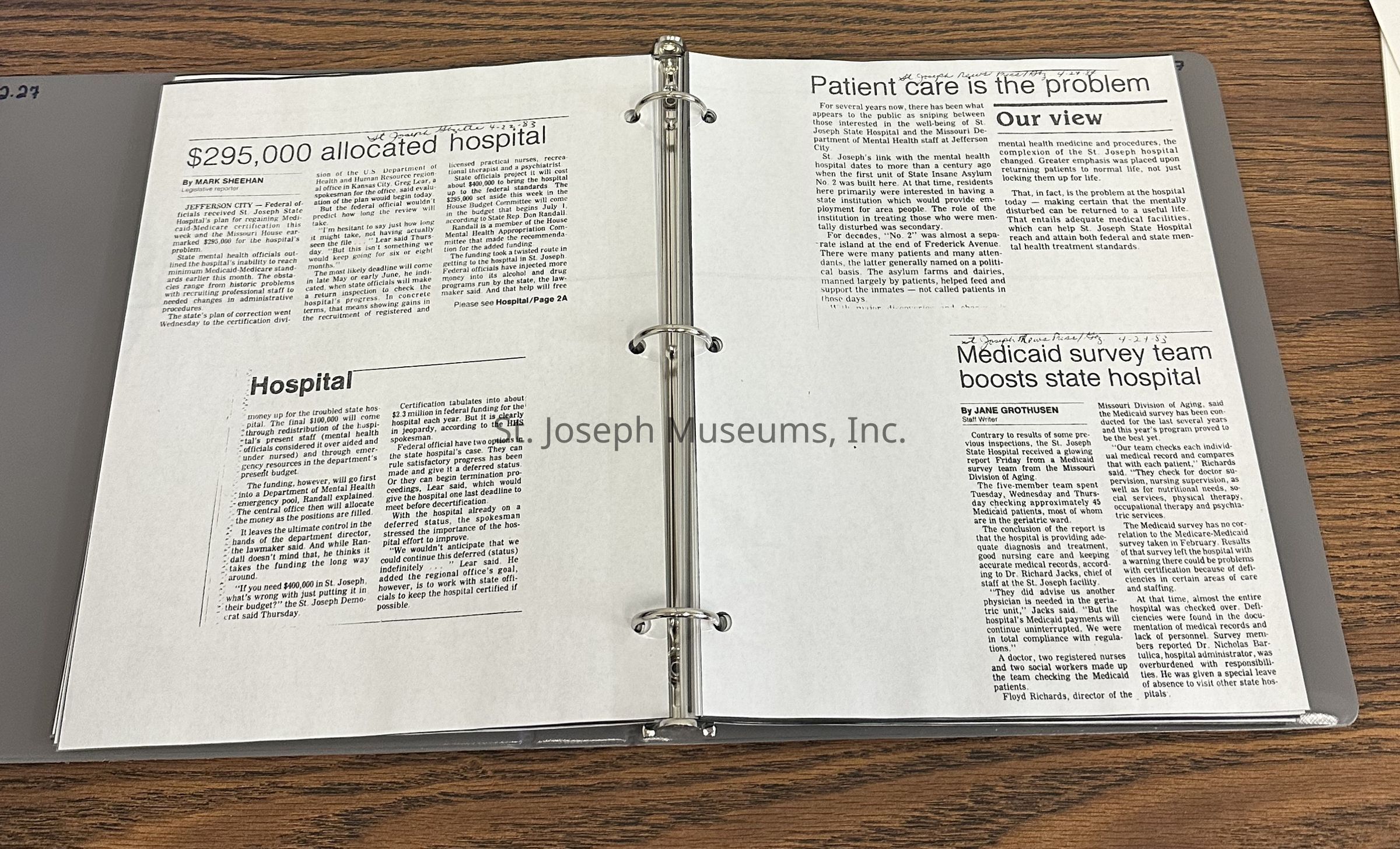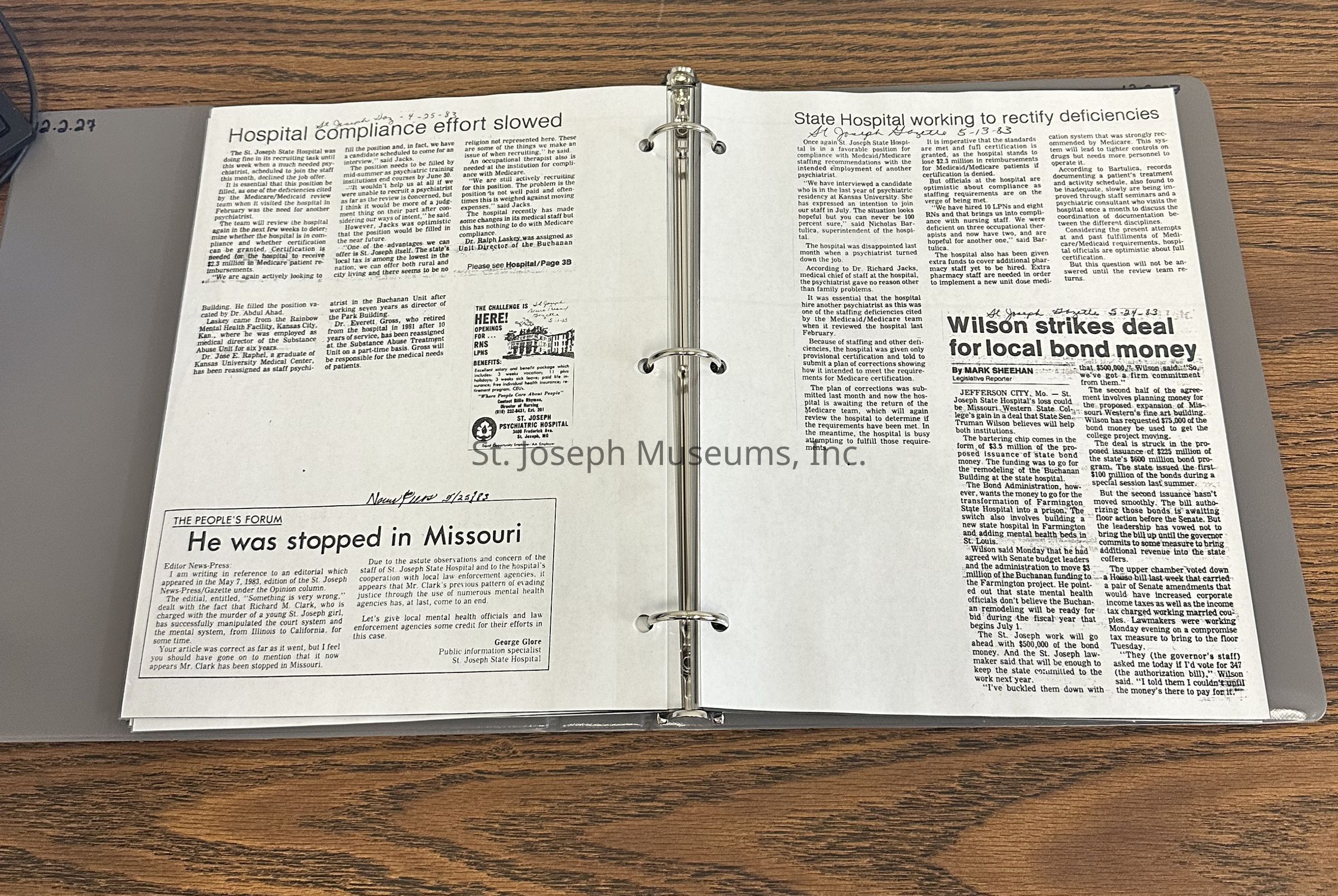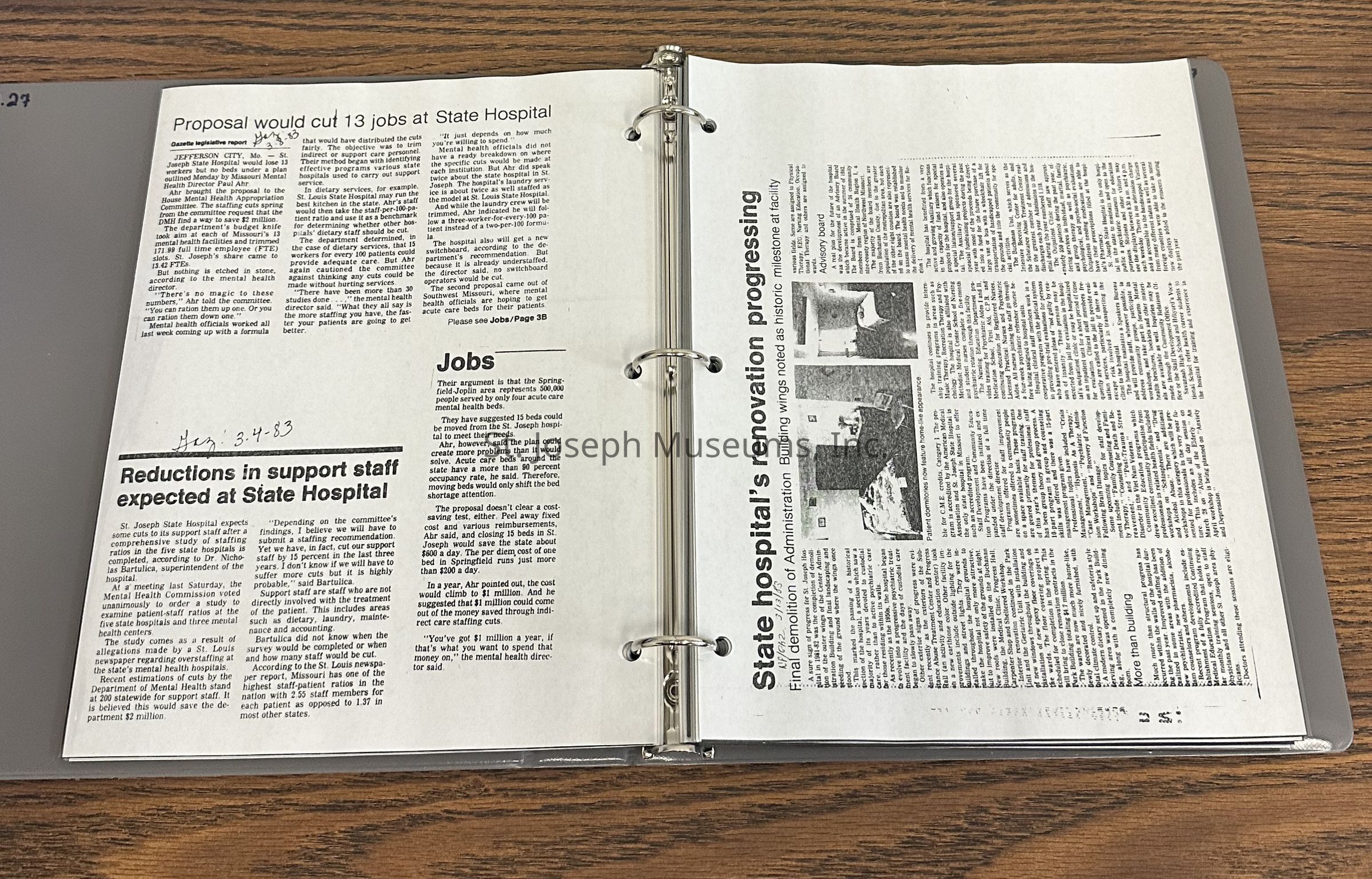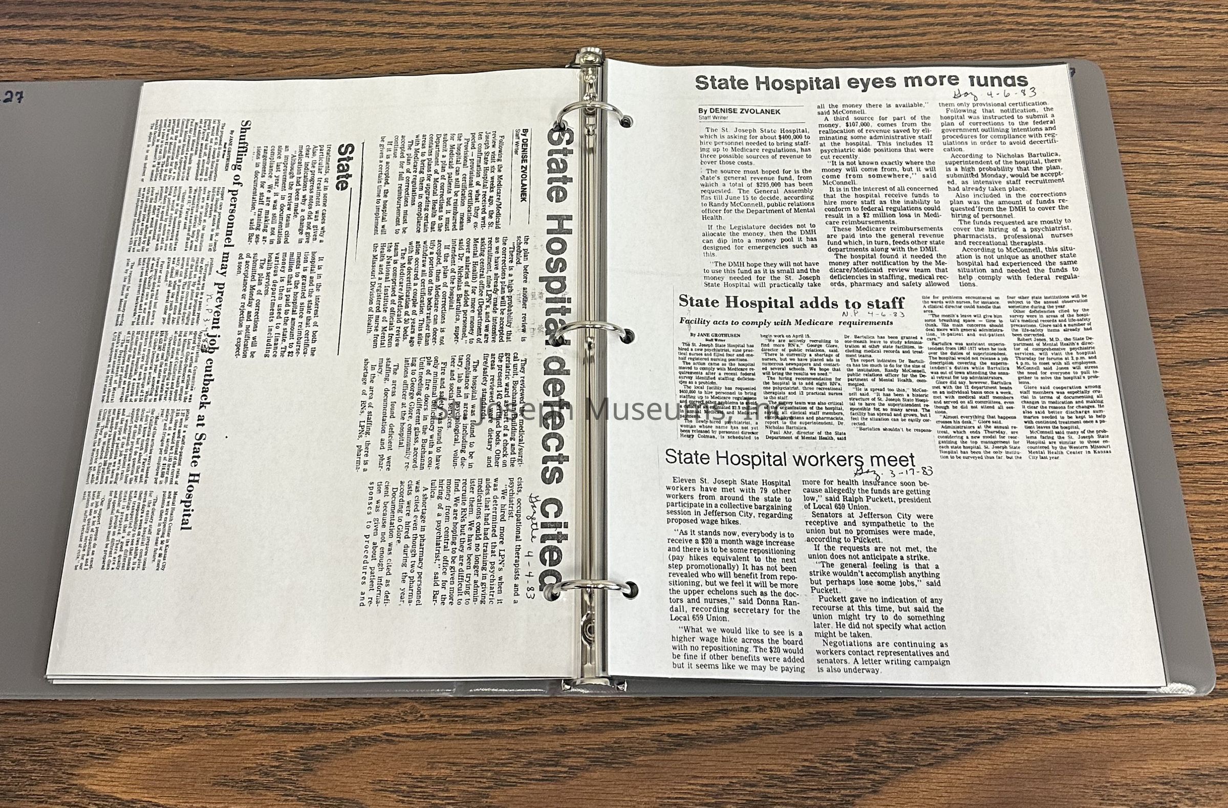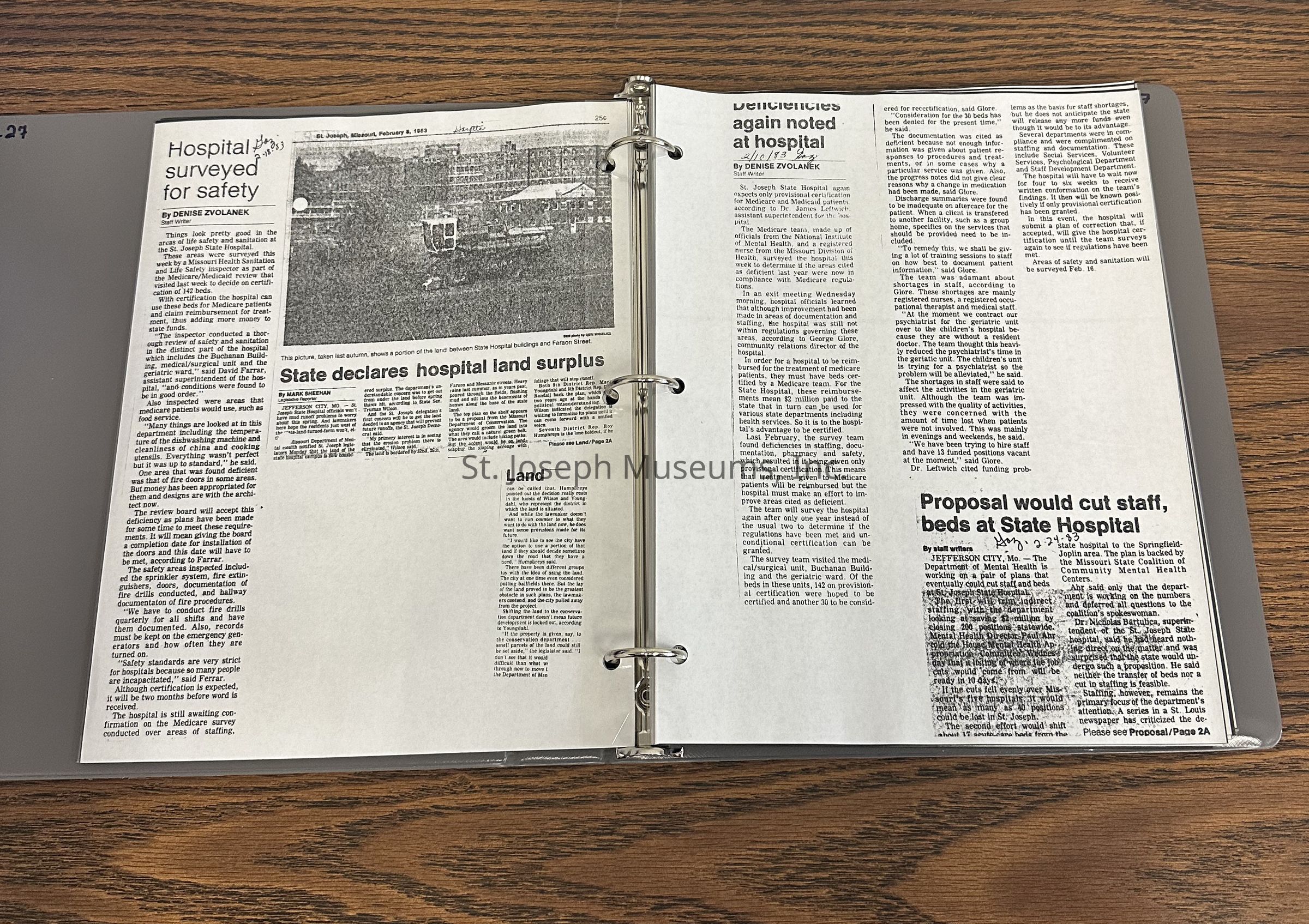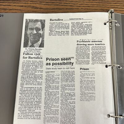 Newspaper clippings concerning the State Hospital in 1983
