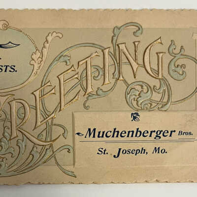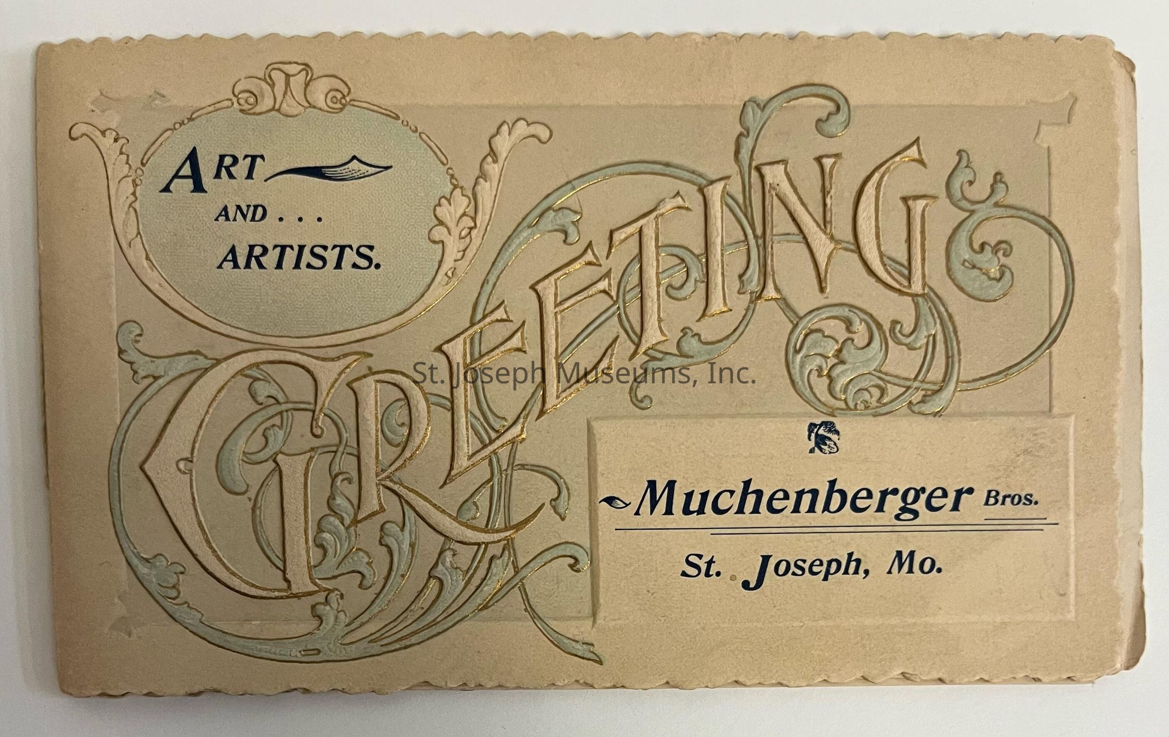 20-page booklet detailing classical artists and their works. Greeting embossed on front. This may be the Muchenberger's way of introducing themselves to St. Joseph.Collection