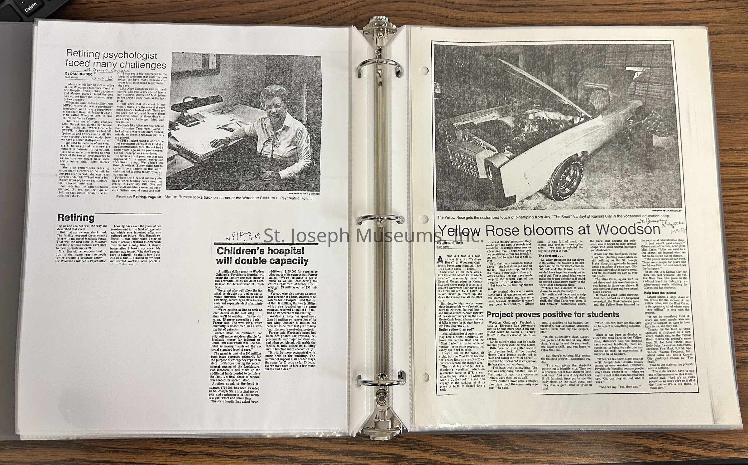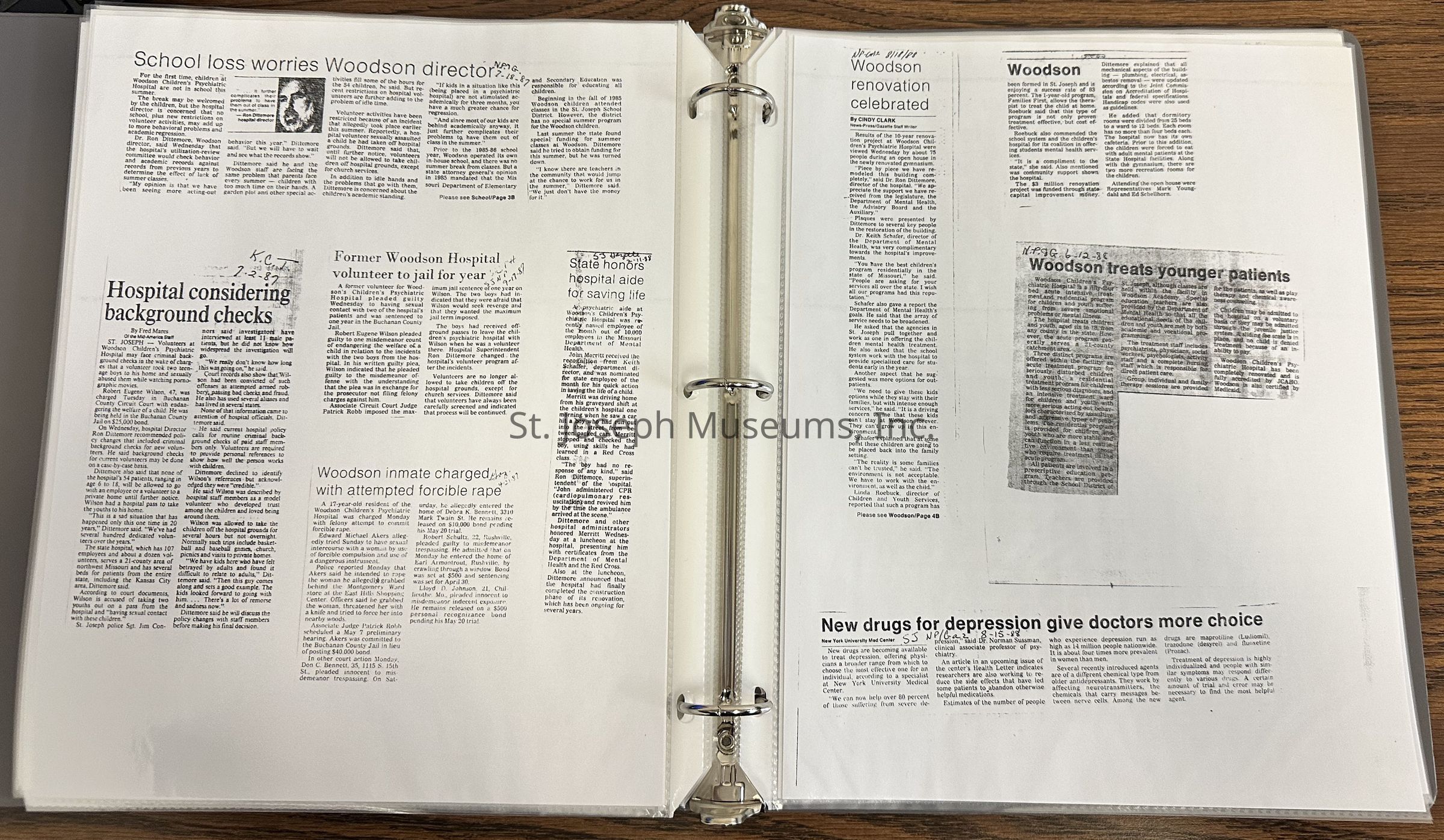 Newspaper Clippings concerning the Woodson Children's Psychiatric Hospital.