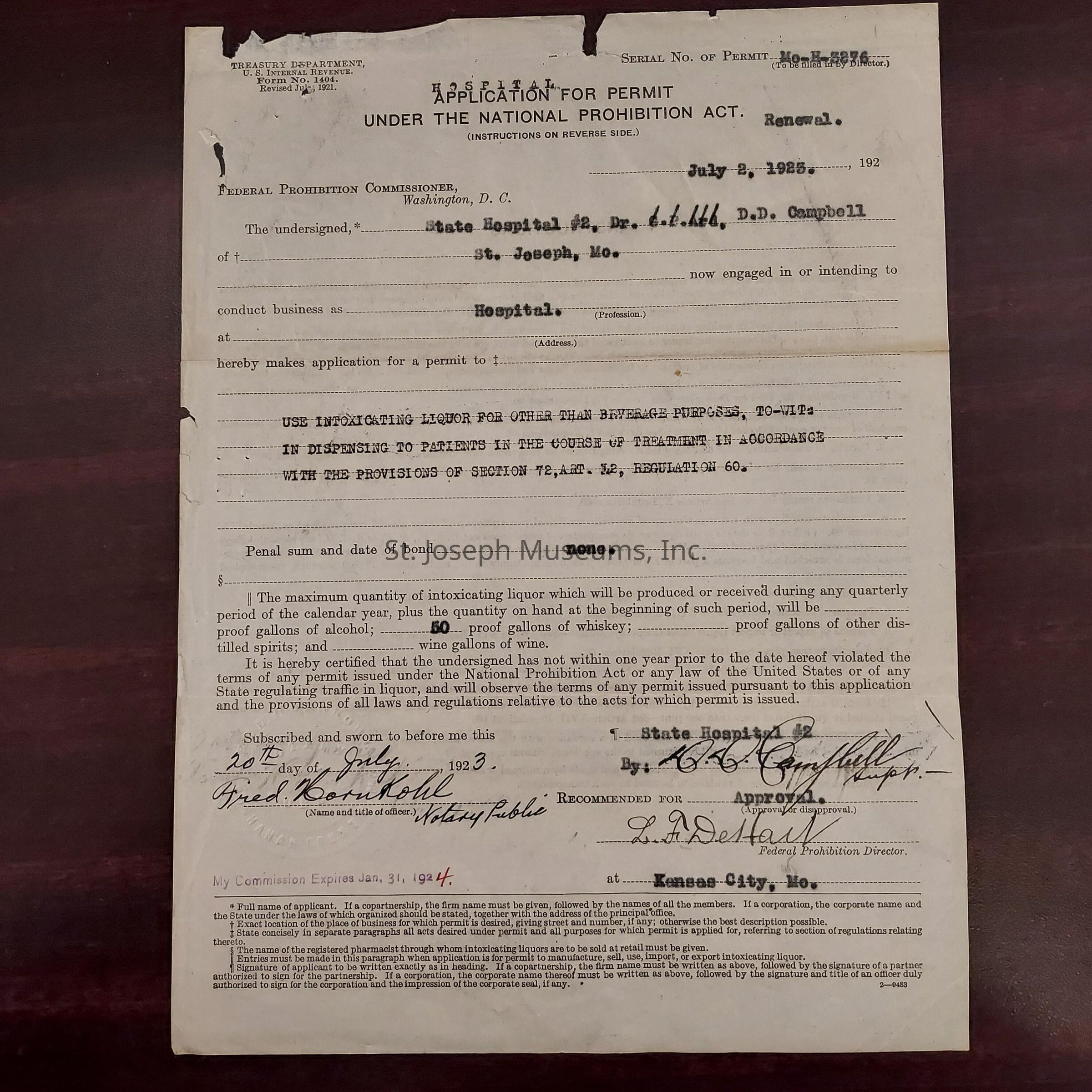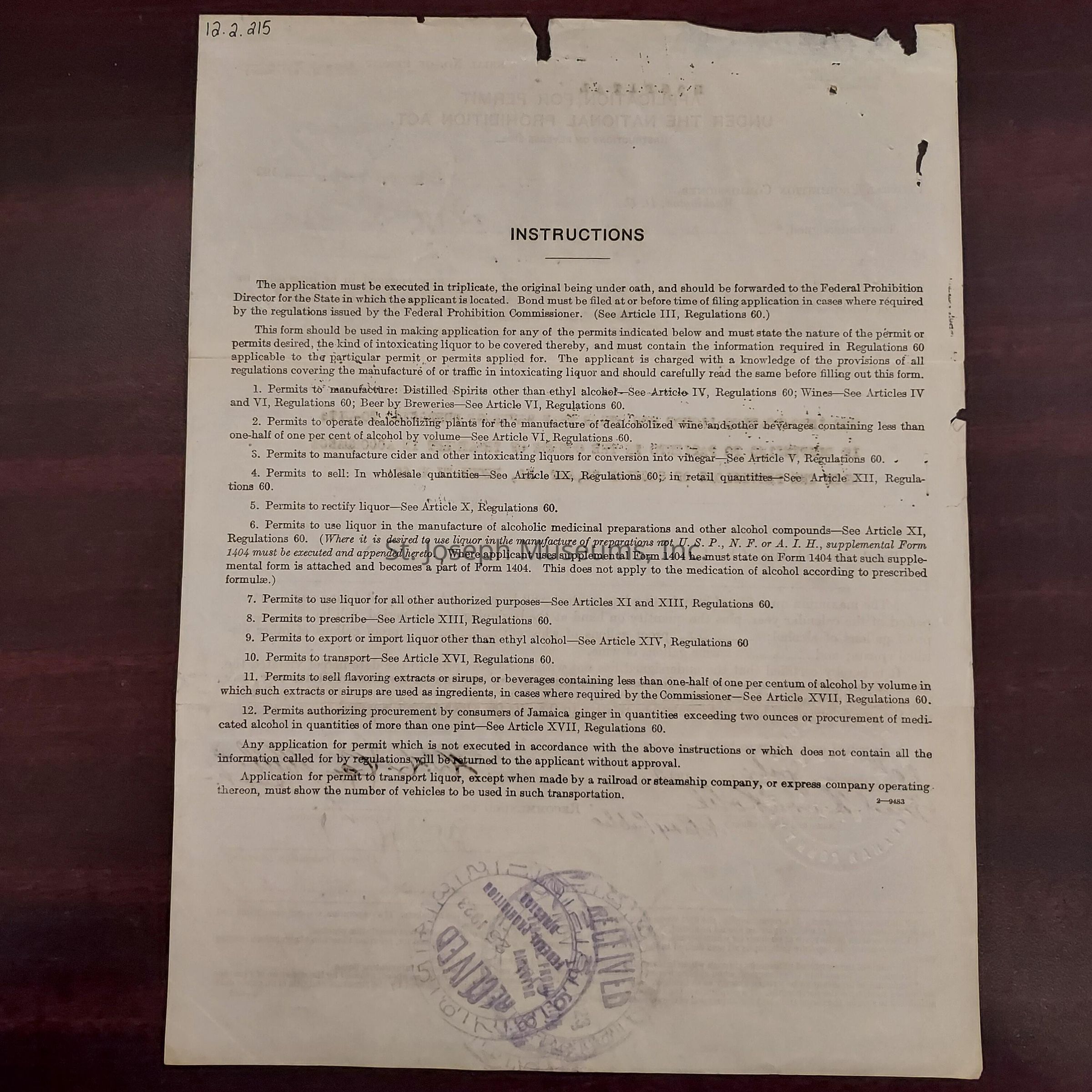 Application for a Permit to Use Intoxicating Liquors for Other Than Beverage Purposes