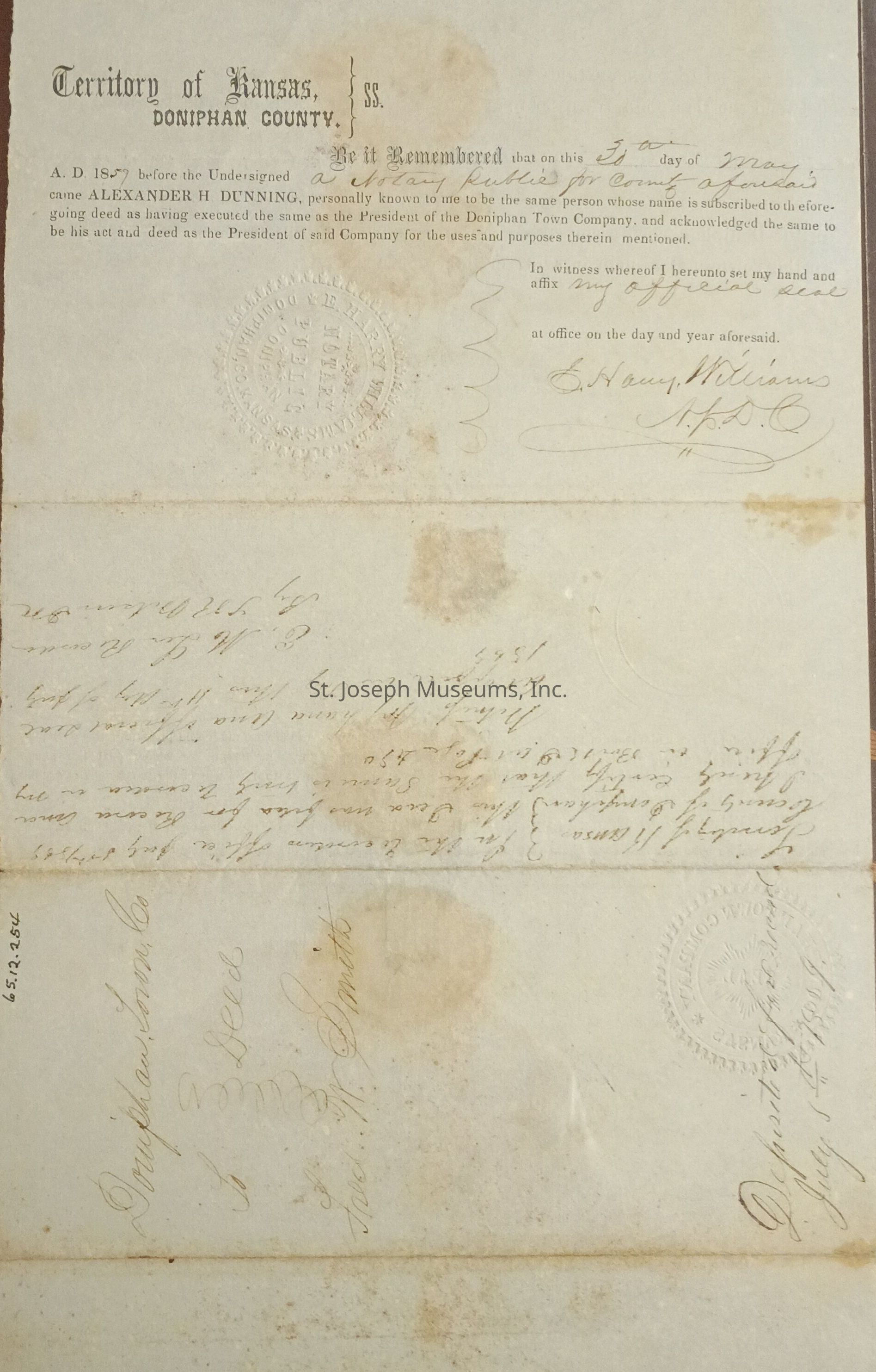 Land Sales in Doniphan County, 1859, Doniphan Town Company, Deed, Kansas Territory, Doniphan CountyRelationships