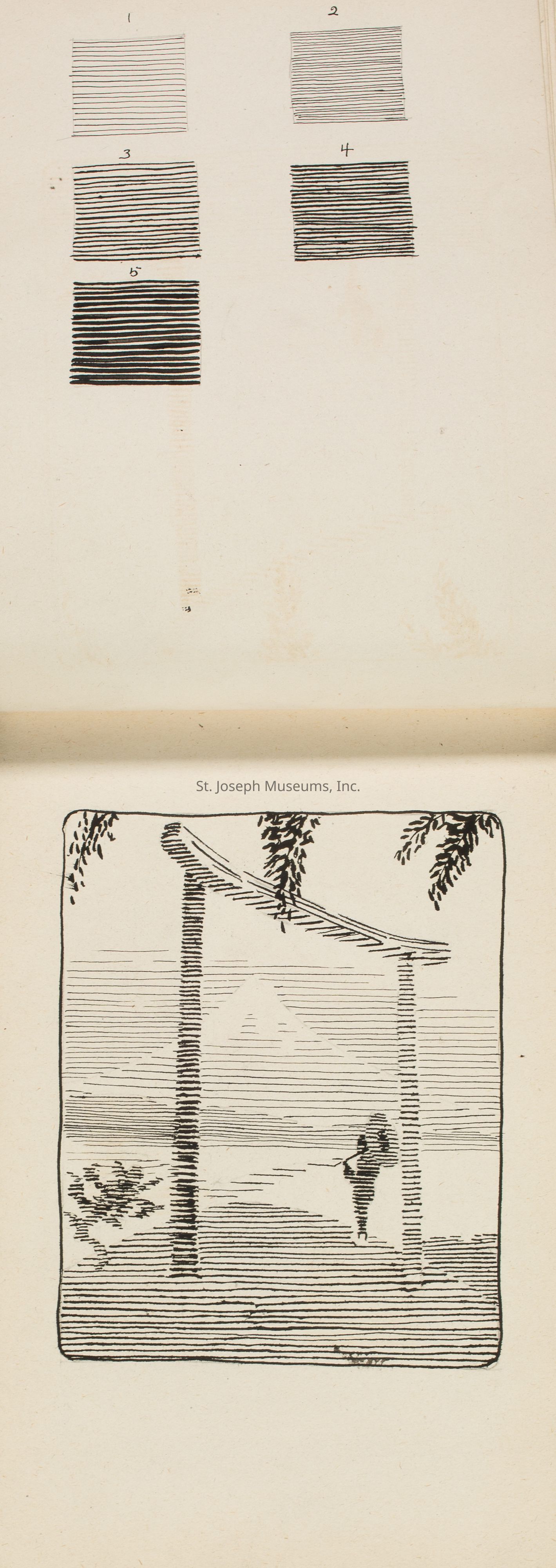 A notebook with designs by Catherine C. Moss during her time at the Chicago Academy of Fine Arts.