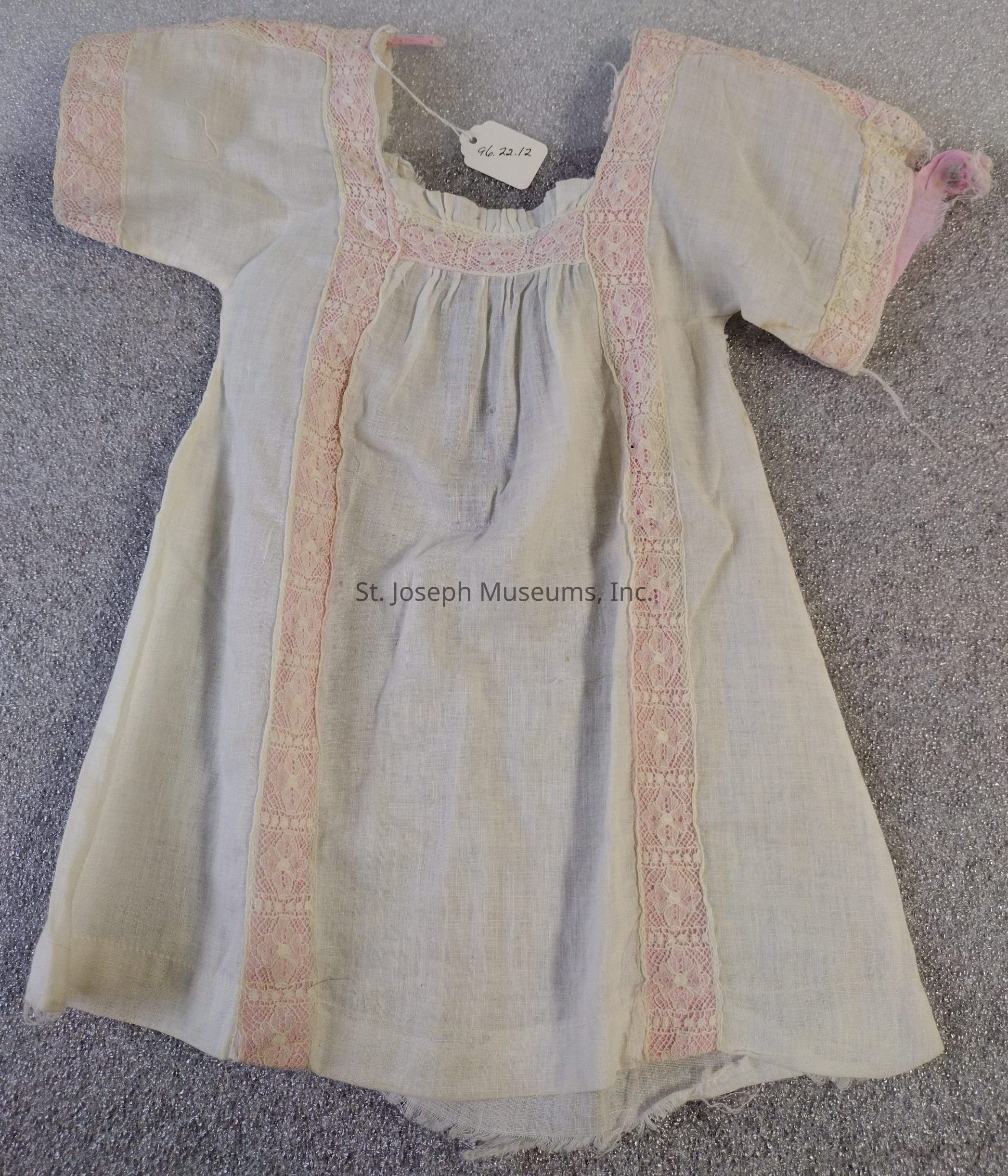 Dress/child's/white gauze type cotton/short sleeves/pink ribbon trim/no closure