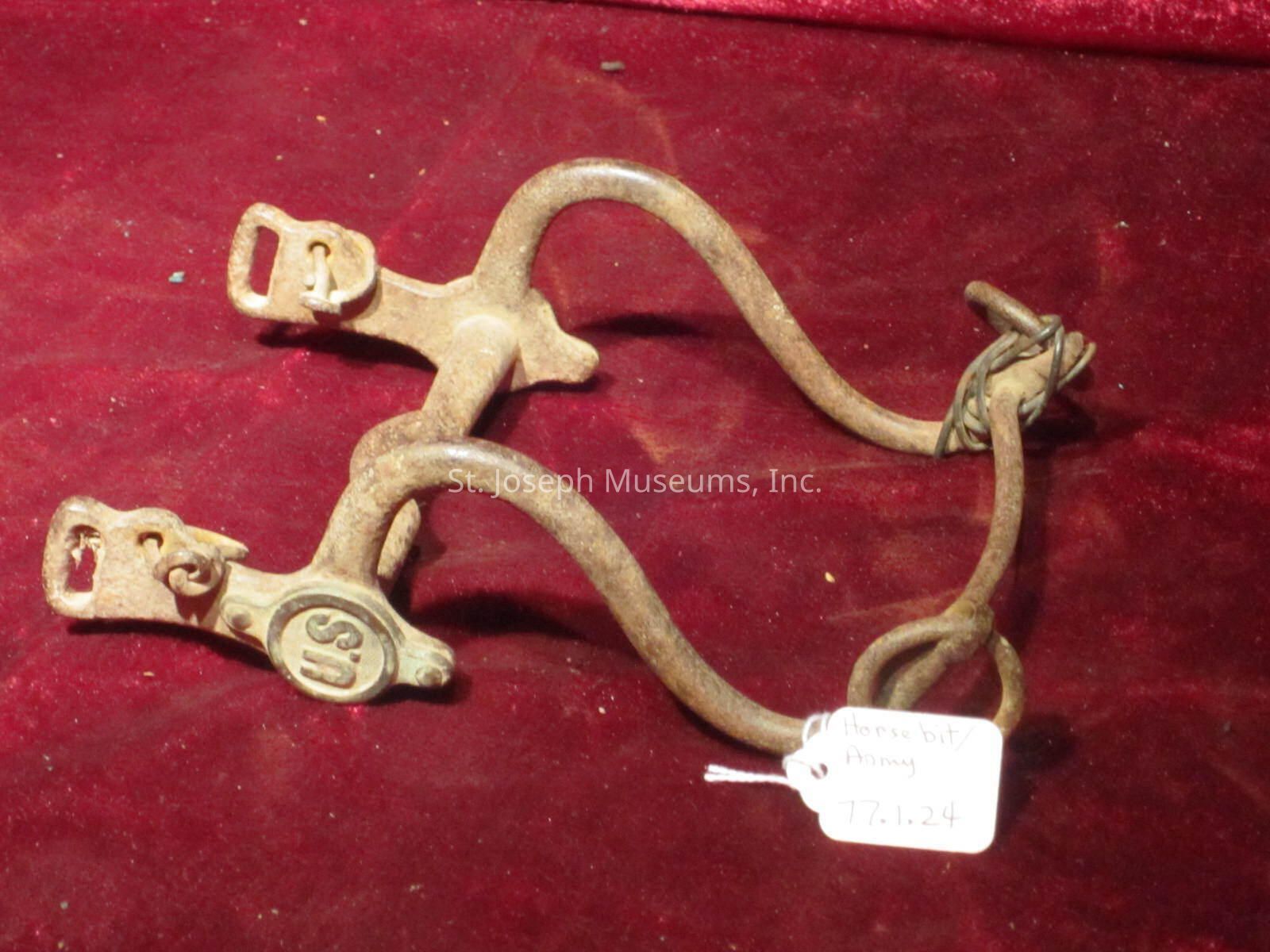 ARMY HORSE BIT/"US"/HEAVY IRON/MENDED WITH WIRE ON RIGHT RING
