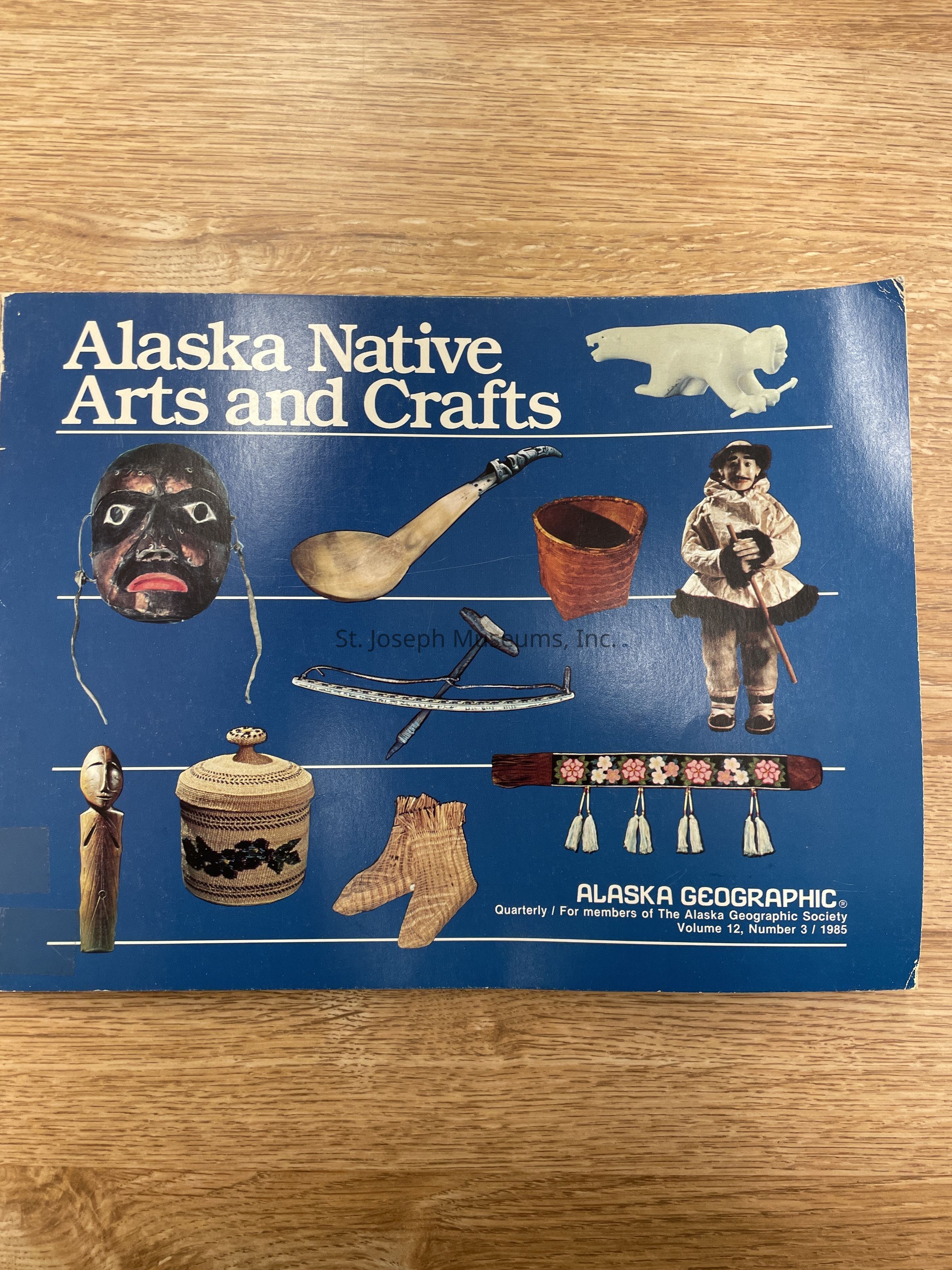 Alaska Native Arts & Crafts. Vol. 12, No. 3, 1985. Quarterly for the Alaska Geographic Society. Norhtwest Coast and Subartict Artifacts also 215/Softbound/Artifacts on cover/Illustrations