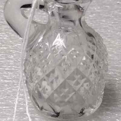 Miniature cut glass vinegar cruet with lid.