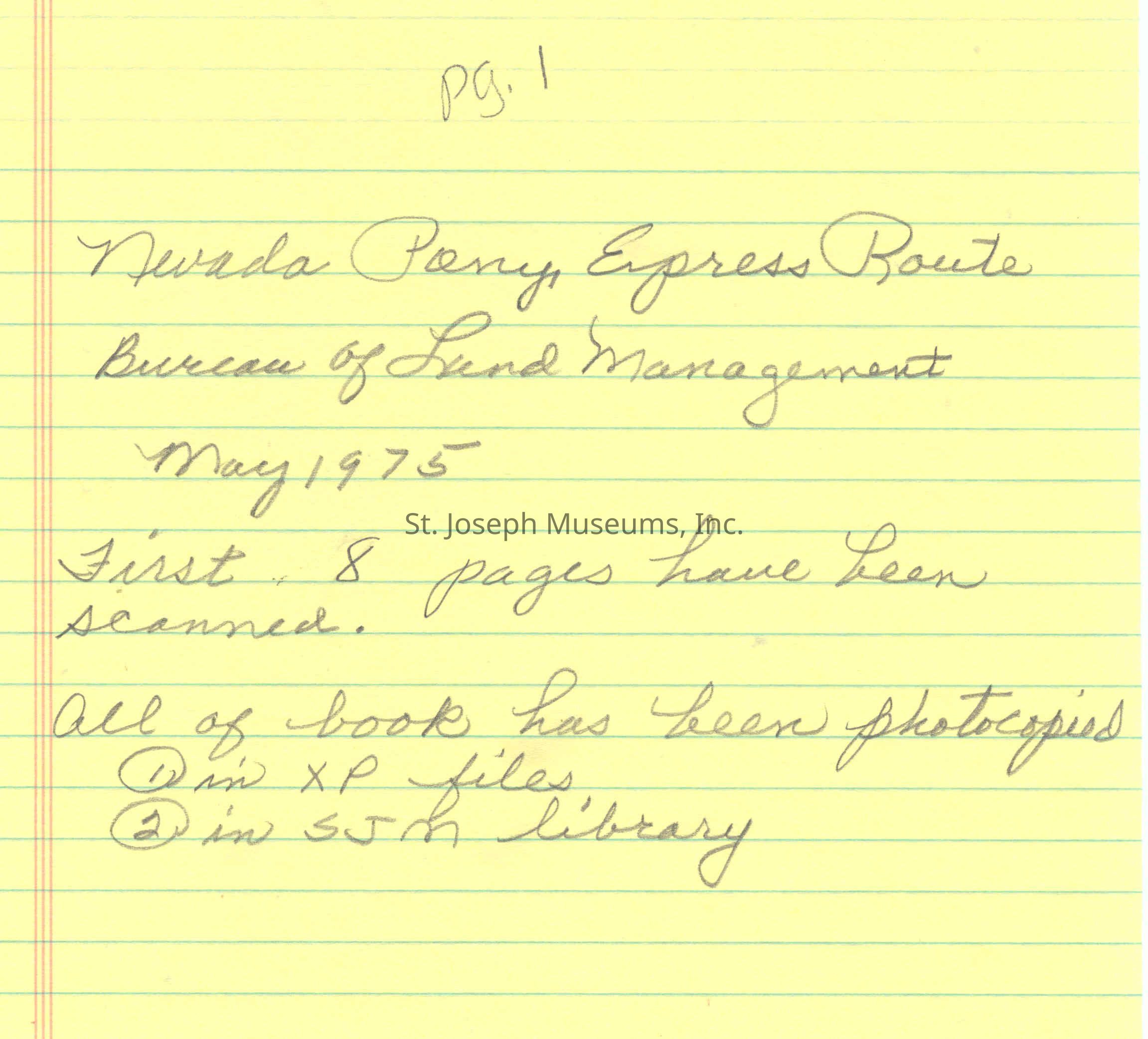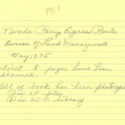 Files contain correspondence with Pony Rider descendants, Pony Express rider biographies, newspaper clippings related to the Pony Express, and miscellaneous records, photos, and documents collected from major private and University libraries among other sources. NOTE ABOUT ORIGIN OF LIBRARIES FILE. Prior to the opening of the renovated Pony Express Museum in 1993, St. Joseph Museum staff did extensive research on the Pony Express. All of the libraries in this folder were visited and copies of all material related to the Pony Express were made. This was done from 1991 to 1993. Information from this research was used in the new exhibits of the Pony Express Museum and in preparation of the book On the Winds of Destiny. In 2015, the file from the Pony Express Museum was added. Jackie Lewin 7/27/15 CD containing scans of actual documents found in Pony Express Research Files located in file cabinets in Document Storage II area.