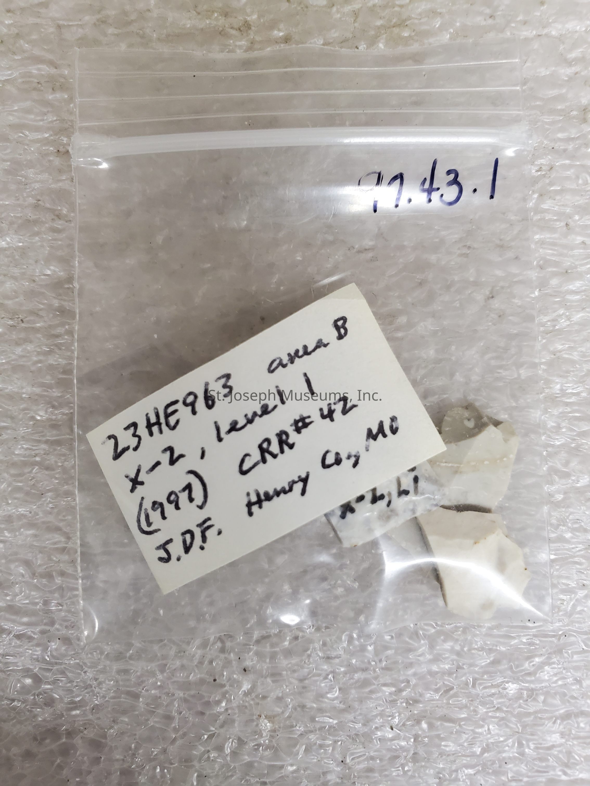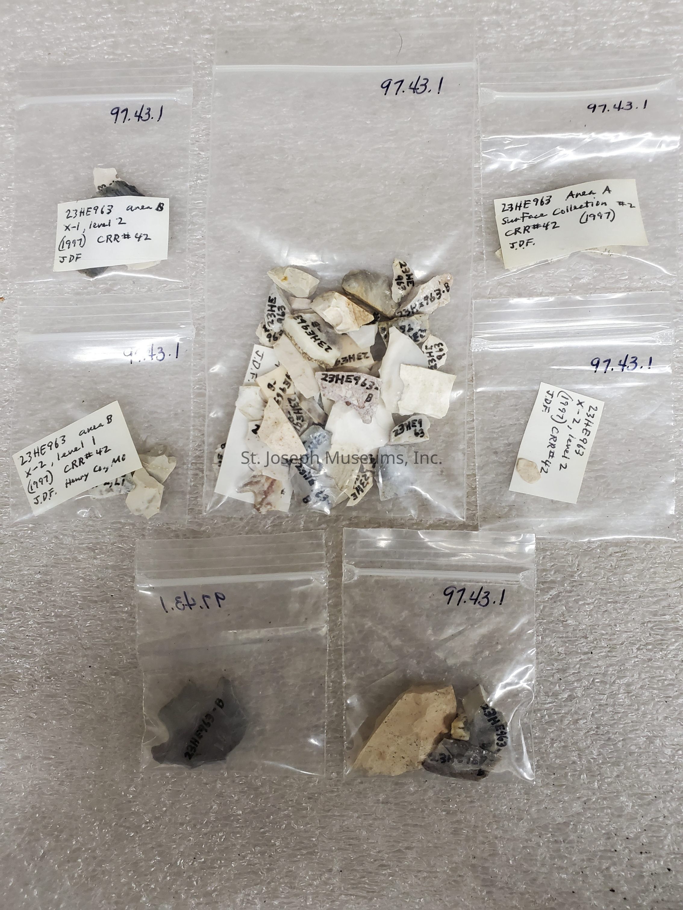 Sack of artifacts/contains 7 individual sacks of artifacts/chert flakes/broken point