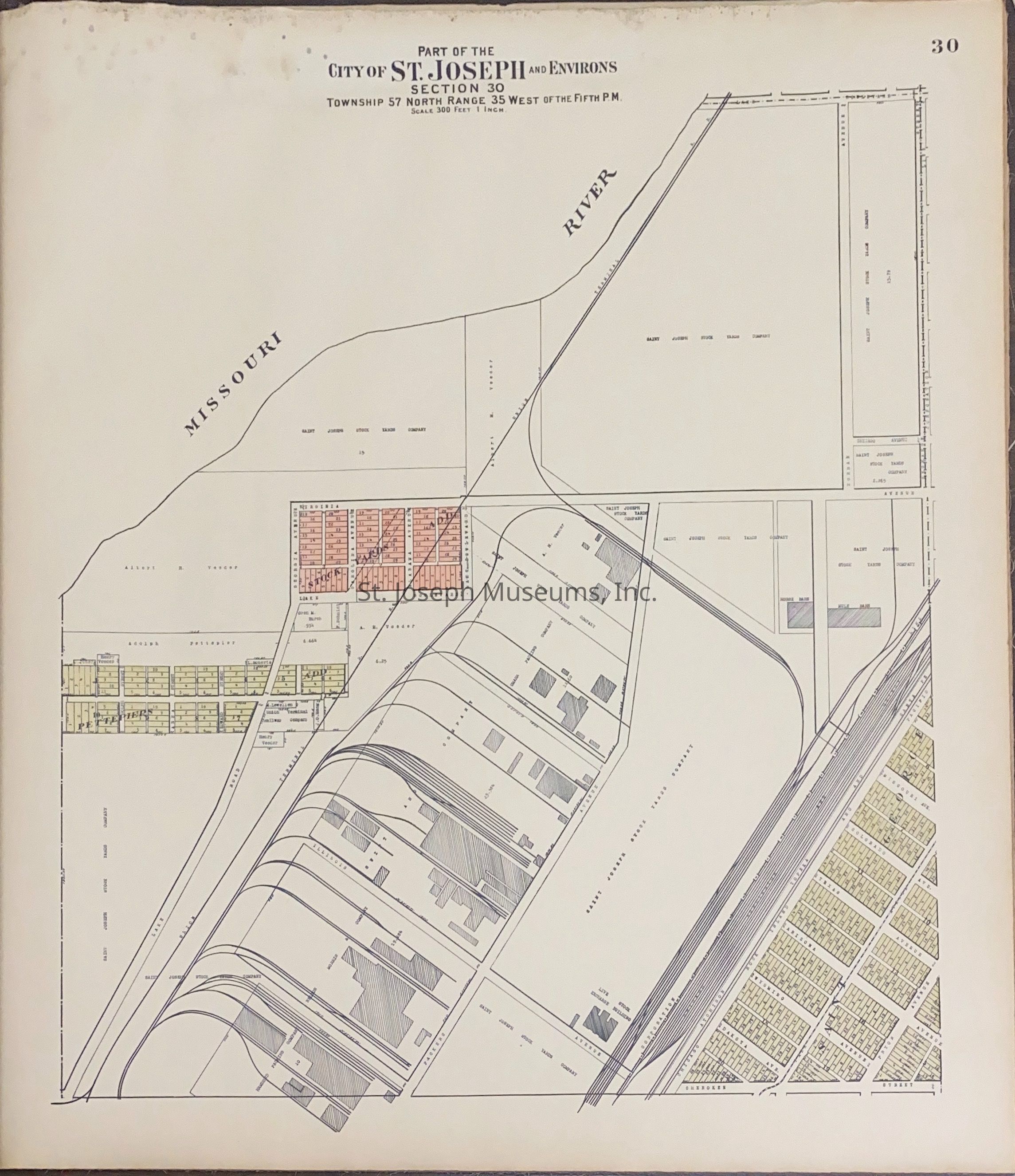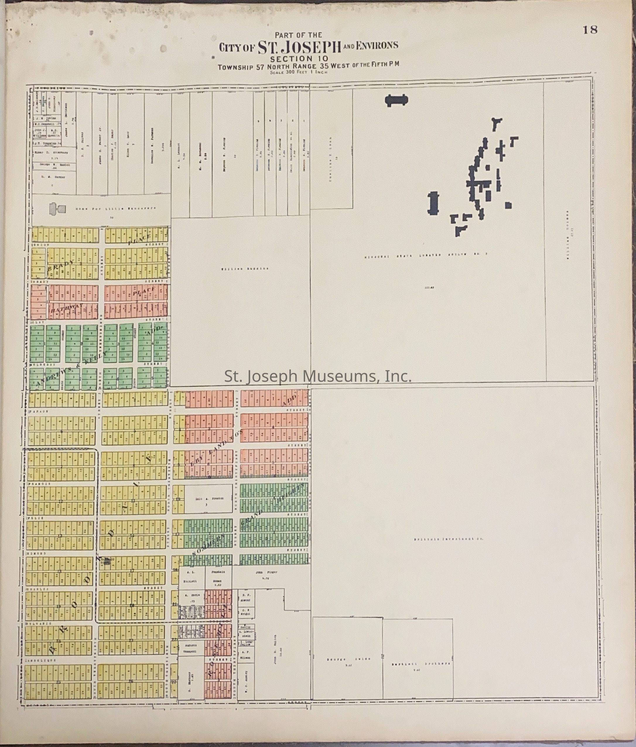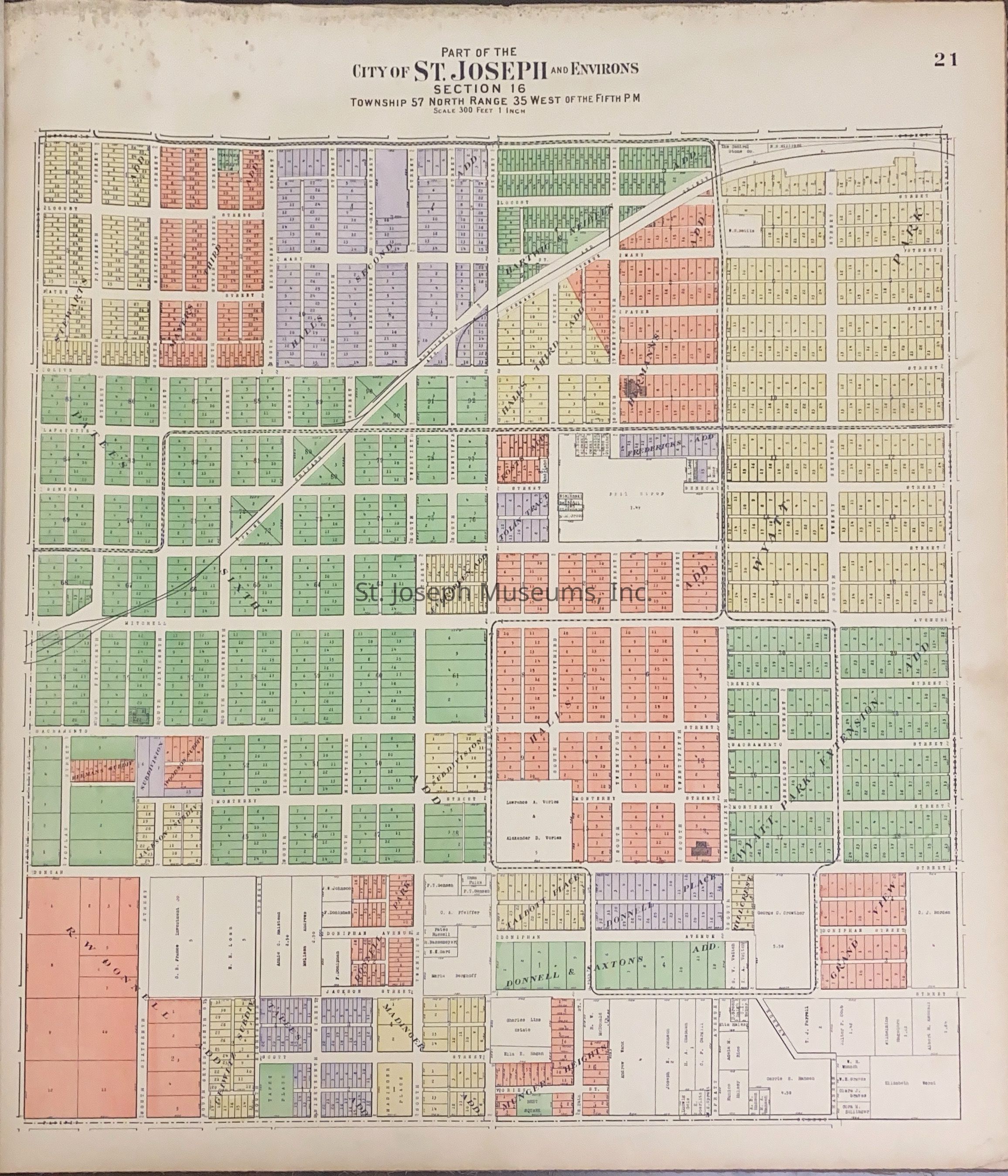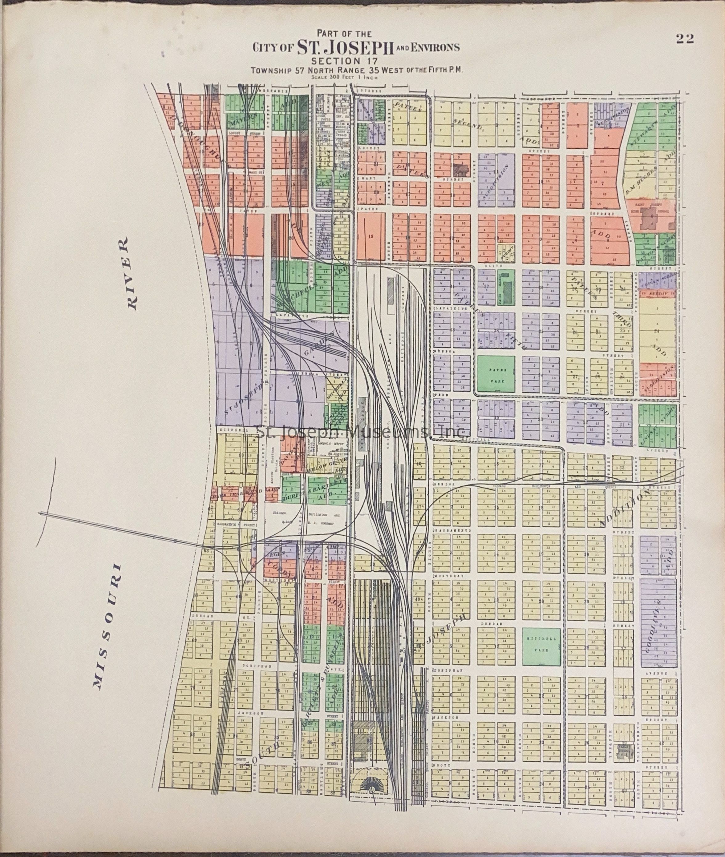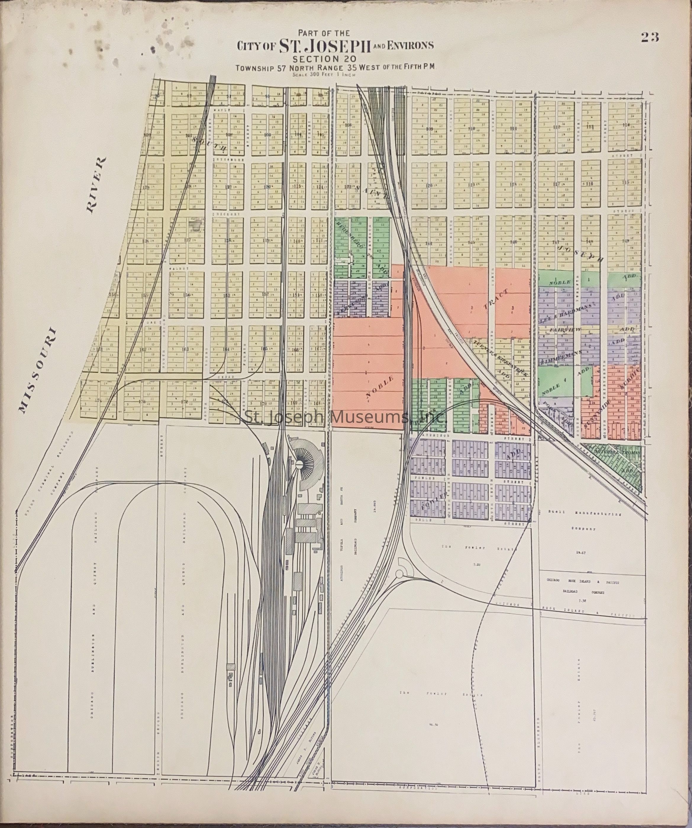 Atlas of Buchanan County, Missouri is an index of Buchanan County by township, section and range. Index of St. Joseph, Missouri by section, township and range and and index for additions and subdivisions of St. Joseph under the direction of Seitz-Peterman Engineering company.