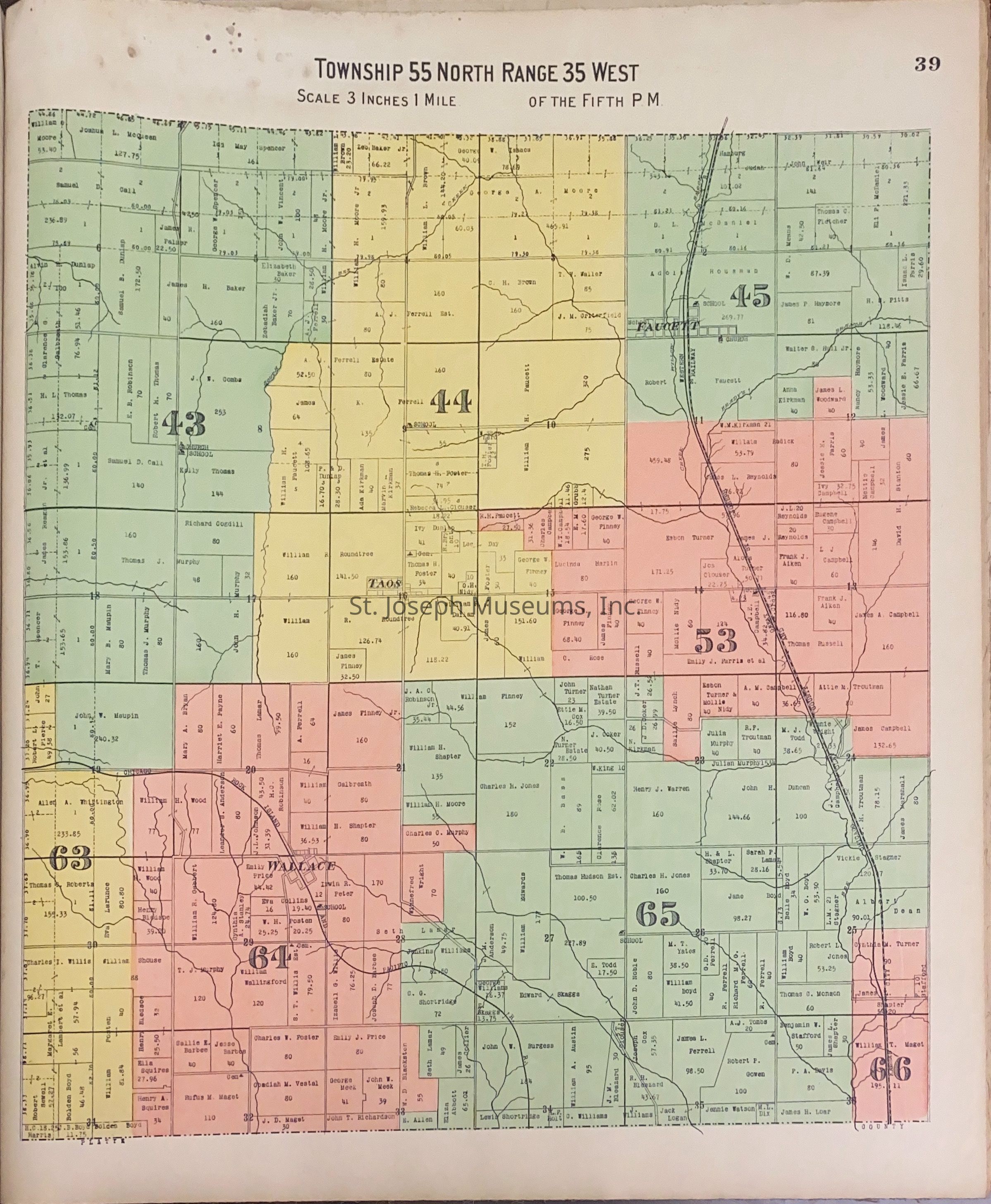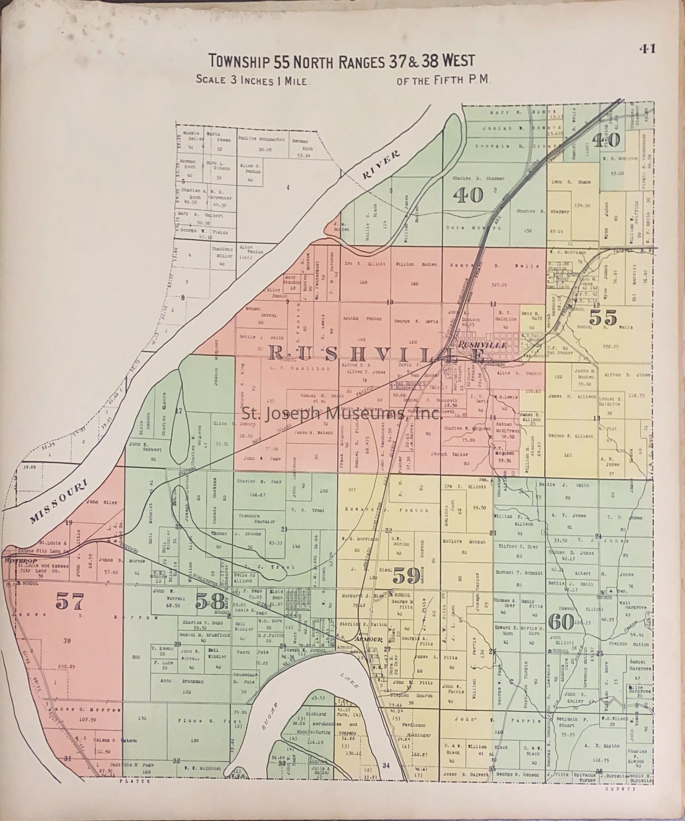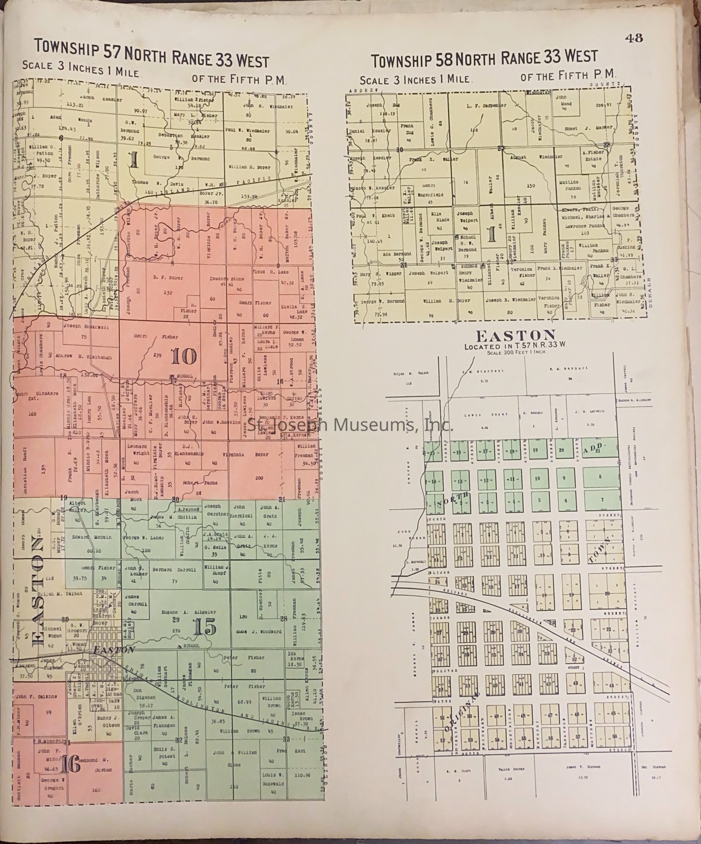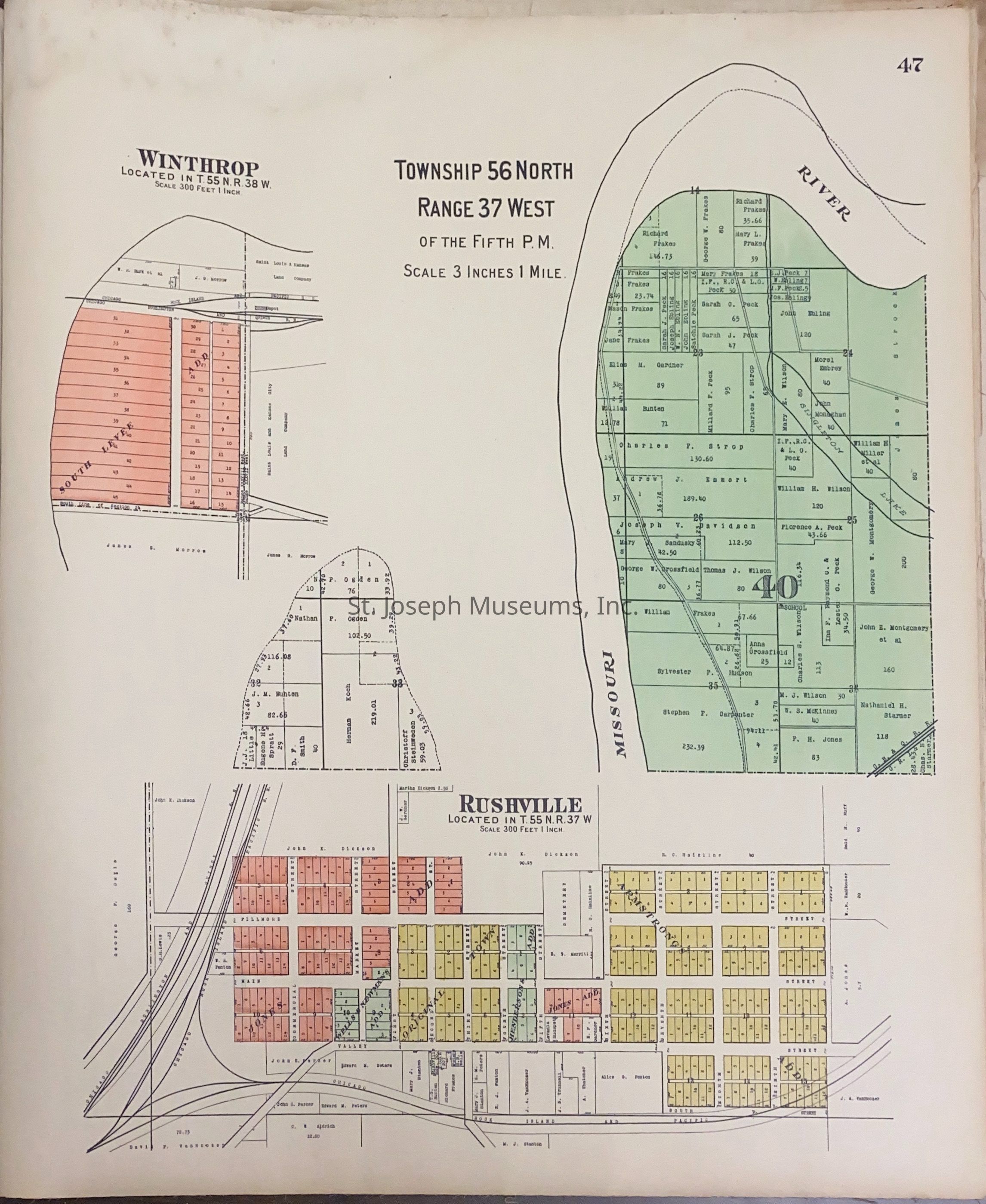 Atlas of Buchanan County, Missouri is an index of Buchanan County by township, section and range. Index of St. Joseph, Missouri by section, township and range and and index for additions and subdivisions of St. Joseph under the direction of Seitz-Peterman Engineering company.