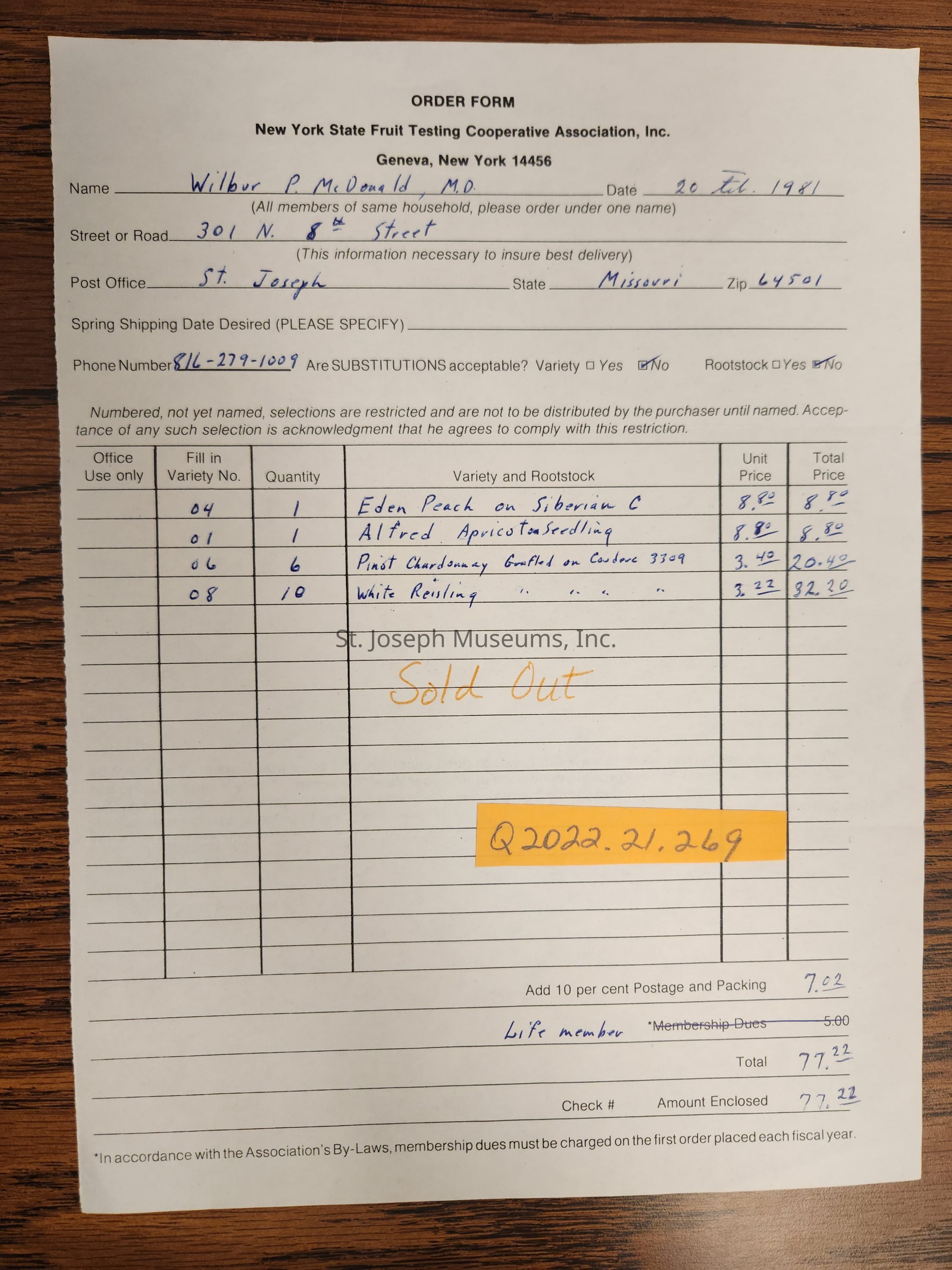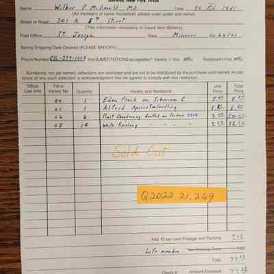 (There is hand-written "Sold Out" in orange in the middle of the form)