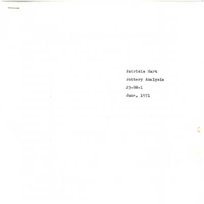 Pottery Analysis written by Patricia Hart about vessels and sherds found at King Hill excavation (23BN1). Written June 1971