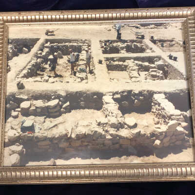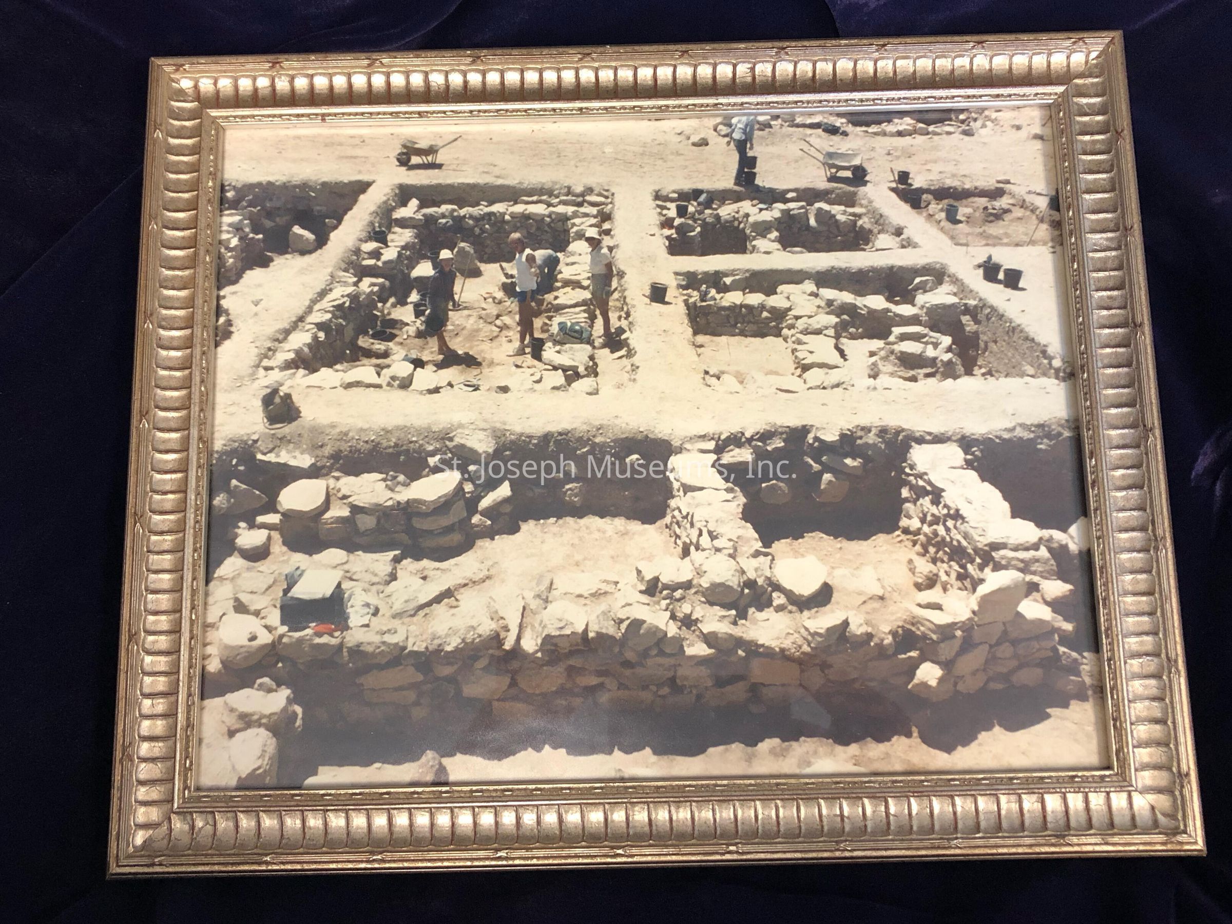 Framed photograph showcasing Doctor Albright’s excavations in Israel.Context