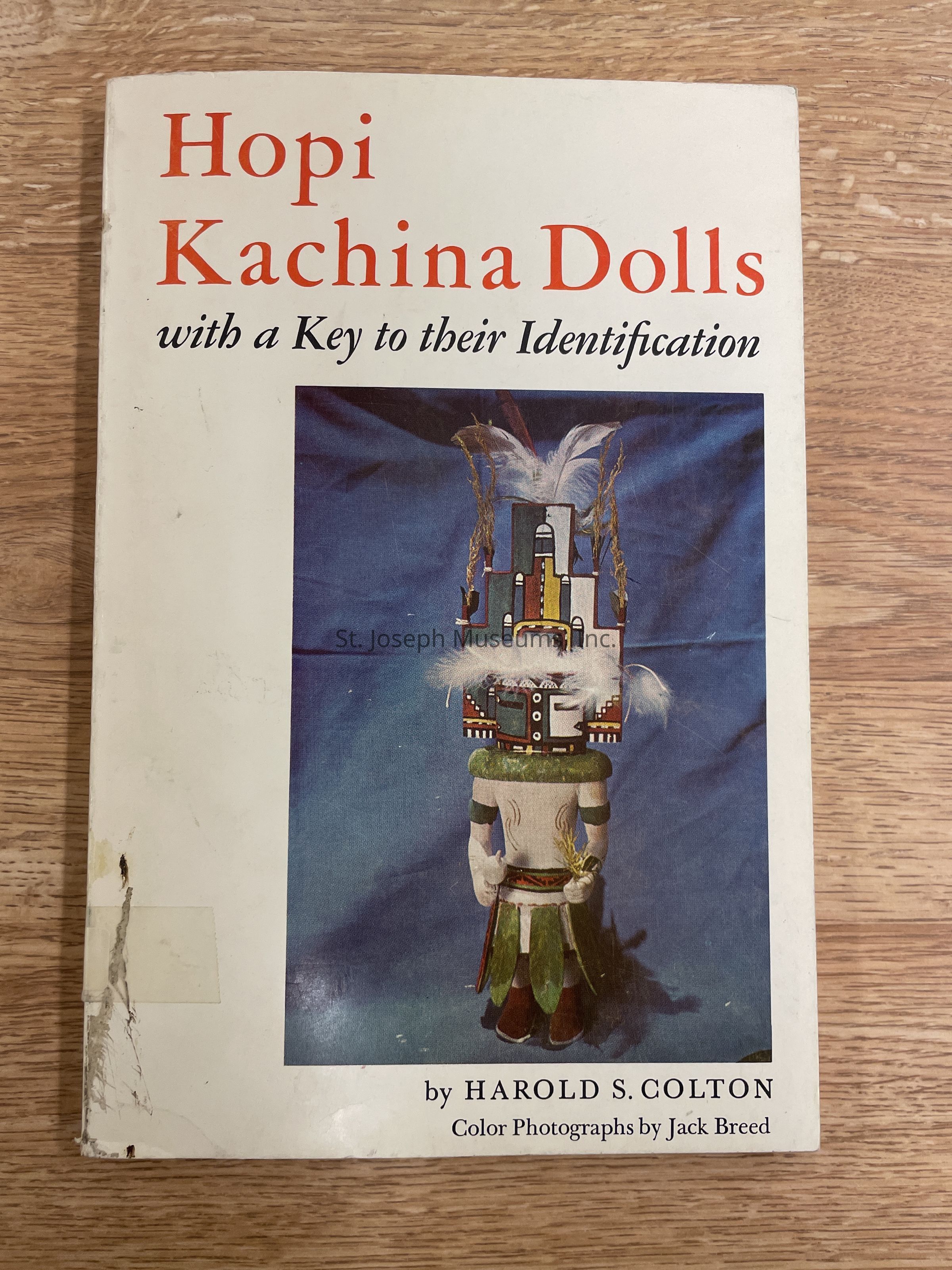 Hopi Kachina Dolls with a Key to their Identification explains the reason for the art form of the Kachinas (a supernatural being impersonated by a man who is wearing a mask) The Hopi Indians give these dolls to their children as aids in teaching their religion and traditions. They are objects to be cherished and studied. The color photographs were done by Jack Breed.