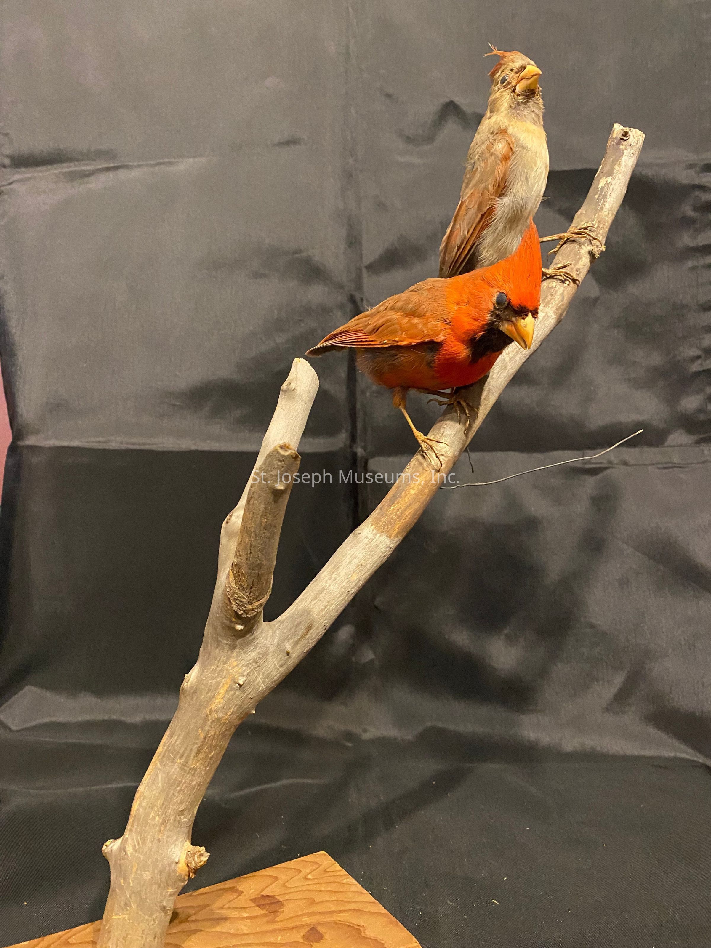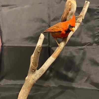 Northern Cardinal/mounted on wooden base & branch Sex of Specimen: Male