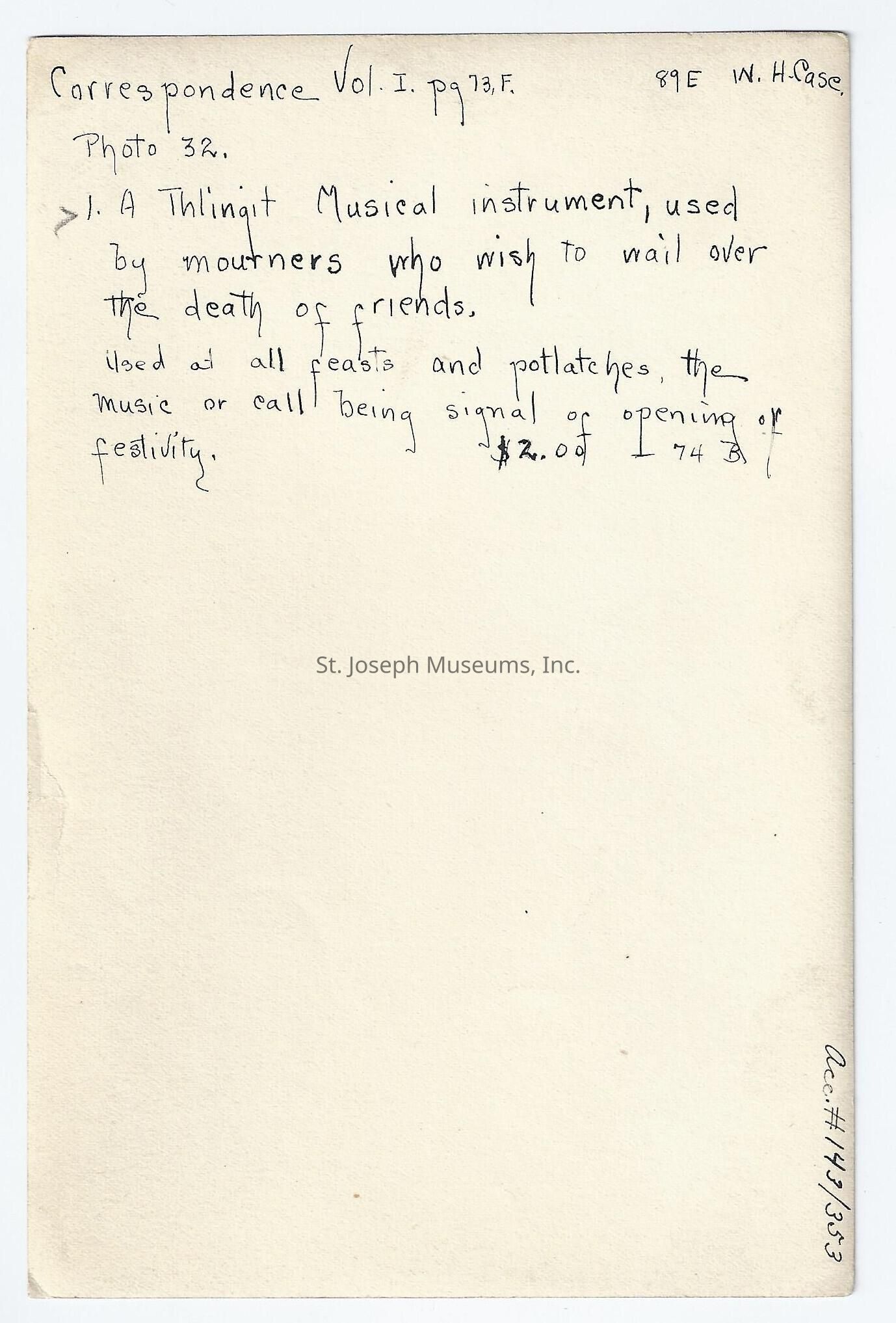 MUSICAL INSTRUMENT USED AT FUNERAL, FEASTS, POTLATCHES ETC.