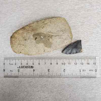 1 BAG OF 2/1 HOE - 1 BROKEN PROJECTILE POINT/VARIOUS SIZES