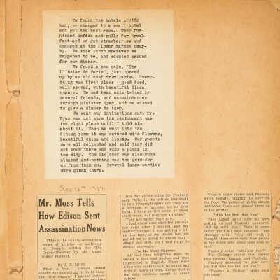 Mr. Moss Tells How Edison Sent Assassination News (Nov. 12, 1937)Photograph Details