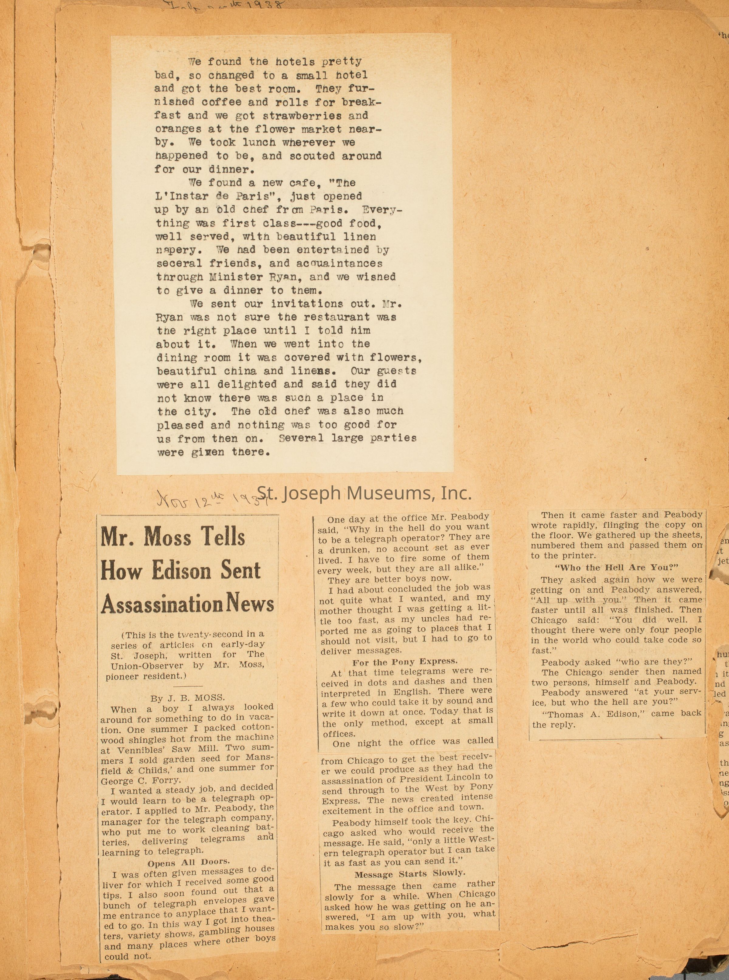 Josiah Beattie Moss, St. Joseph Union -Observer, St. Joseph, MissouriCollection