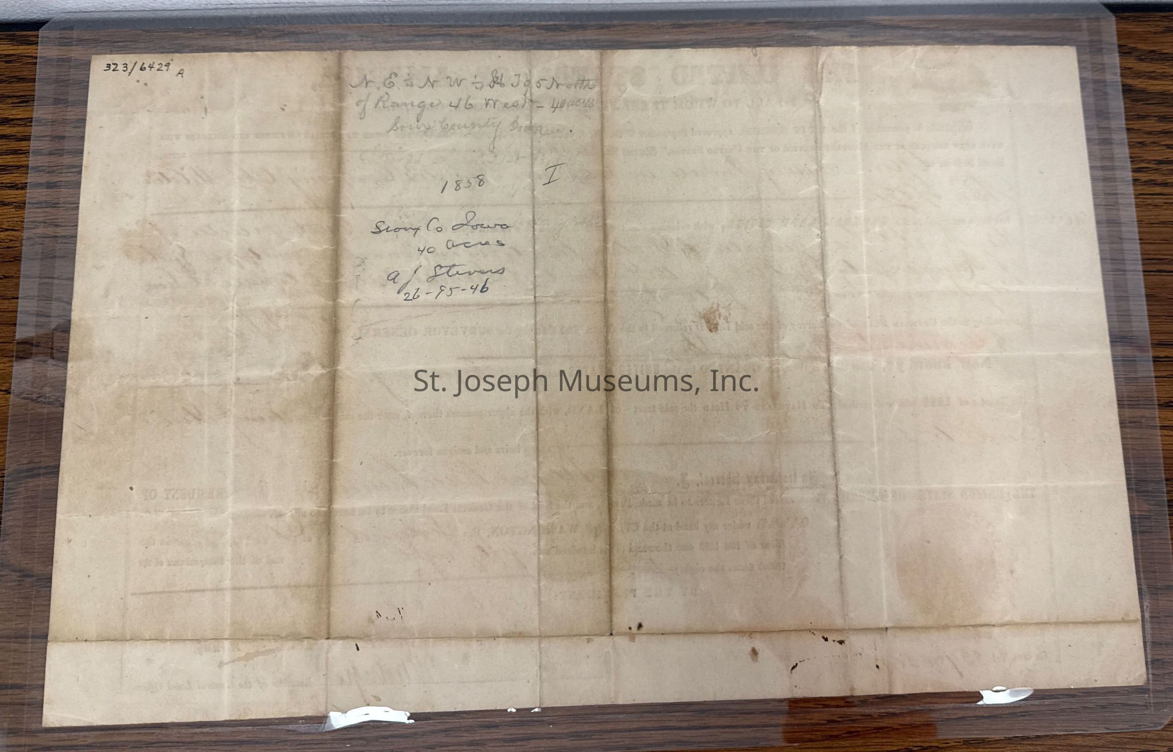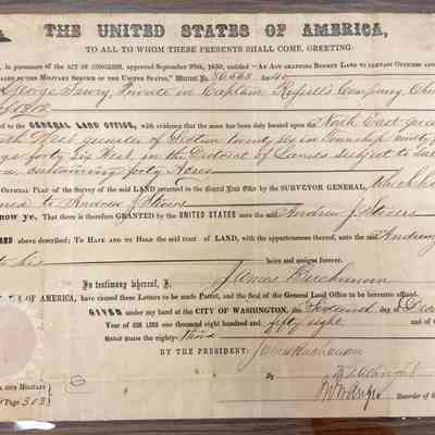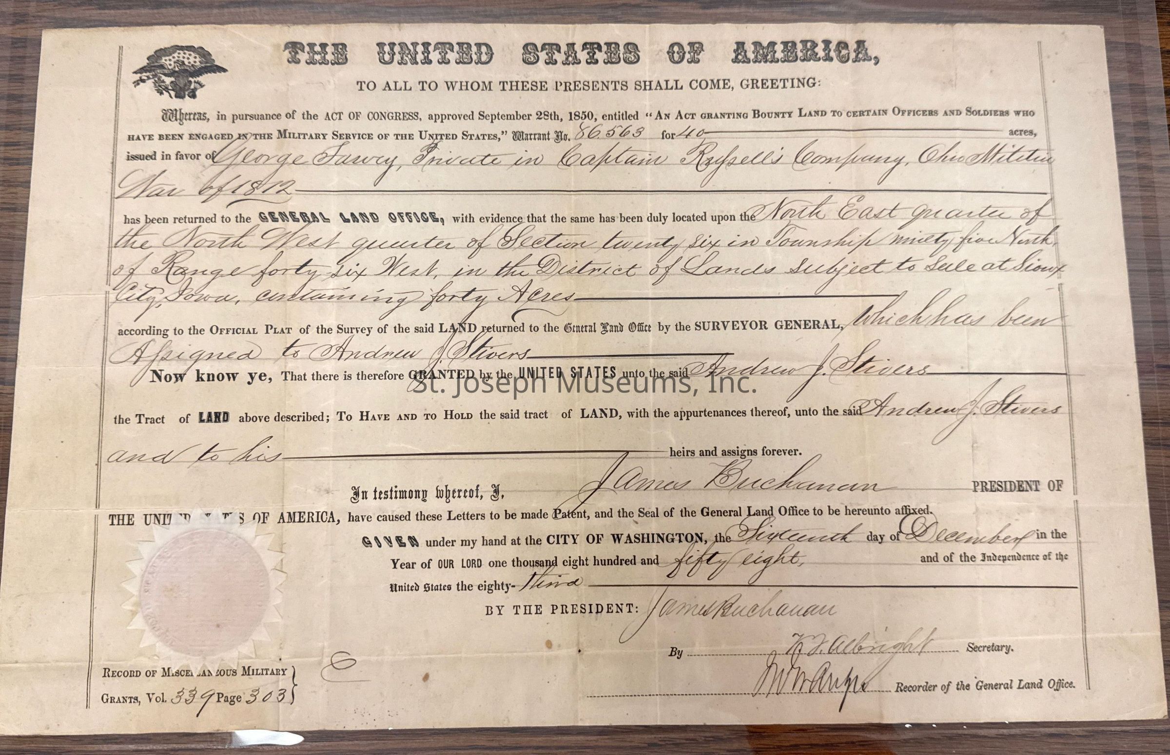 Farvey, George Land Grant for Service in War of 1812, Sioux City, IA, 1858Entry/Object ID