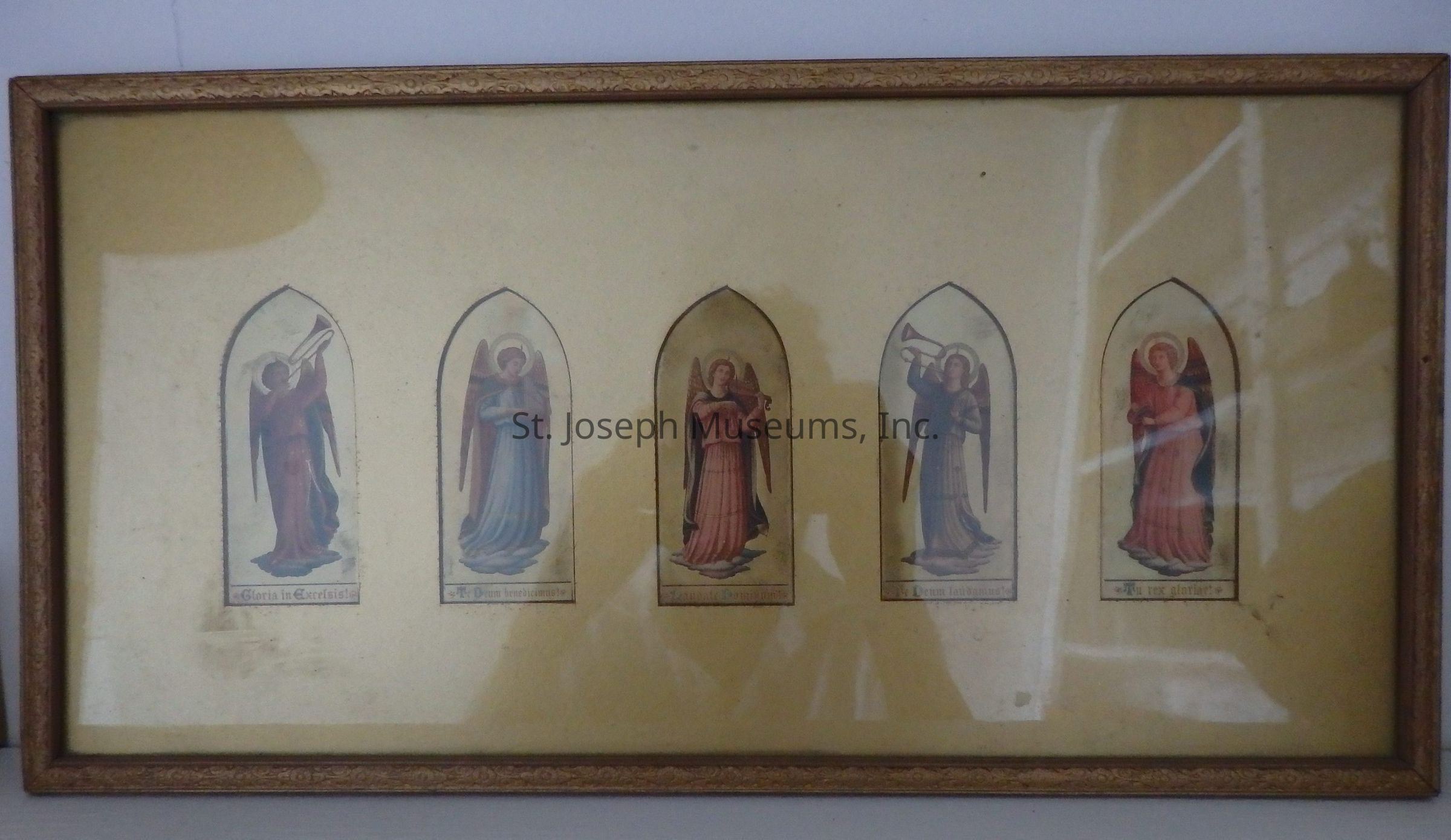 Framed reproduction of five, Fra Angelico angels.