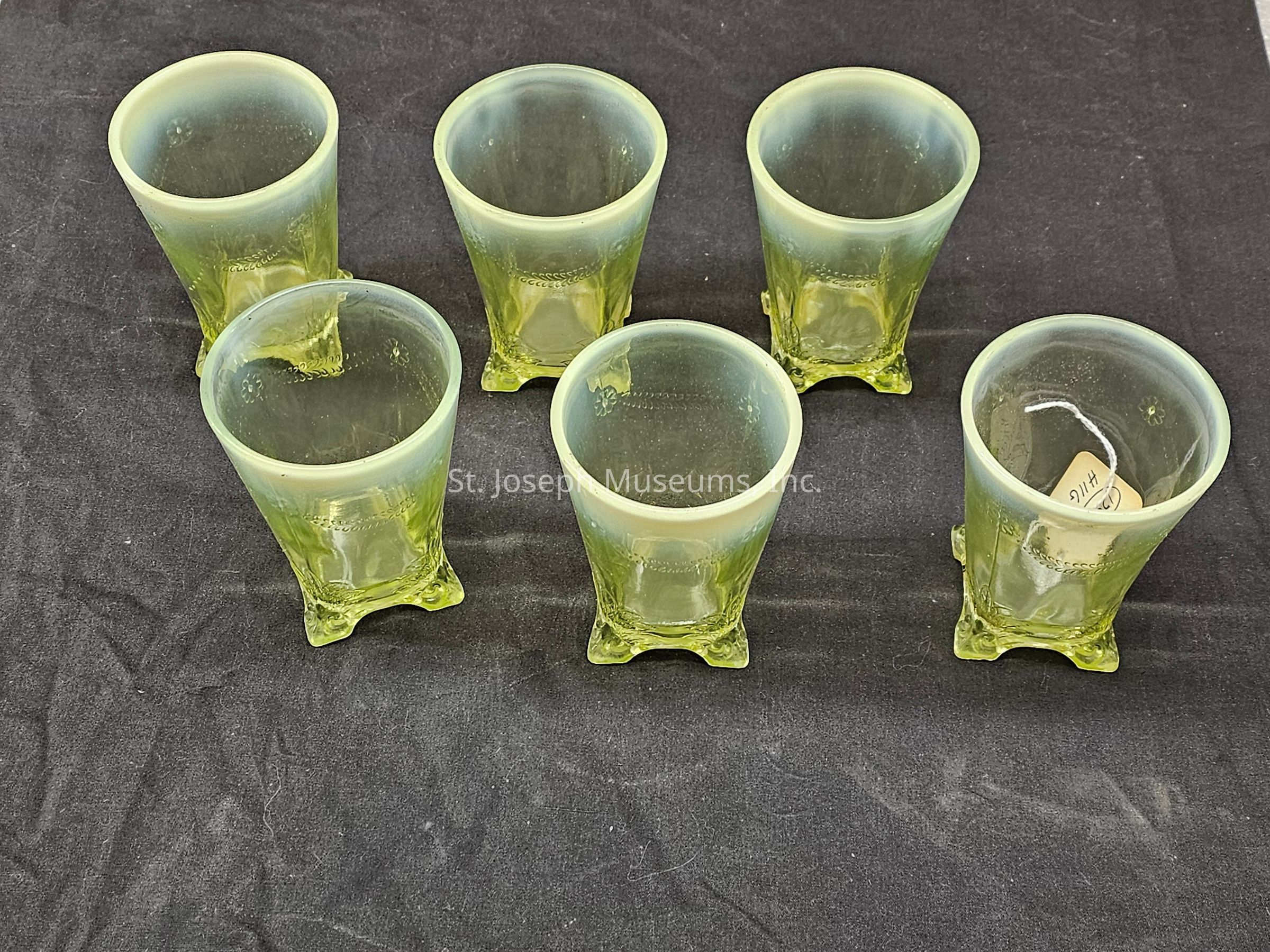 WATER GLASS/MILKY RIM/SWAG LEAF DES/4 FOOTED+