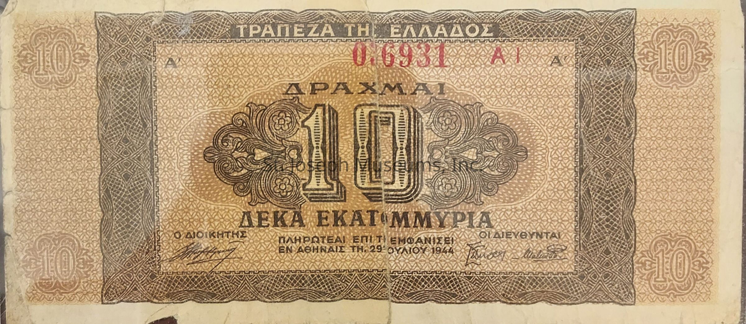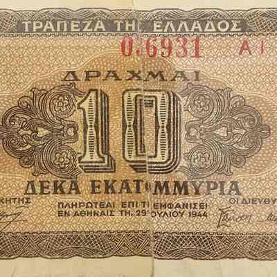 Greece Currency, Aeka, 10 note, 1944.Entry/Object ID