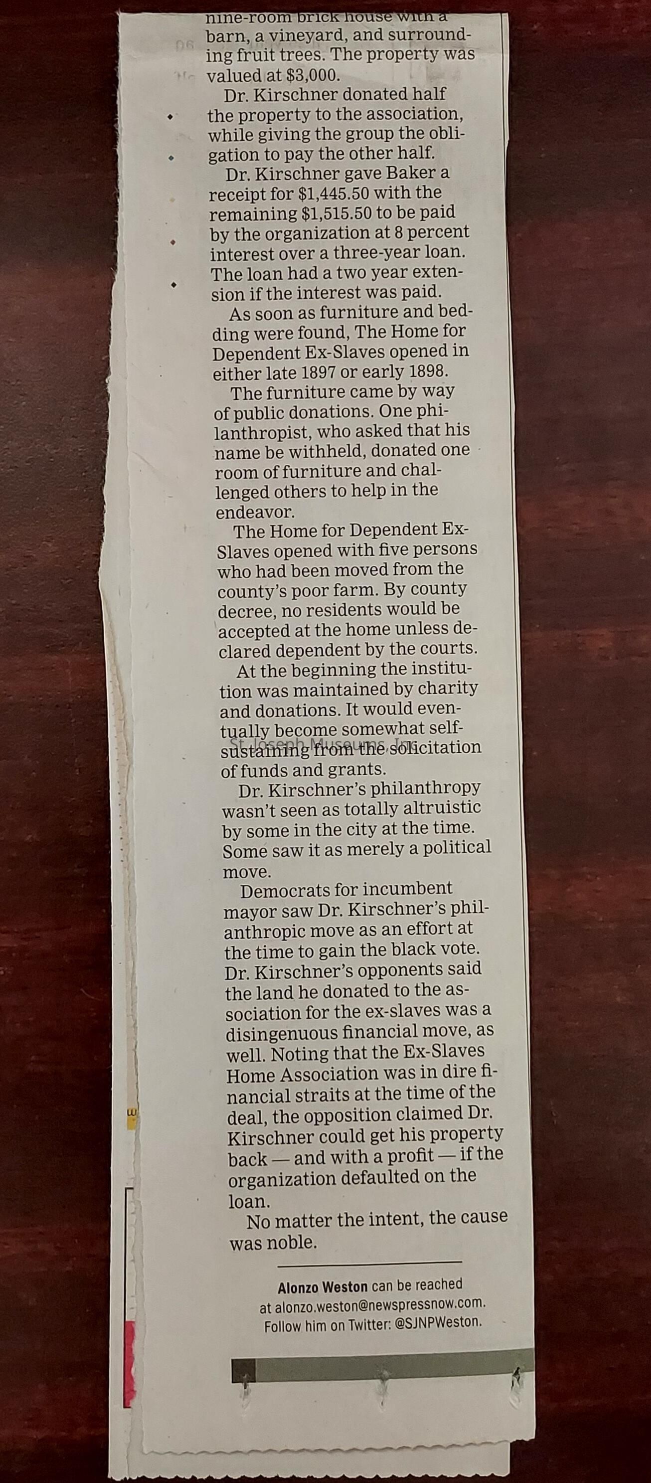 Column by Alonzo Weston regarding the history of the Home.Collection