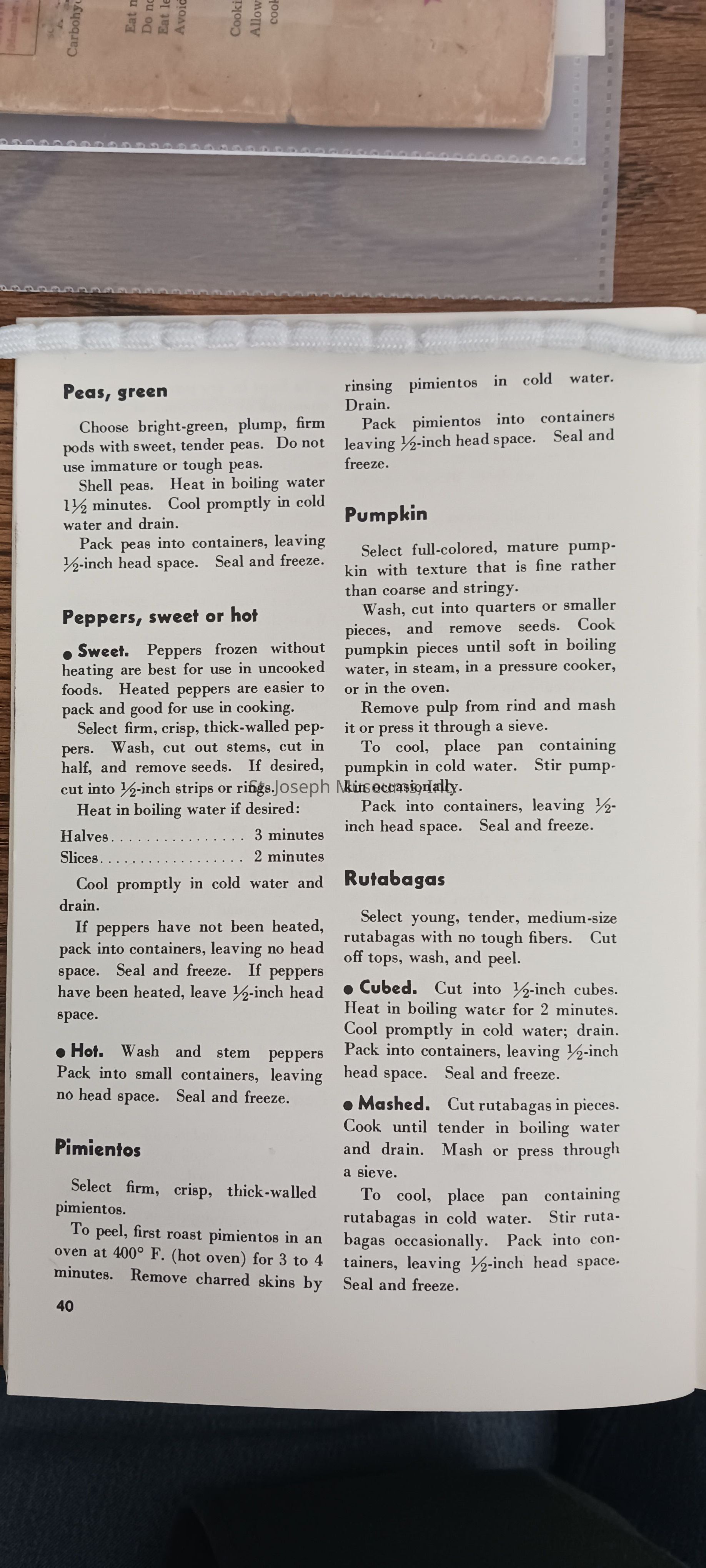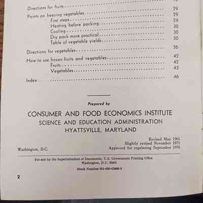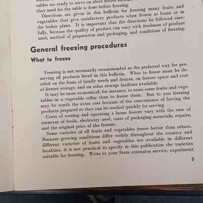 Home Freezing of Fruits and Vegetables is the title of the booklet. This booklet is a Consumer Service of USDA. The booklet contains methods for freezing fruits and vegetables and how to use and or store frozen fruits and vegetables.