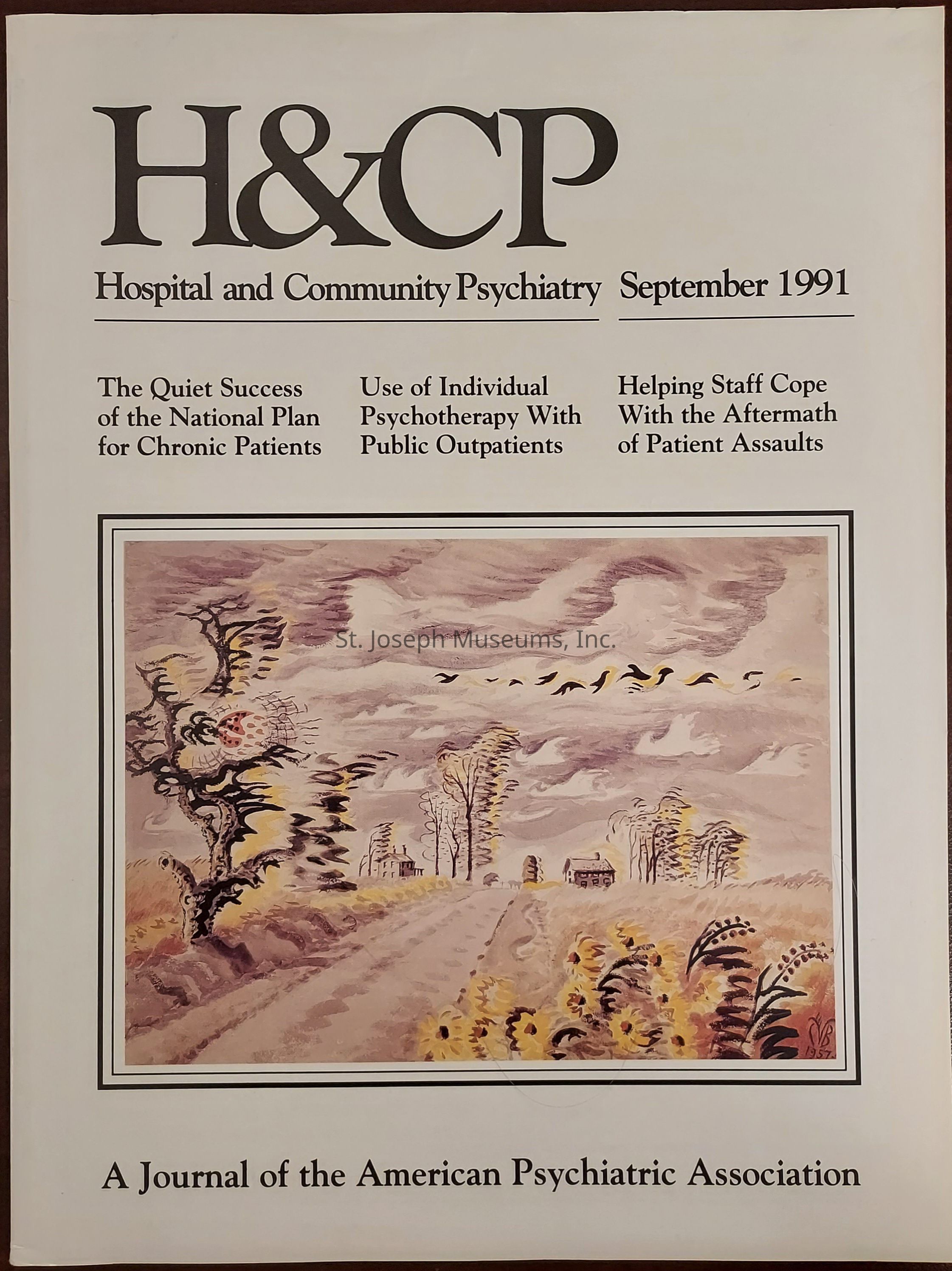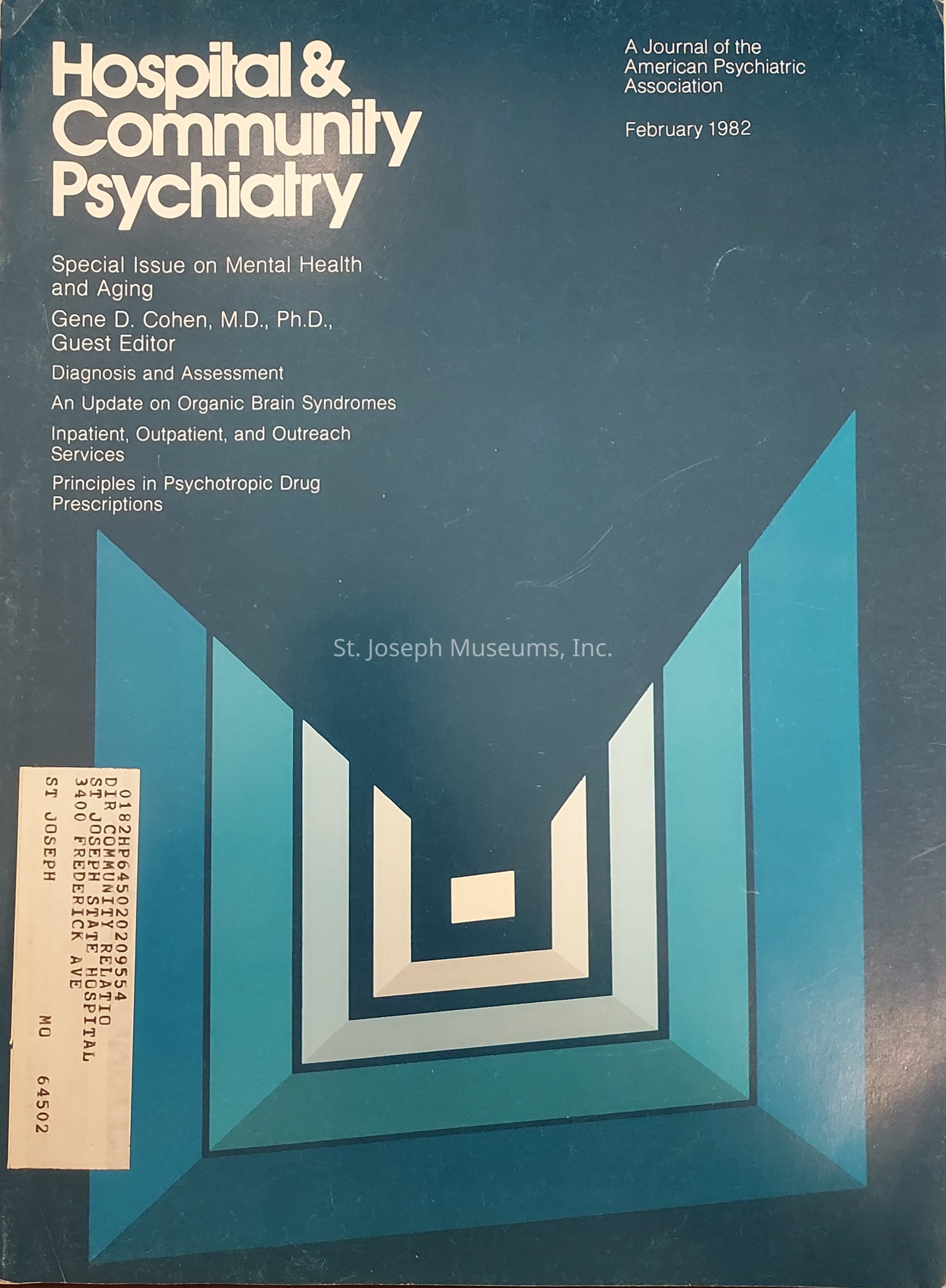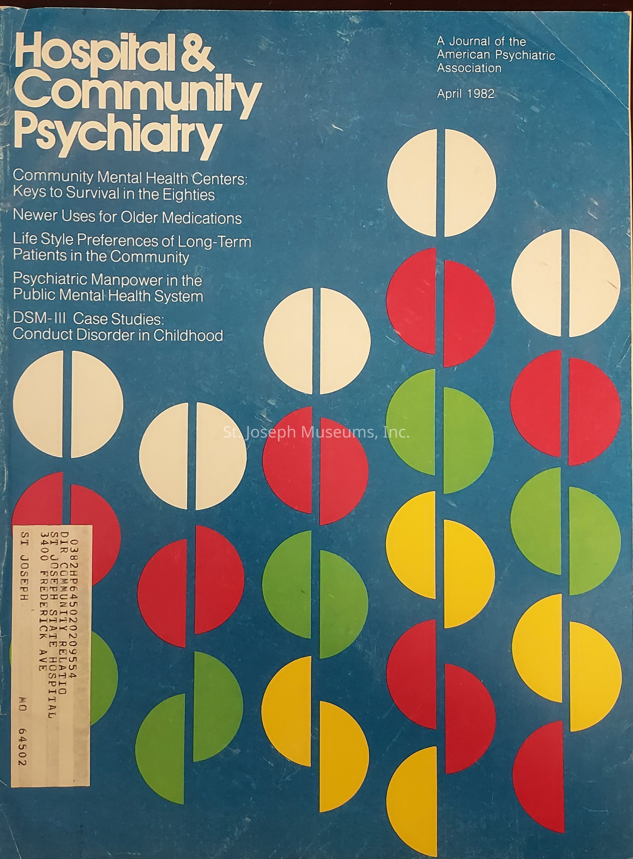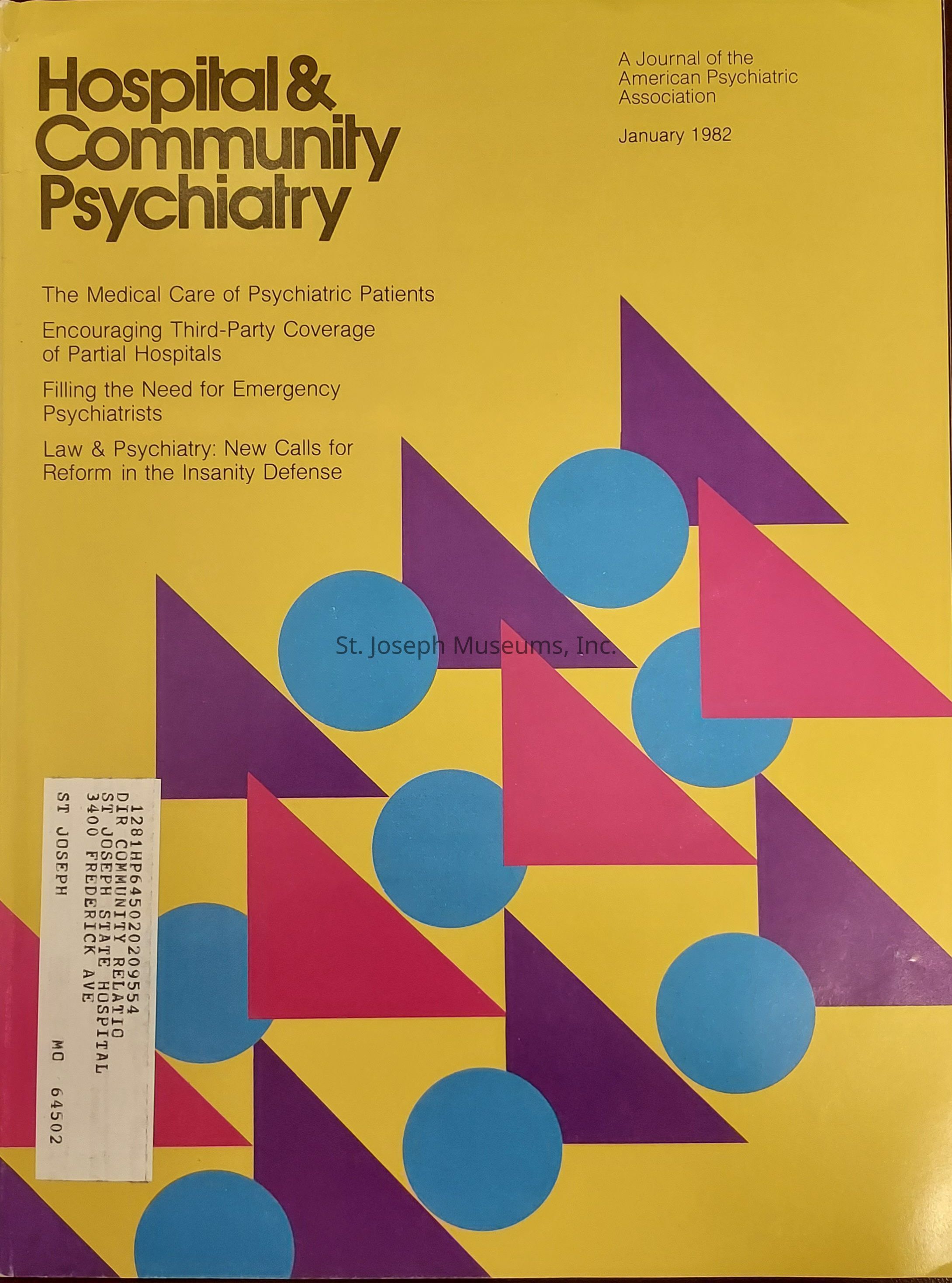 Hospital & Community Psychiatry, 1982,1991 &1992. 17 issues A = Volume 33, Number 1, January 1982 B = Volume 33, Number 2, February 1982 C = Volume 33, Number 3, March 1982 D = Volume 33, Number 4, April 1982 E = Volume 33, Number 5, May 1982 F = Volume 33, Number 6, June 1982 G = Volume 33, Number 7, July 1982 H = Volume 42, Number 8, August 1991 I = Volume 42, Number 9, September 1991 J = Volume 42, Number 10, October 1991 K = Volume 42, Number 11, November 1991 L = Volume 42, Number 12, December 1991 M = Volume 43, Number 1,January 1992 N = Volume 43, Number 2, February 1992 O = Volume 43, Number 4, April 1992 P = Volume 43, Number 5, May 1992 Q = Volume 43. Number 10, October 1992 Softbound Journals in cardboard magazine holder