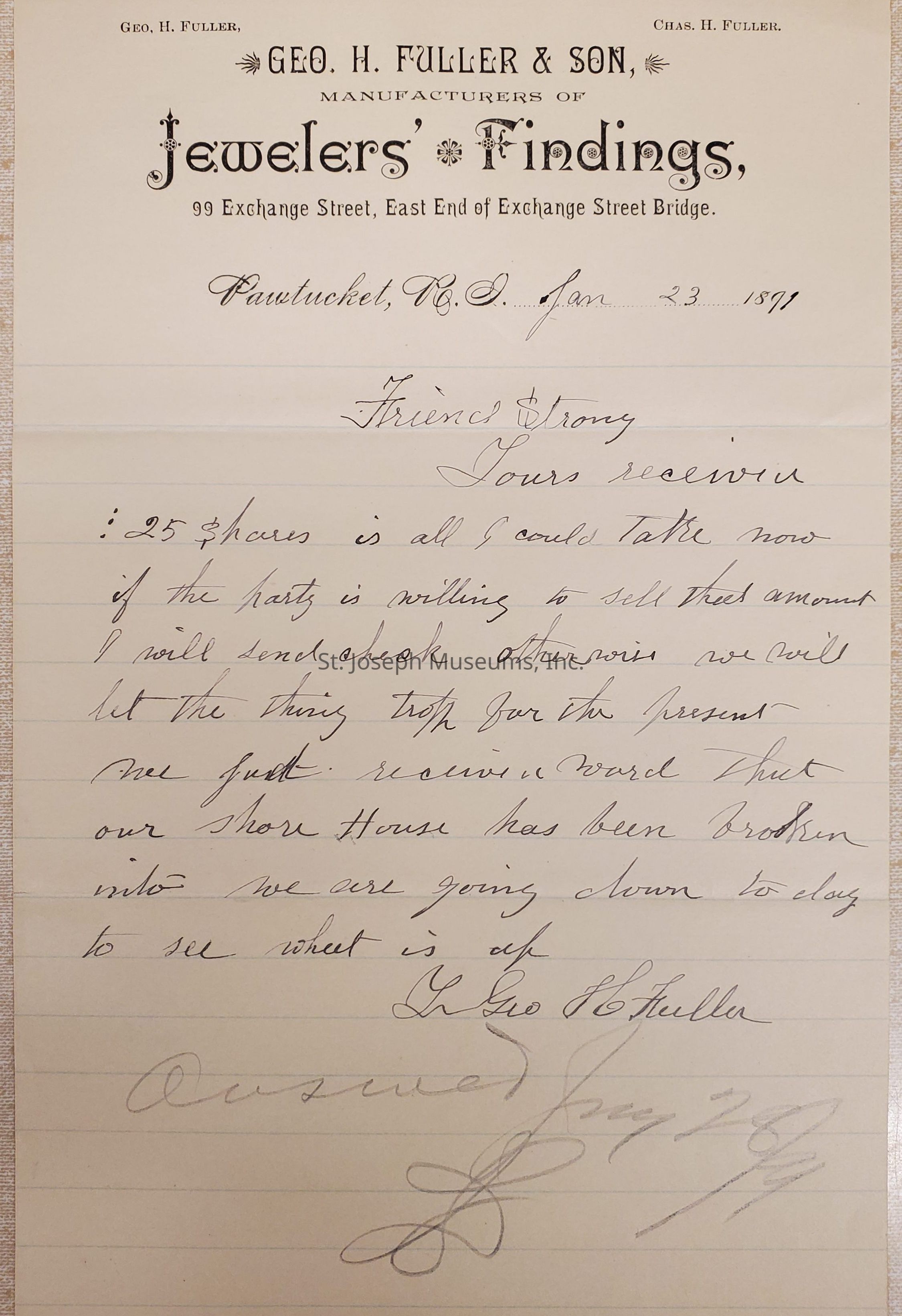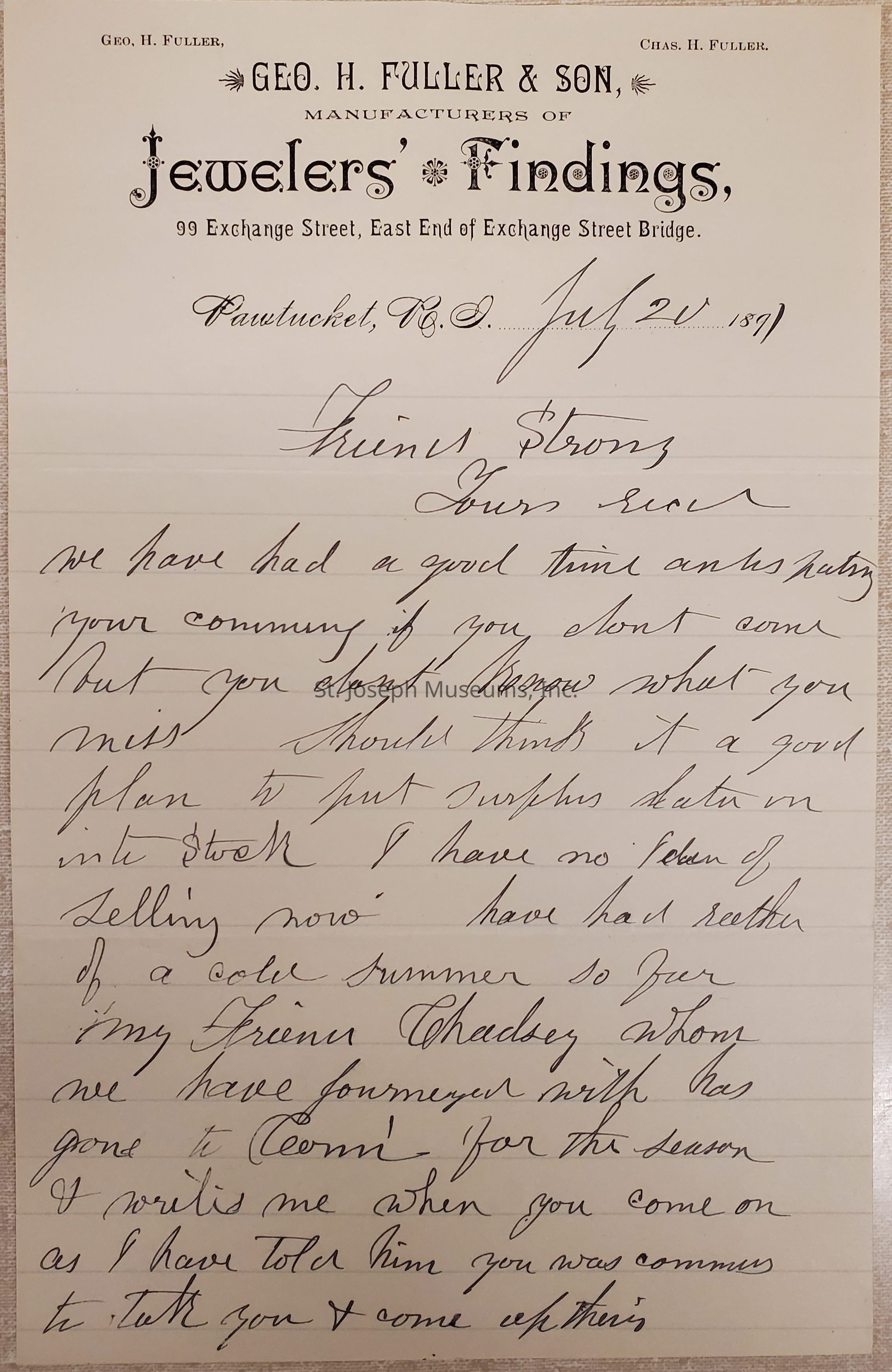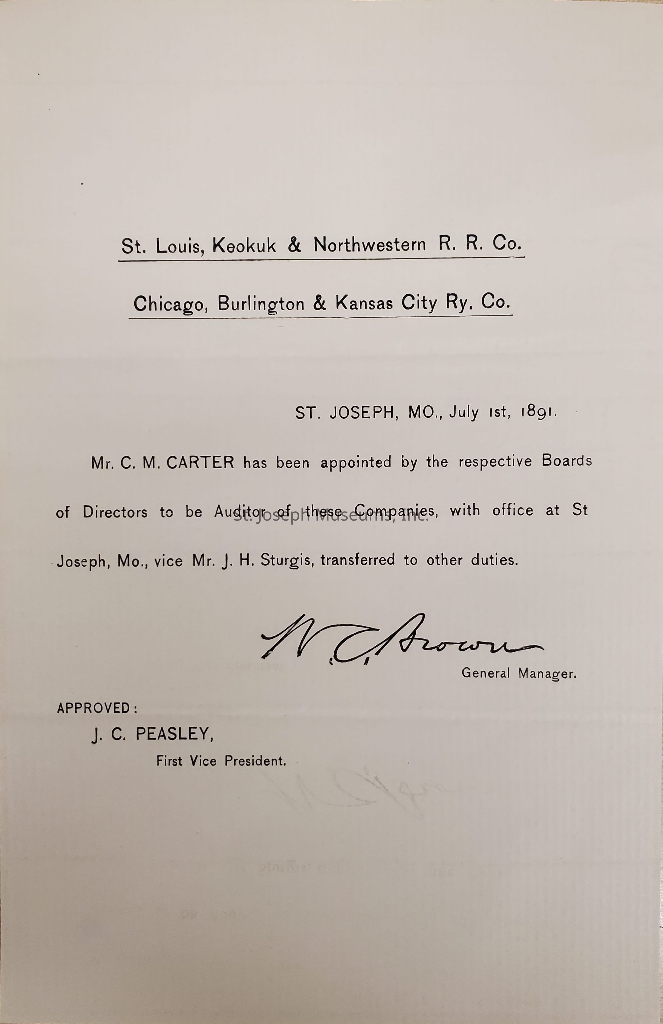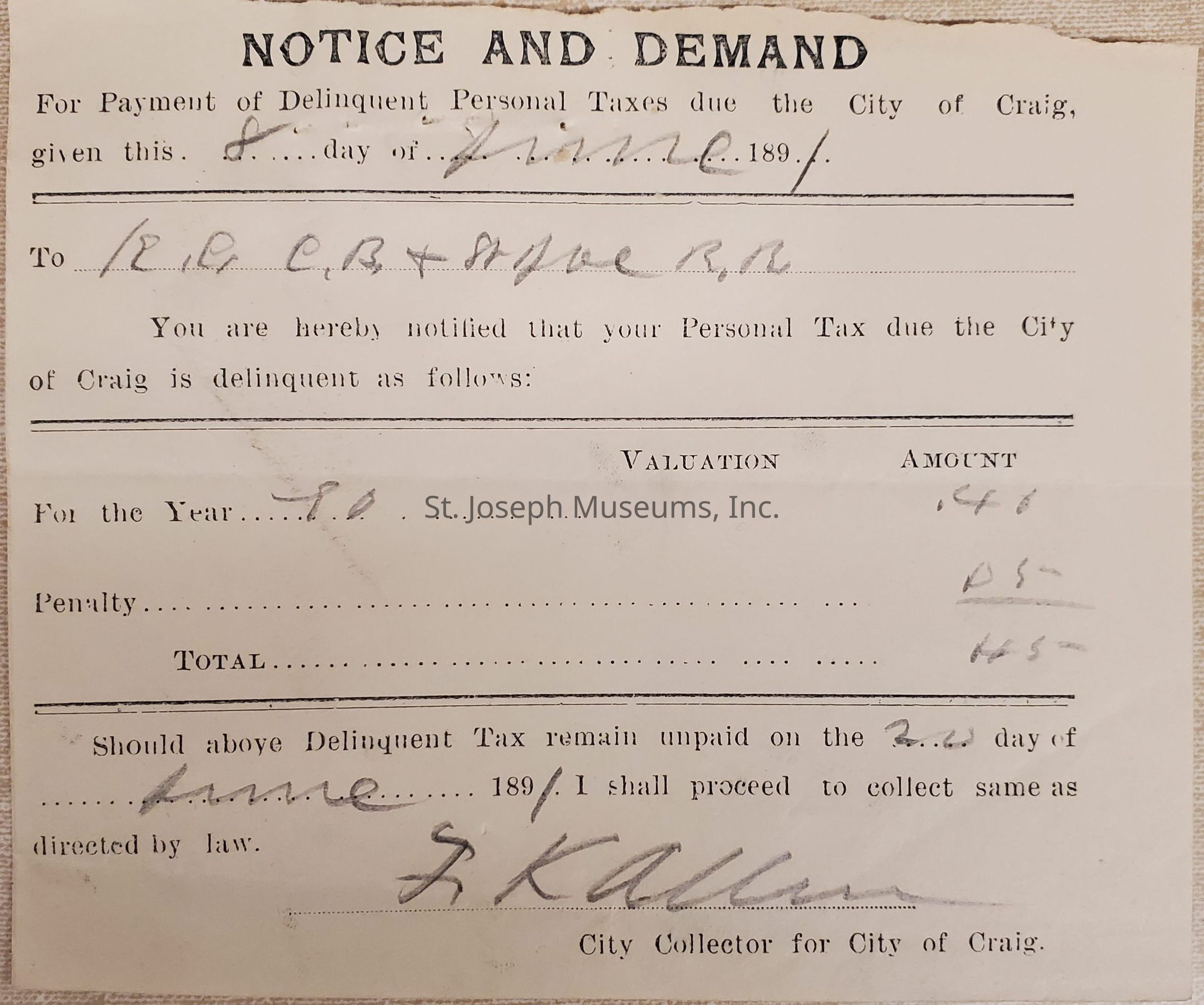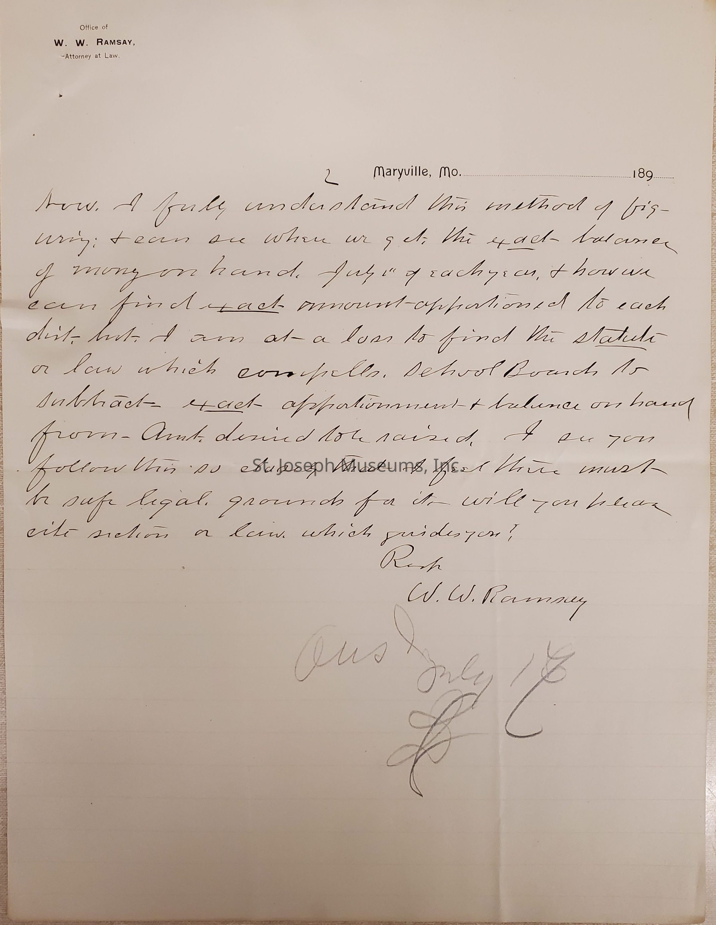 J. D. Strong was an attorney in St. Joseph. He was also a Judge, perhaps a U. S. Judge, as his cases are digested in Central Law Journal, 1880. At one time he was in the law department of the St. Joseph Kansas City and Council Bluff's Railroad. He lived on the south side of Felix Street between 13th and 14th Street. He was married to Mary E. Strong and had two sons, also lawyers, John W. and James W.