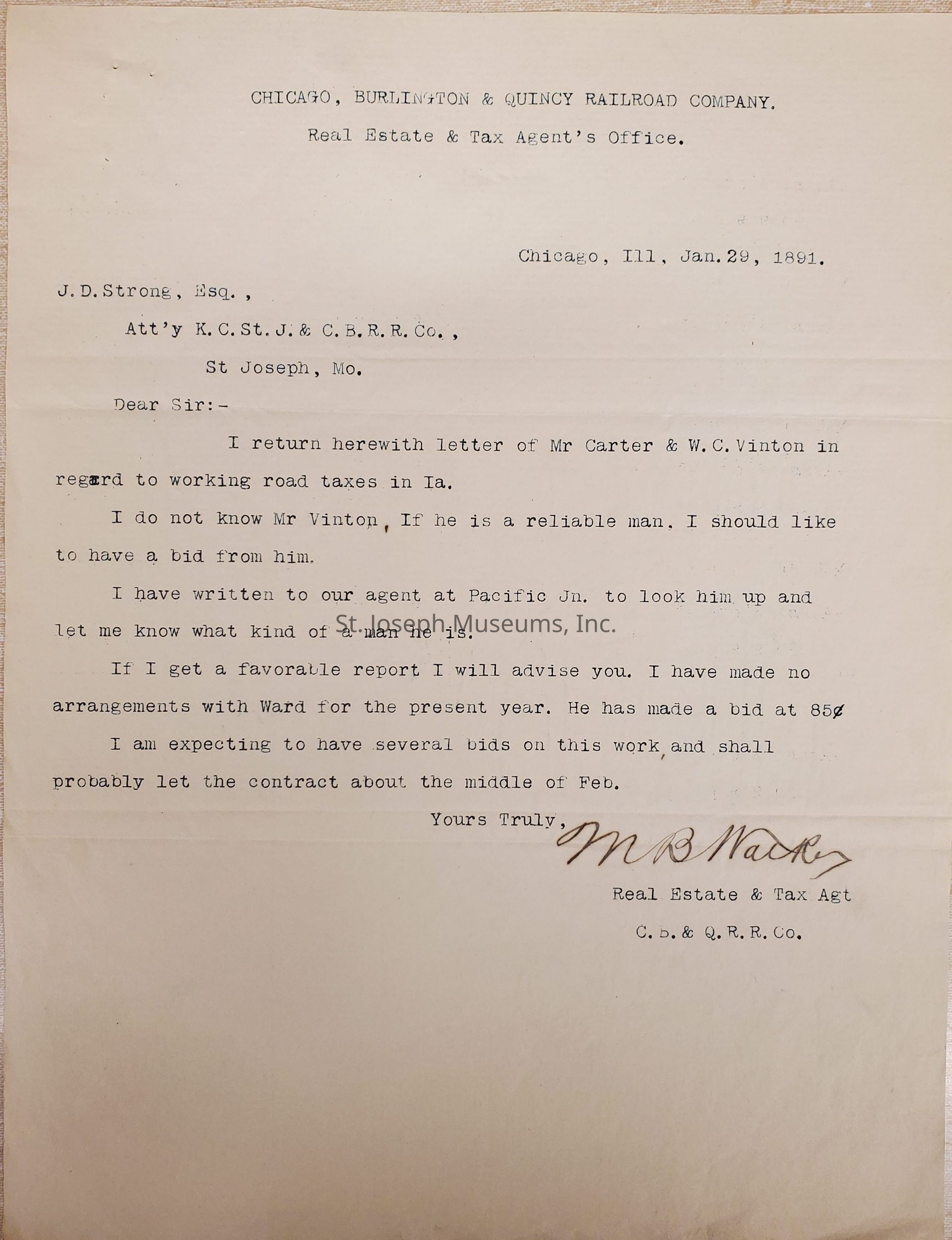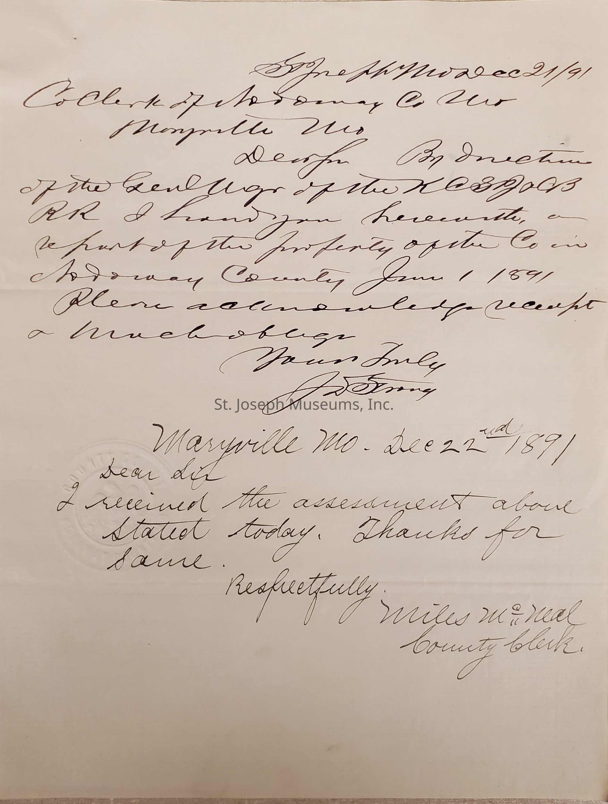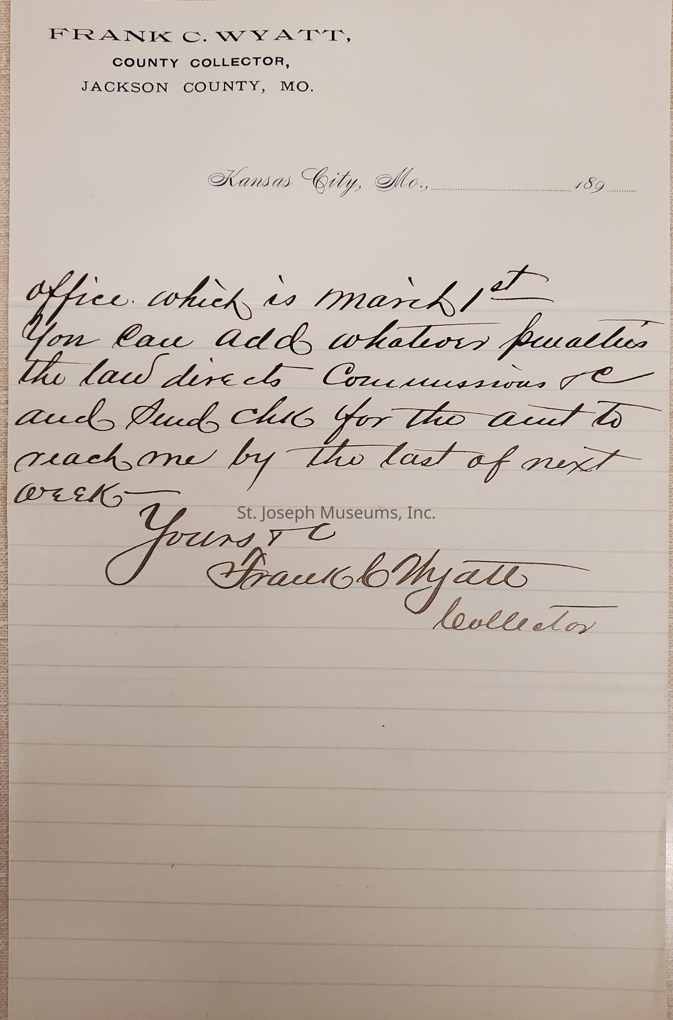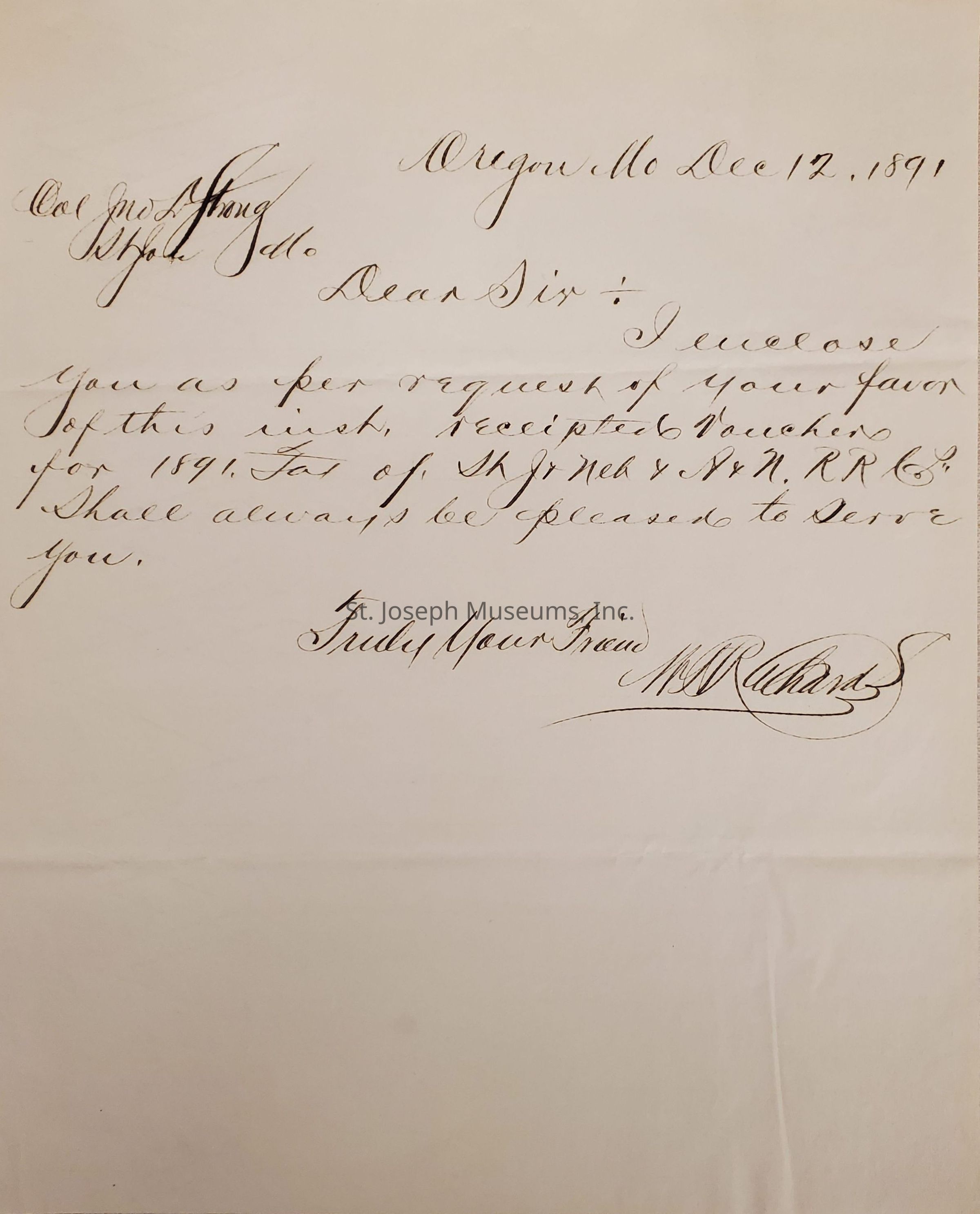 189 letters, 7 telegrams, 1 postcard, 5 Railroad items --taxes, 1 Certification of Examination of Records, 1 Tax Collector statement, 1 Article of Agreement, 1 Railroad passLexicon
