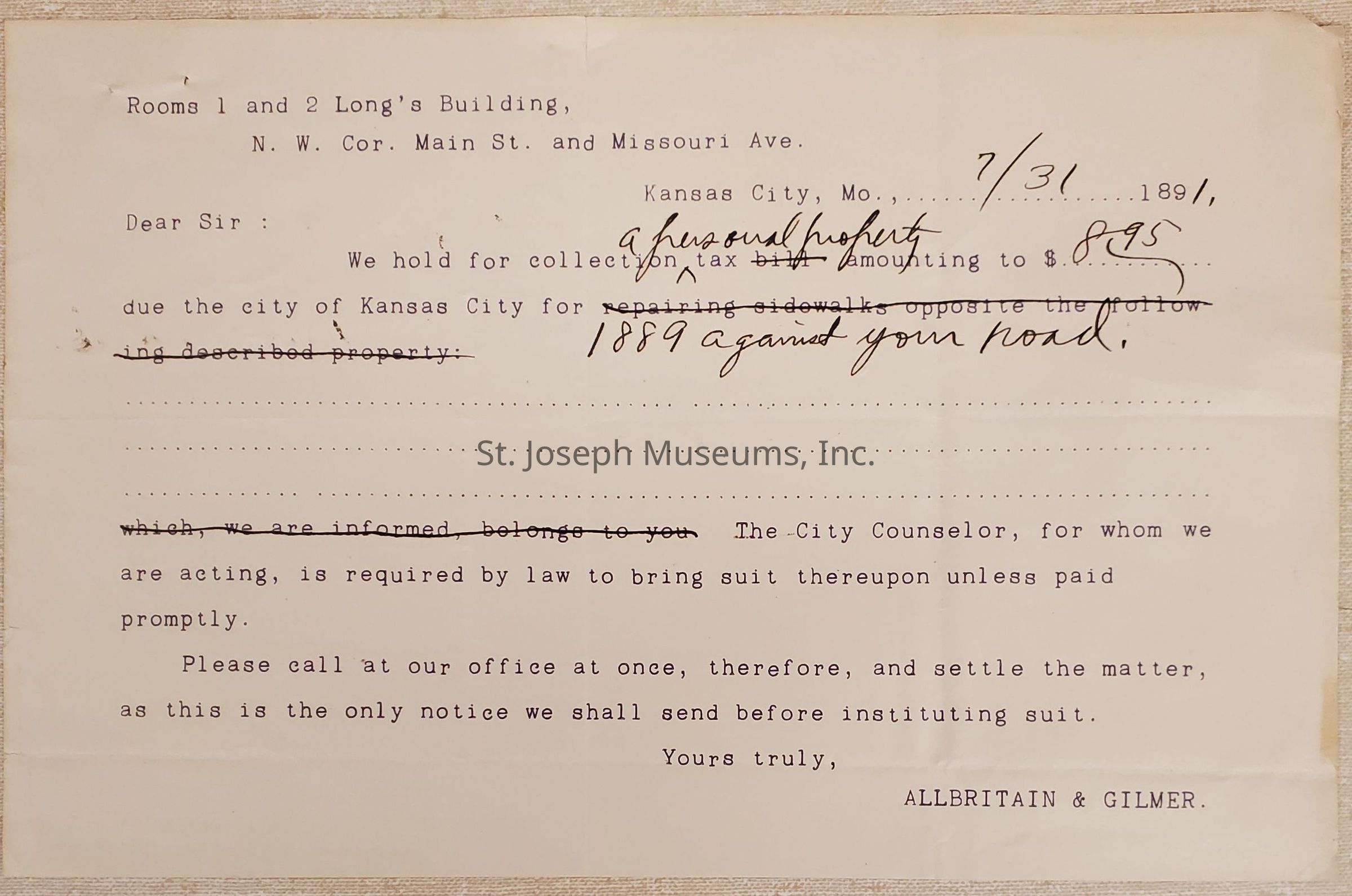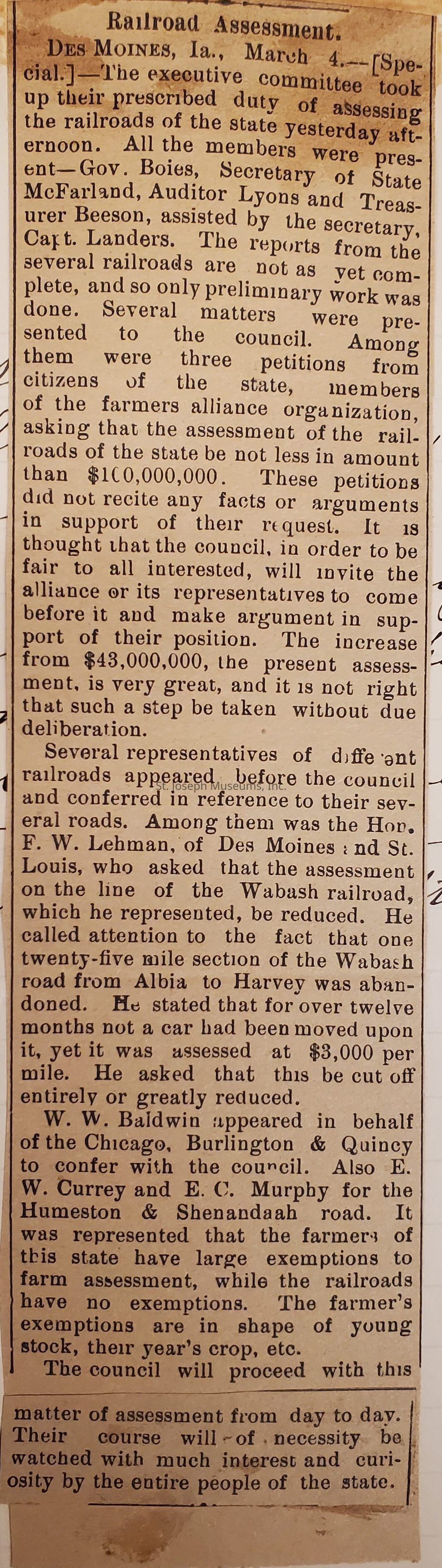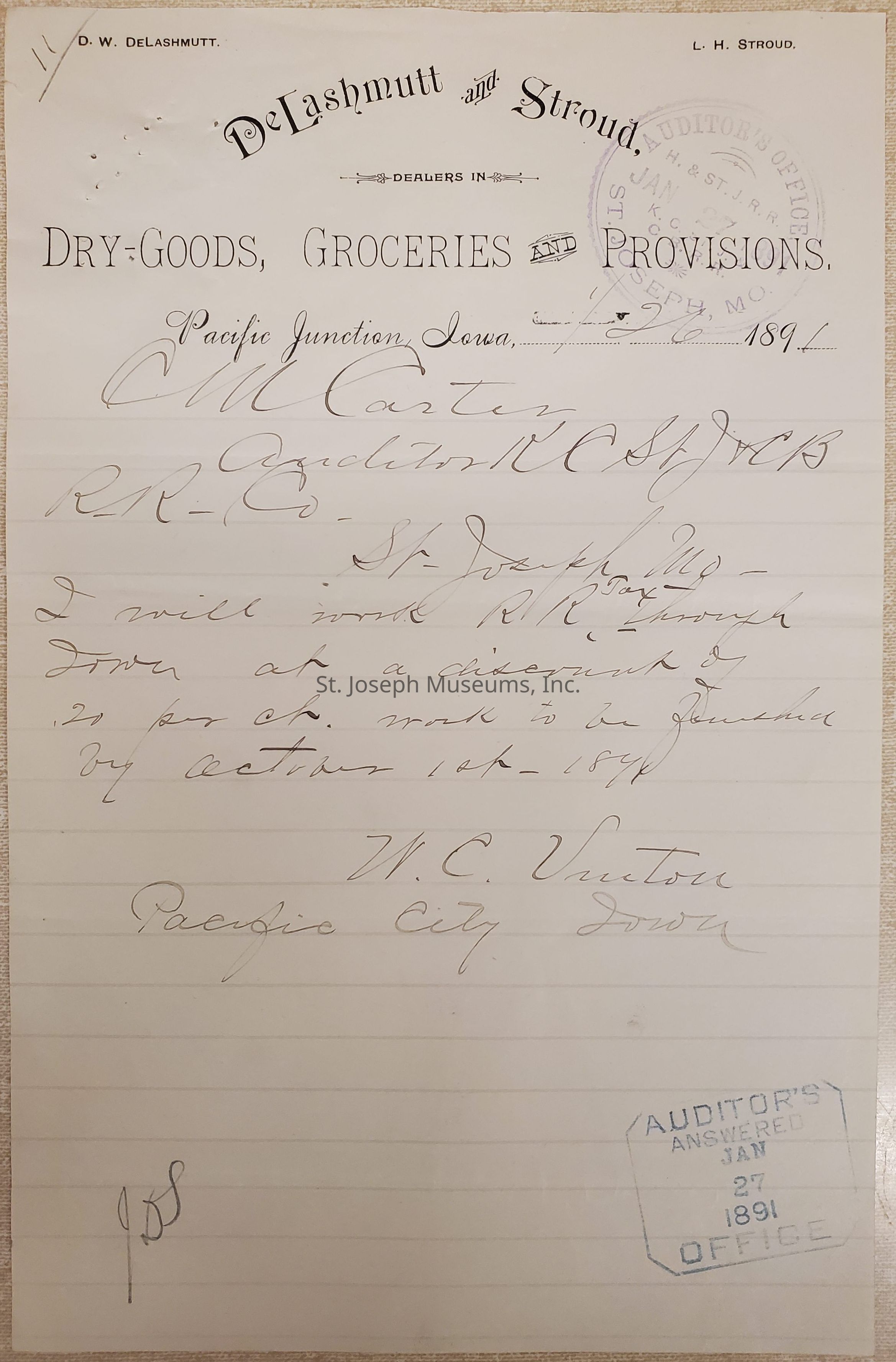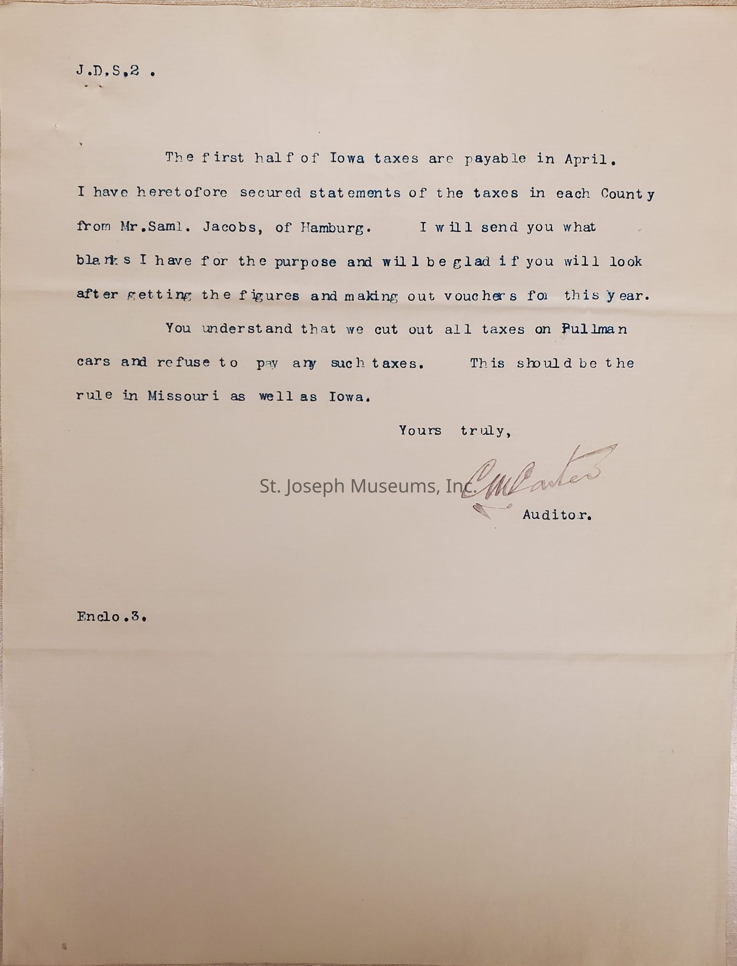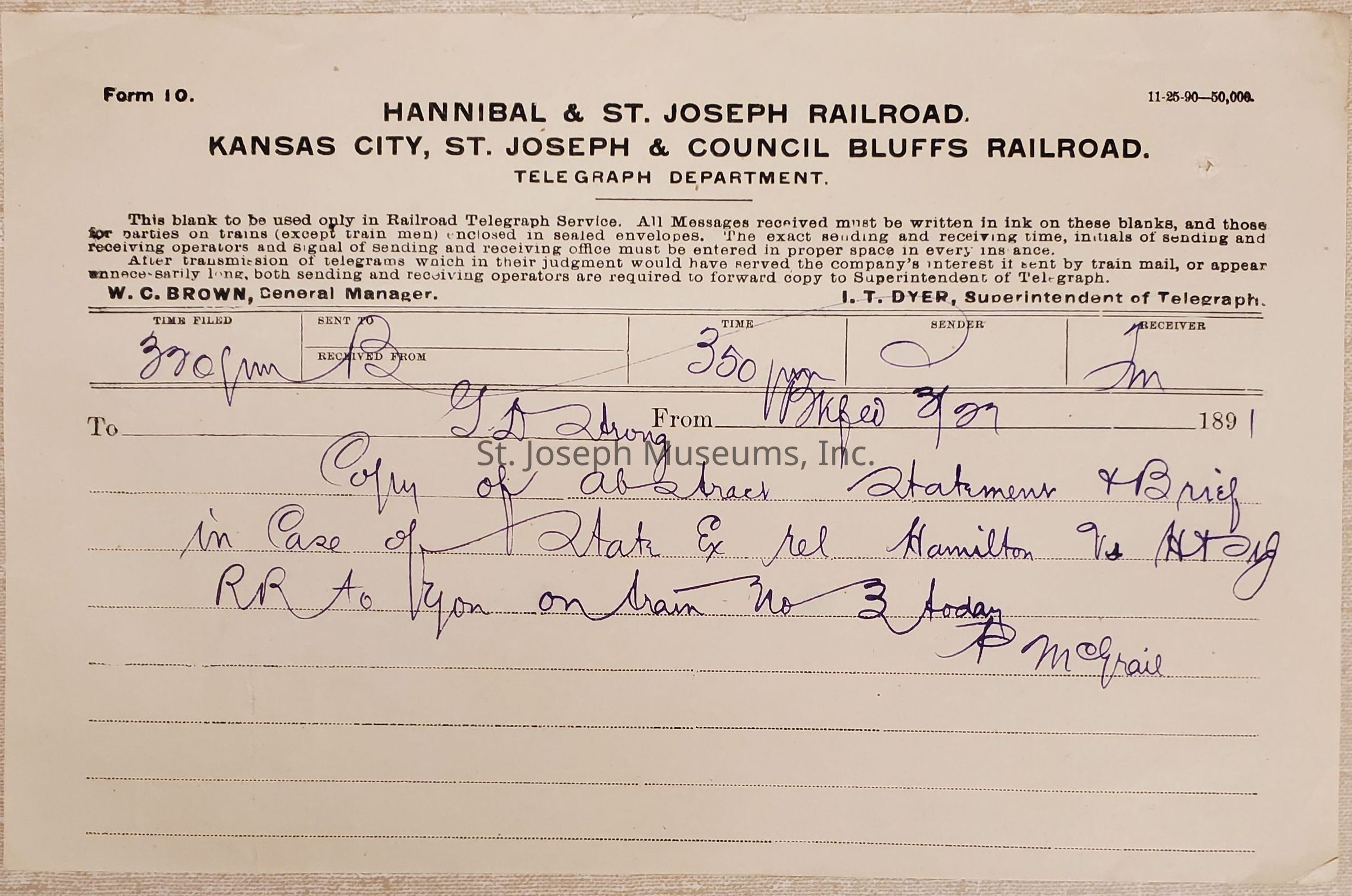 189 letters, 7 telegrams, 1 postcard, 5 Railroad items --taxes, 1 Certification of Examination of Records, 1 Tax Collector statement, 1 Article of Agreement, 1 Railroad passLexicon