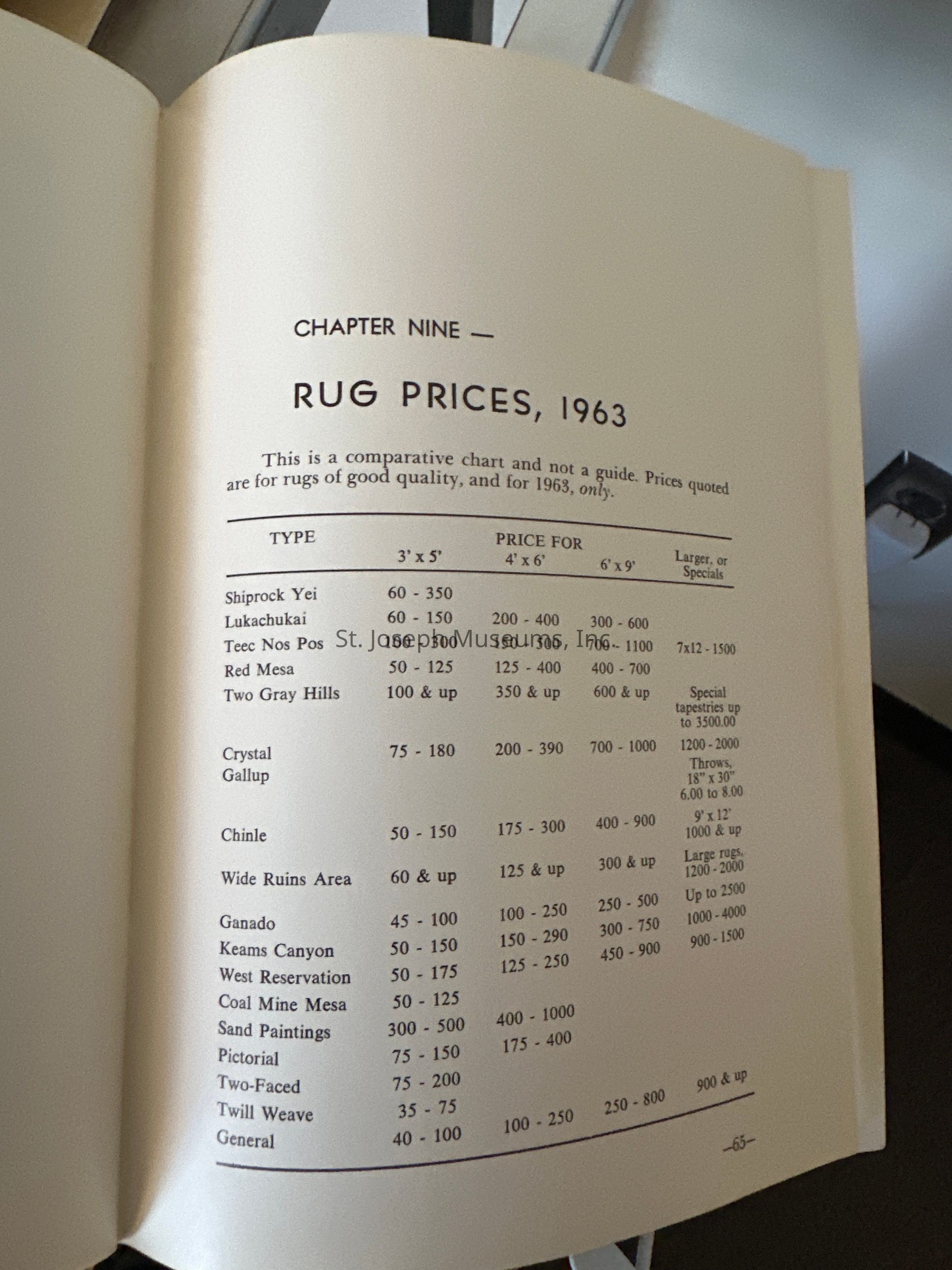 Navajo Rugs--past, present & future contains 20 full color plates. The booklet concerns itself with the origin of the different types of Navajo rugs, with suggestions on how and where to buy, and with their care. New historical notes were added to facts previously known. This booklet is from the Don Reynolds library.