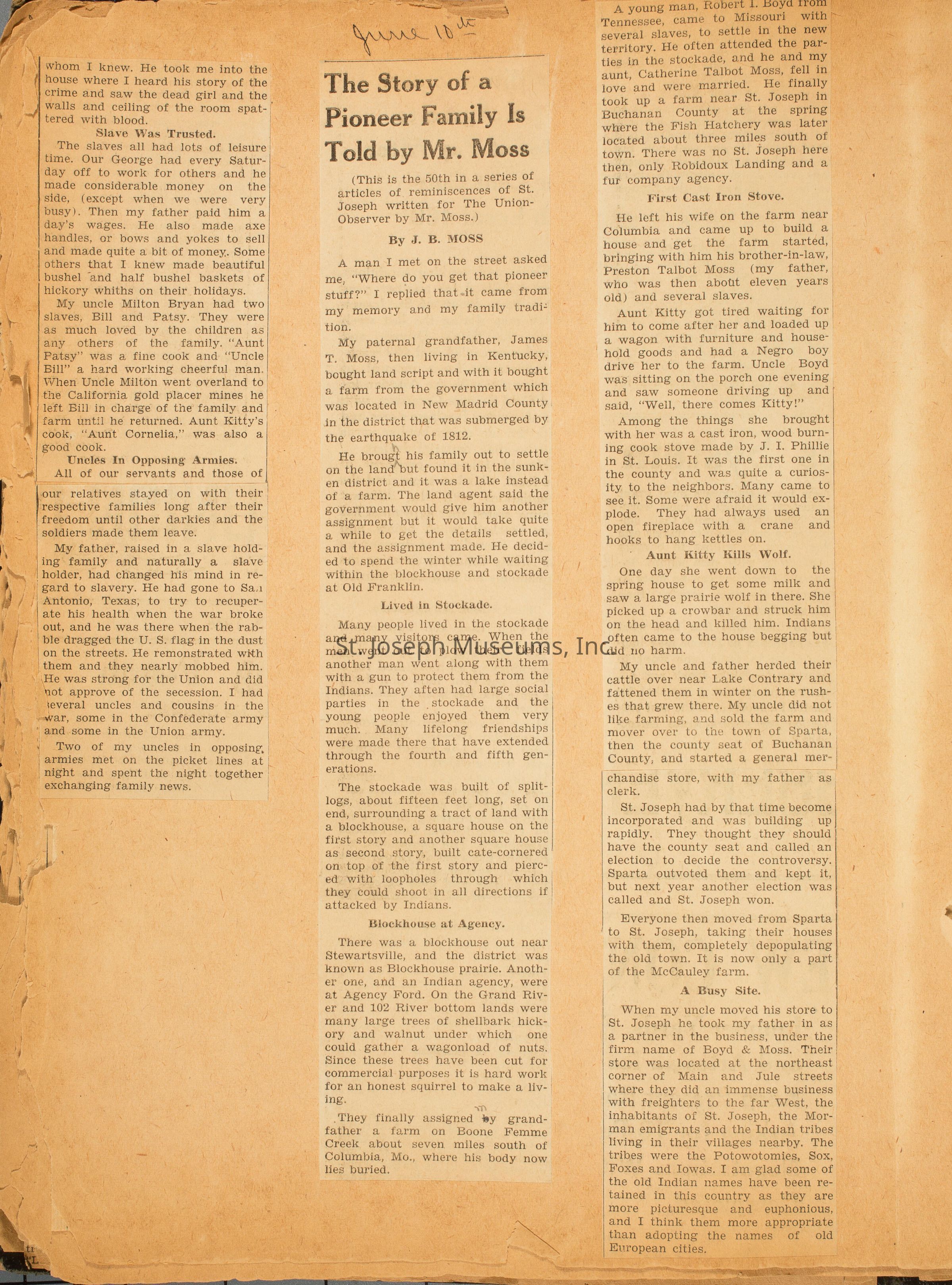 Josiah Beattie Moss, St. Joseph Union -Observer, St. Joseph, MissouriCollection