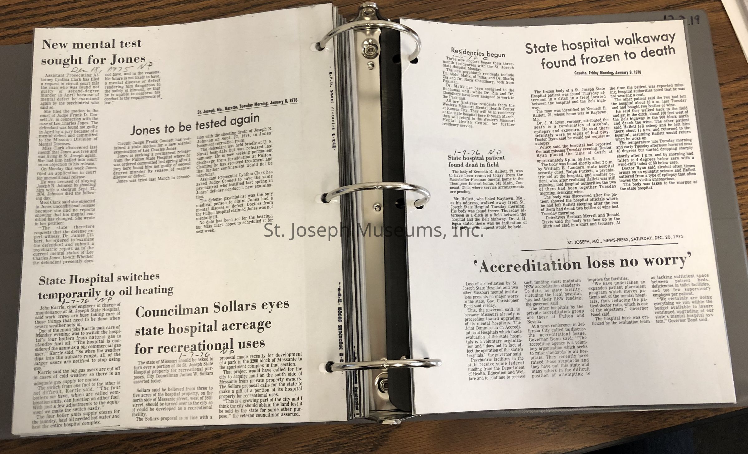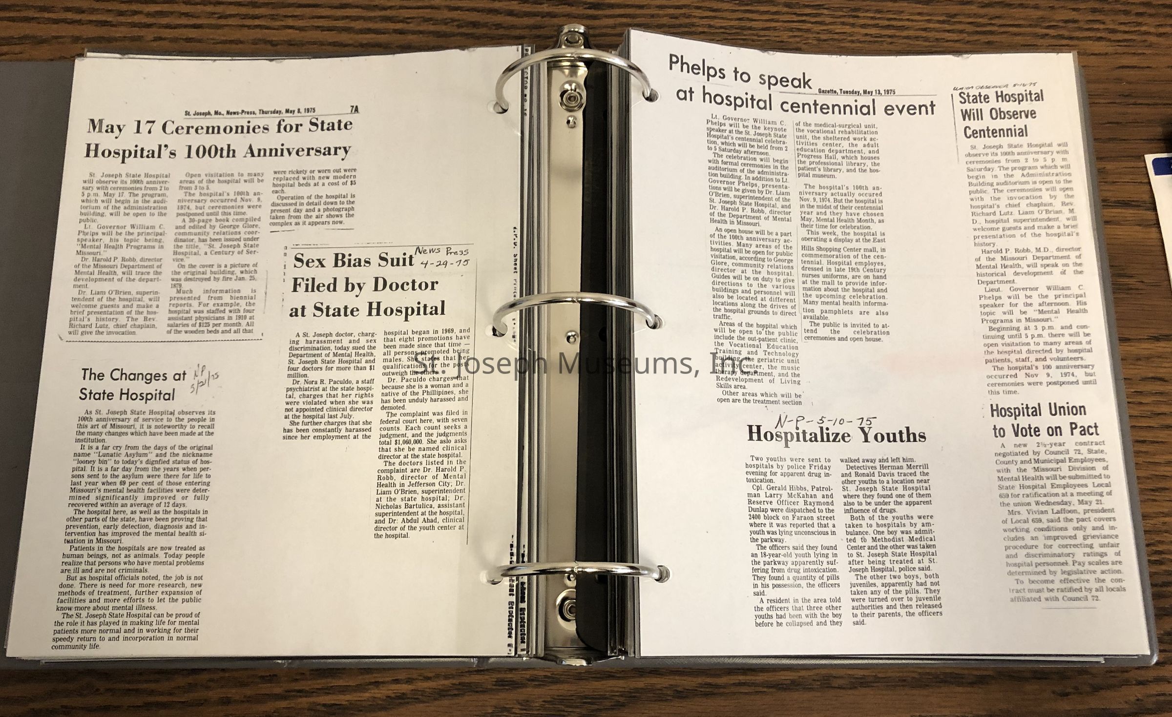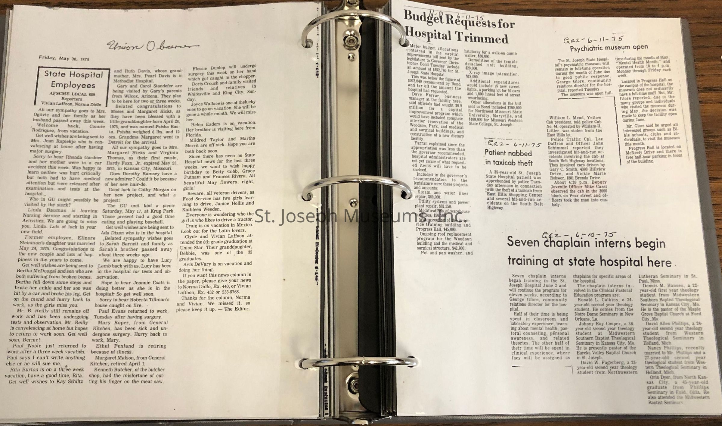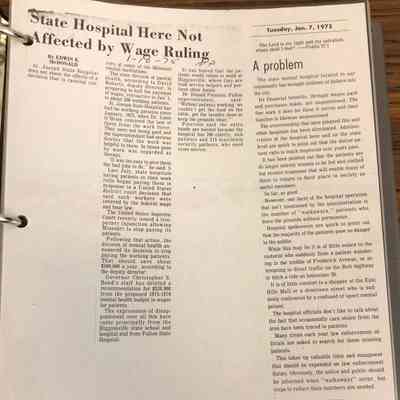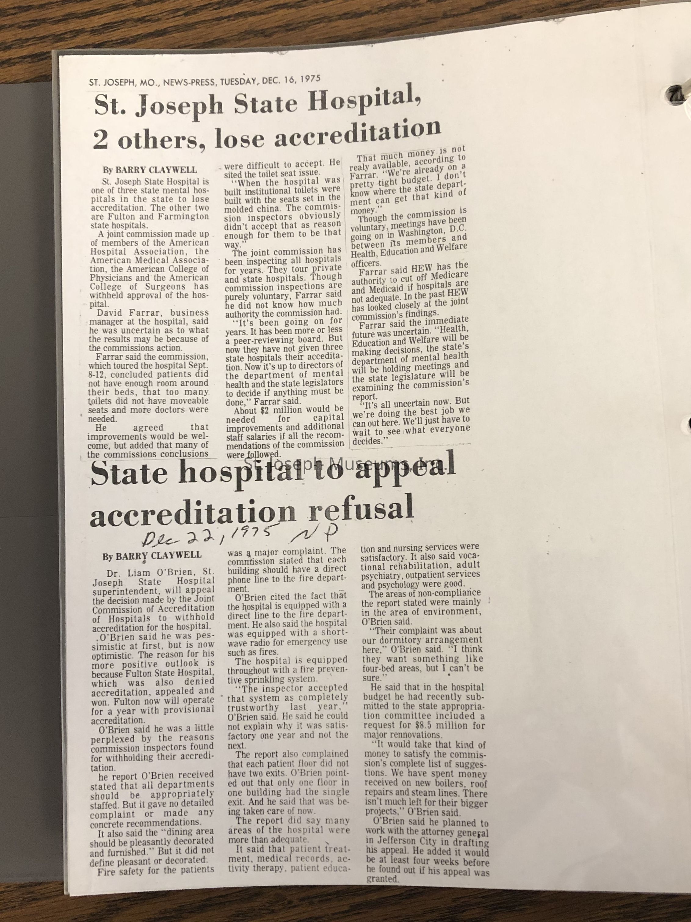 Newspaper Clippings concerning the State Hospital in 1975.Entry/Object ID