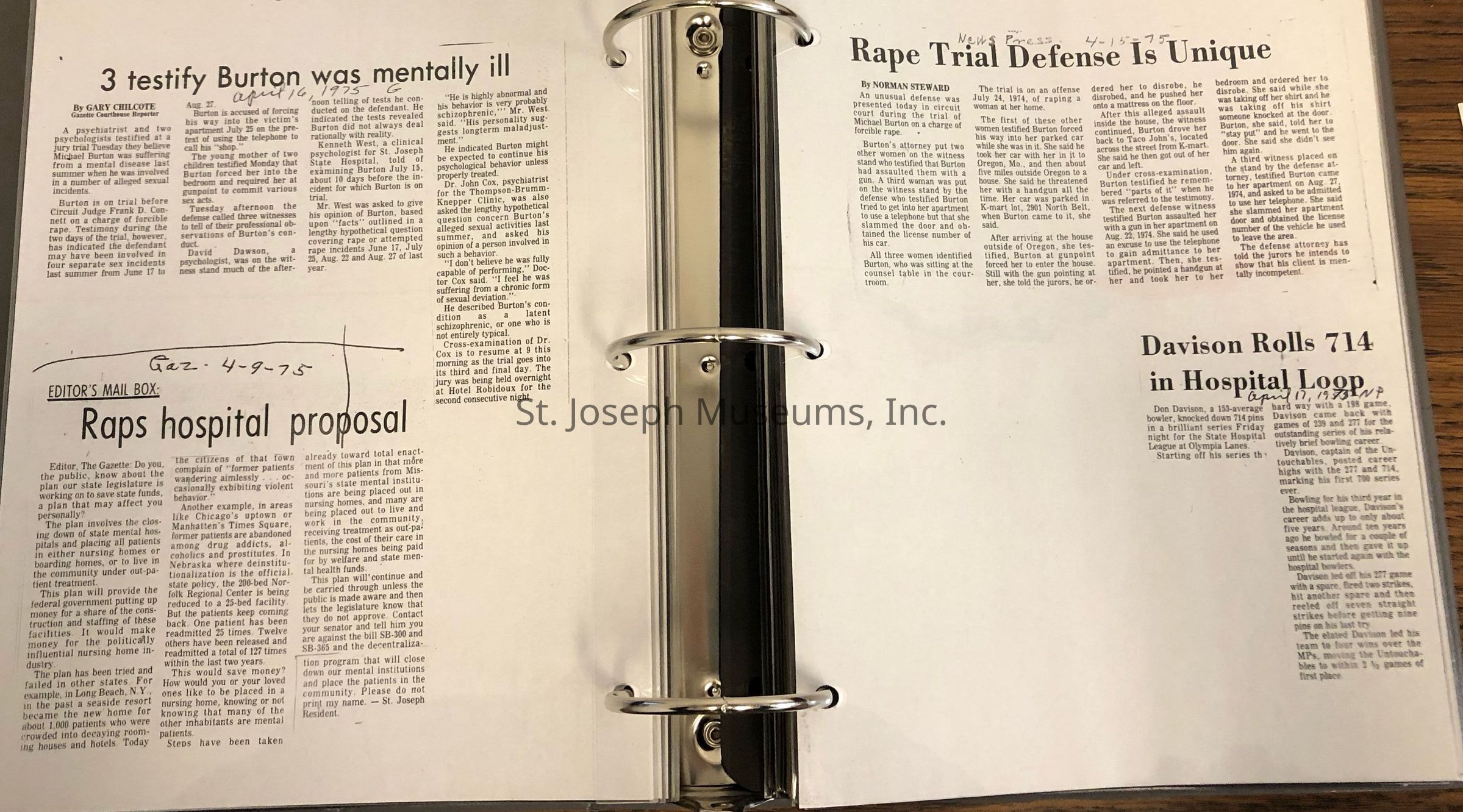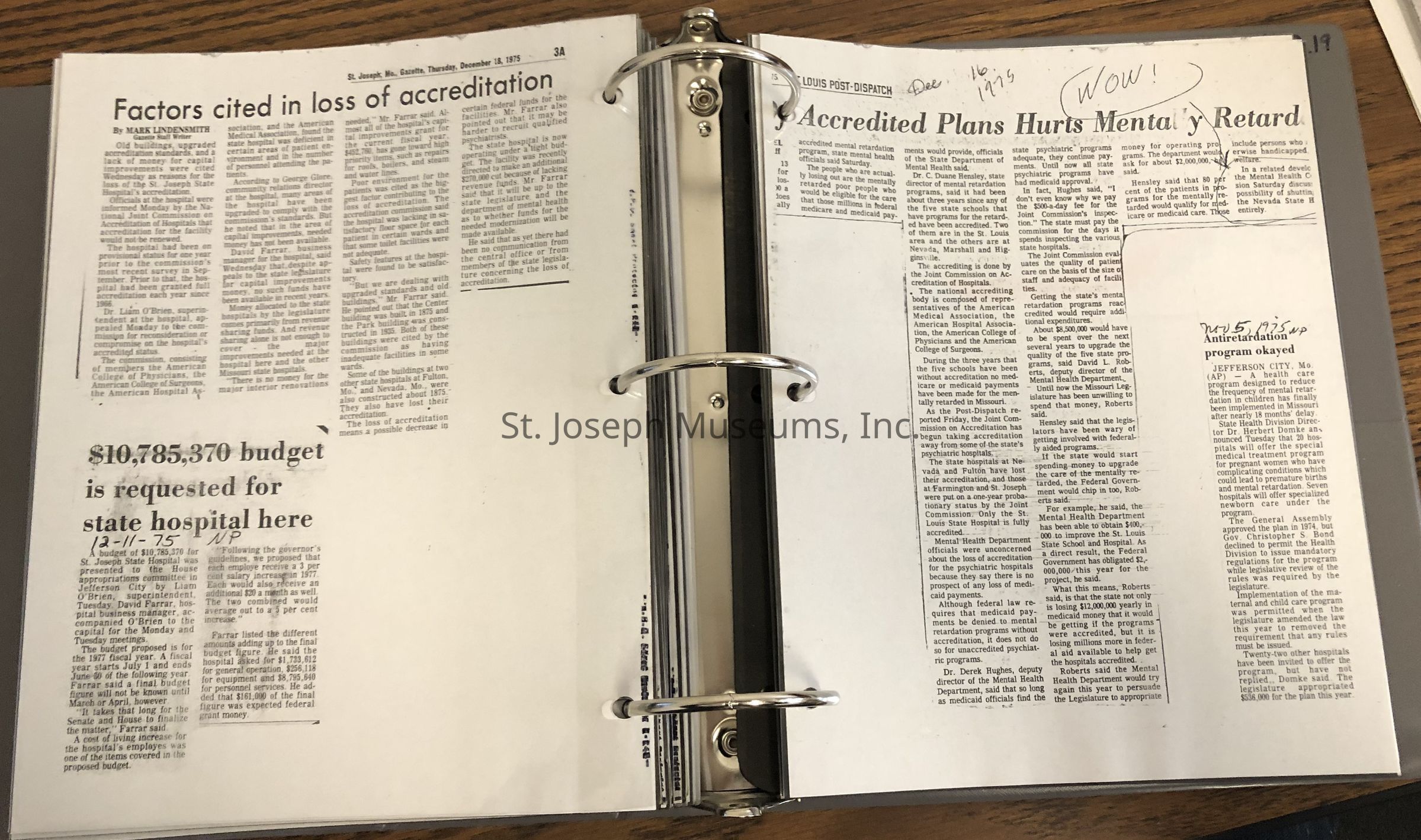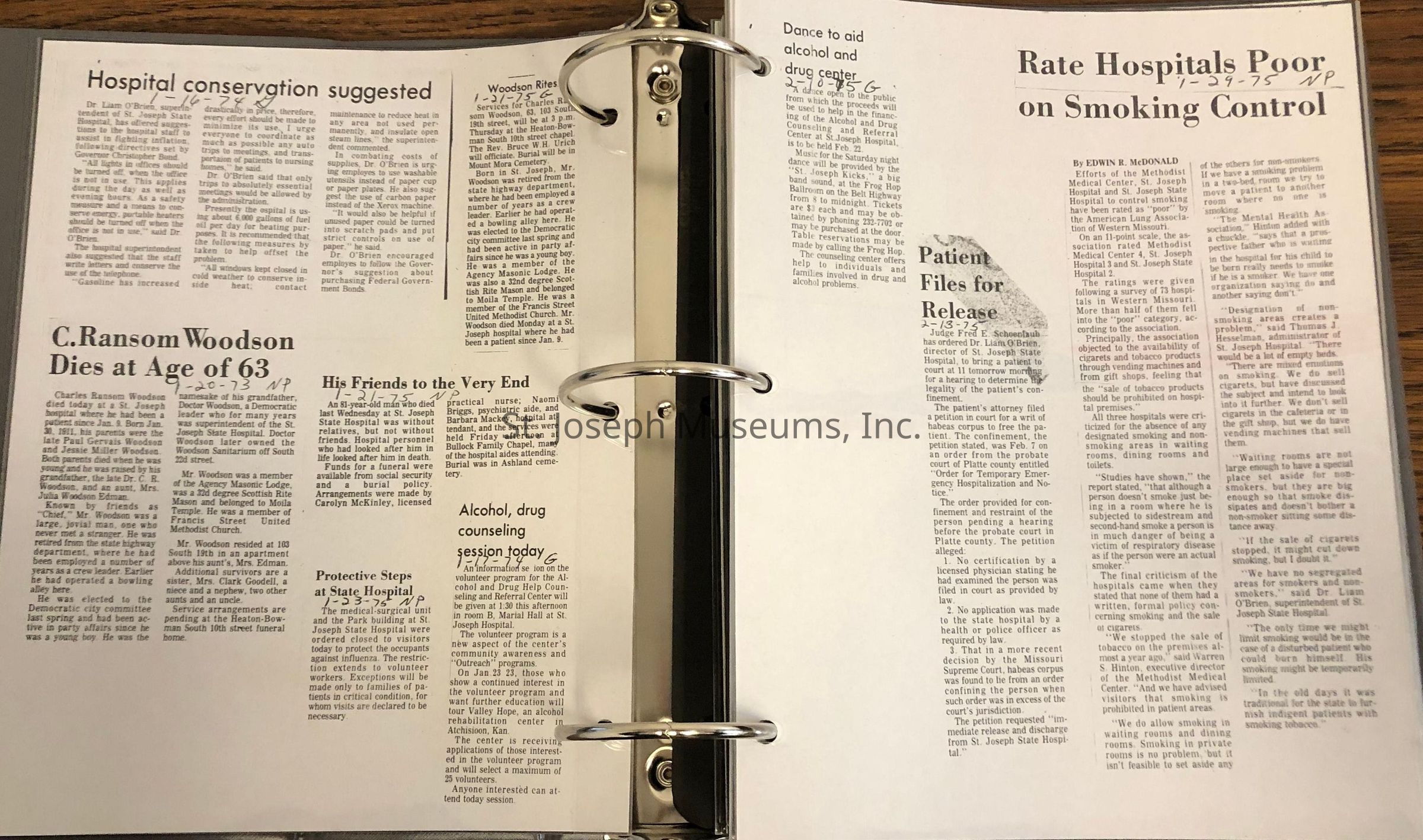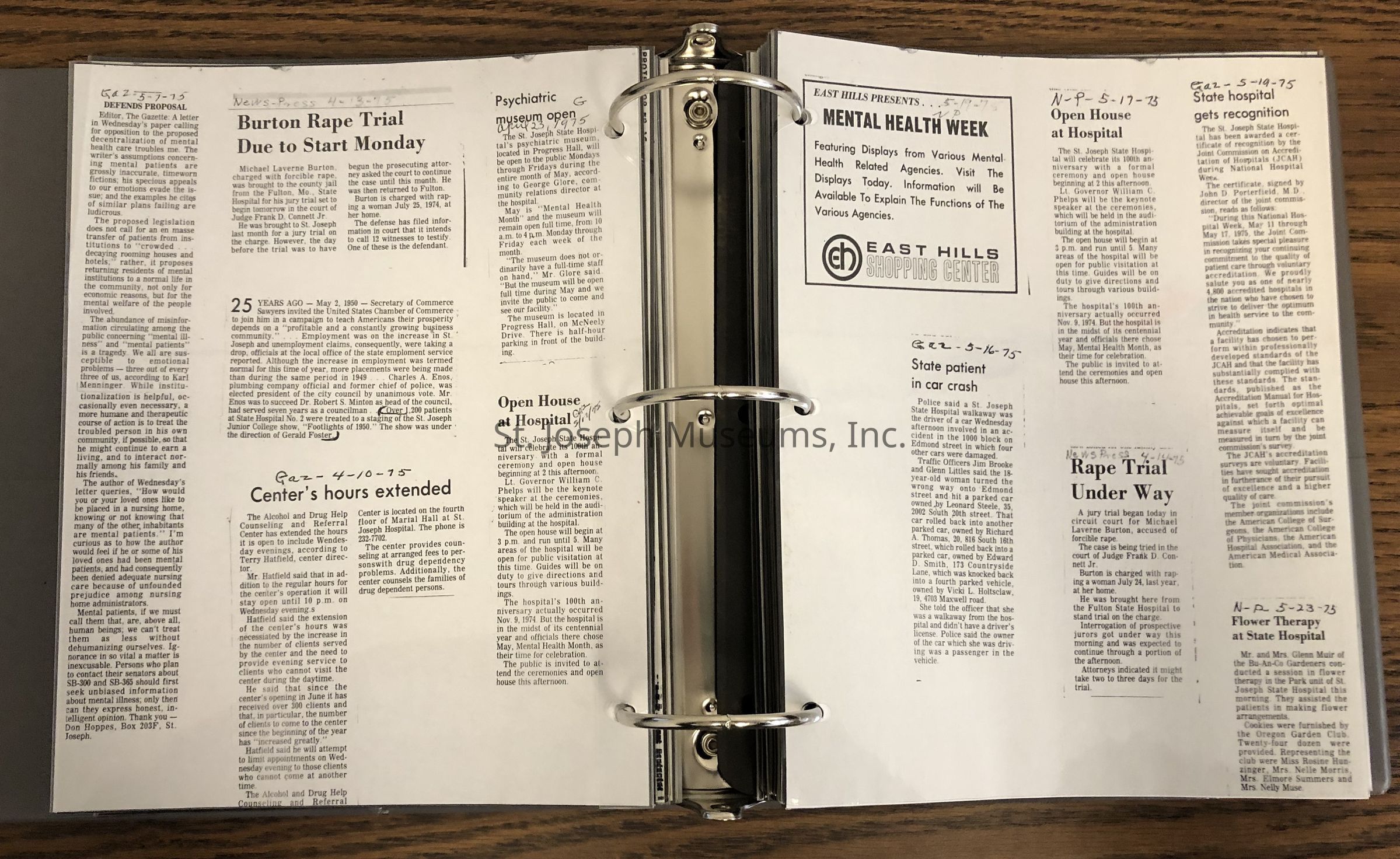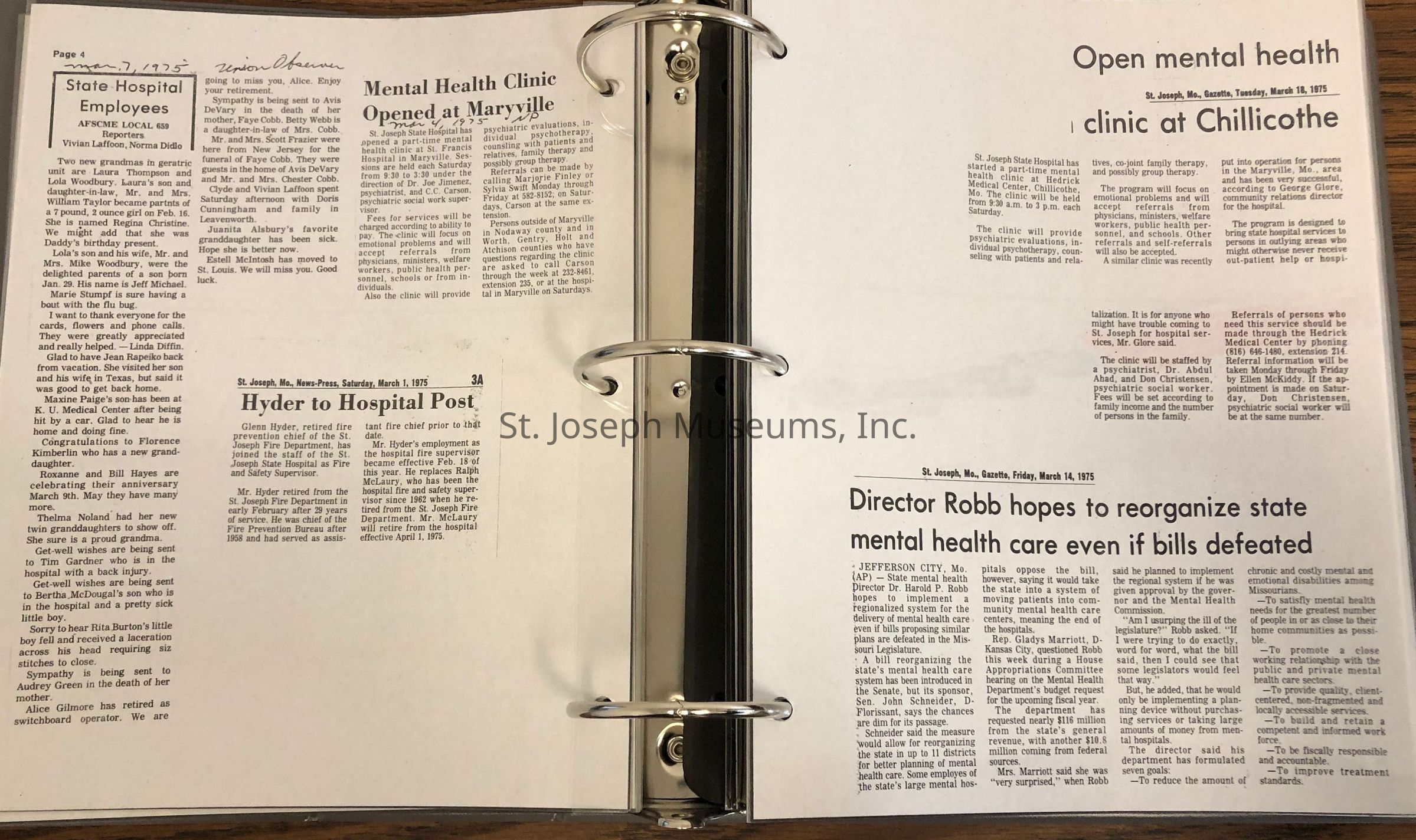 Newspaper Clippings concerning the State Hospital in 1975.Entry/Object ID