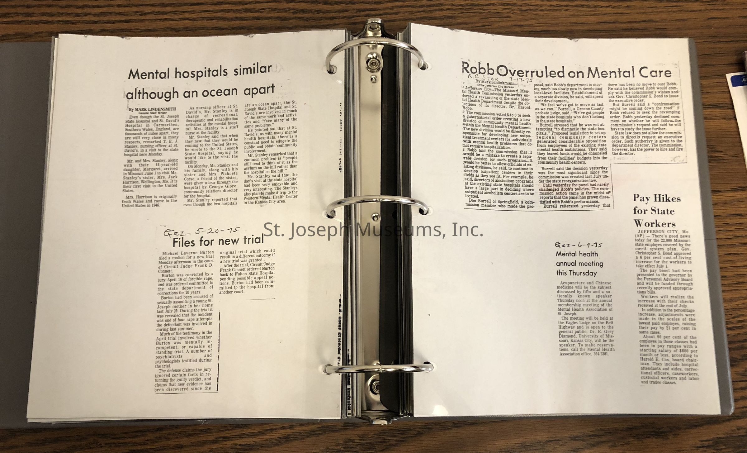 Art Therapy, St. Joseph State Hospital No. 2Auxillary, Fulton State Hospital No. 1, Glore Psychiatric Museum, Hospital Financial Records, Music Therapy, Patient Life, Patient Testing, St. Joseph State Hospital No. 2, St. Joseph State Hospital No. 2 Staff, Volunteer Services, Woodson Children CenterCondition