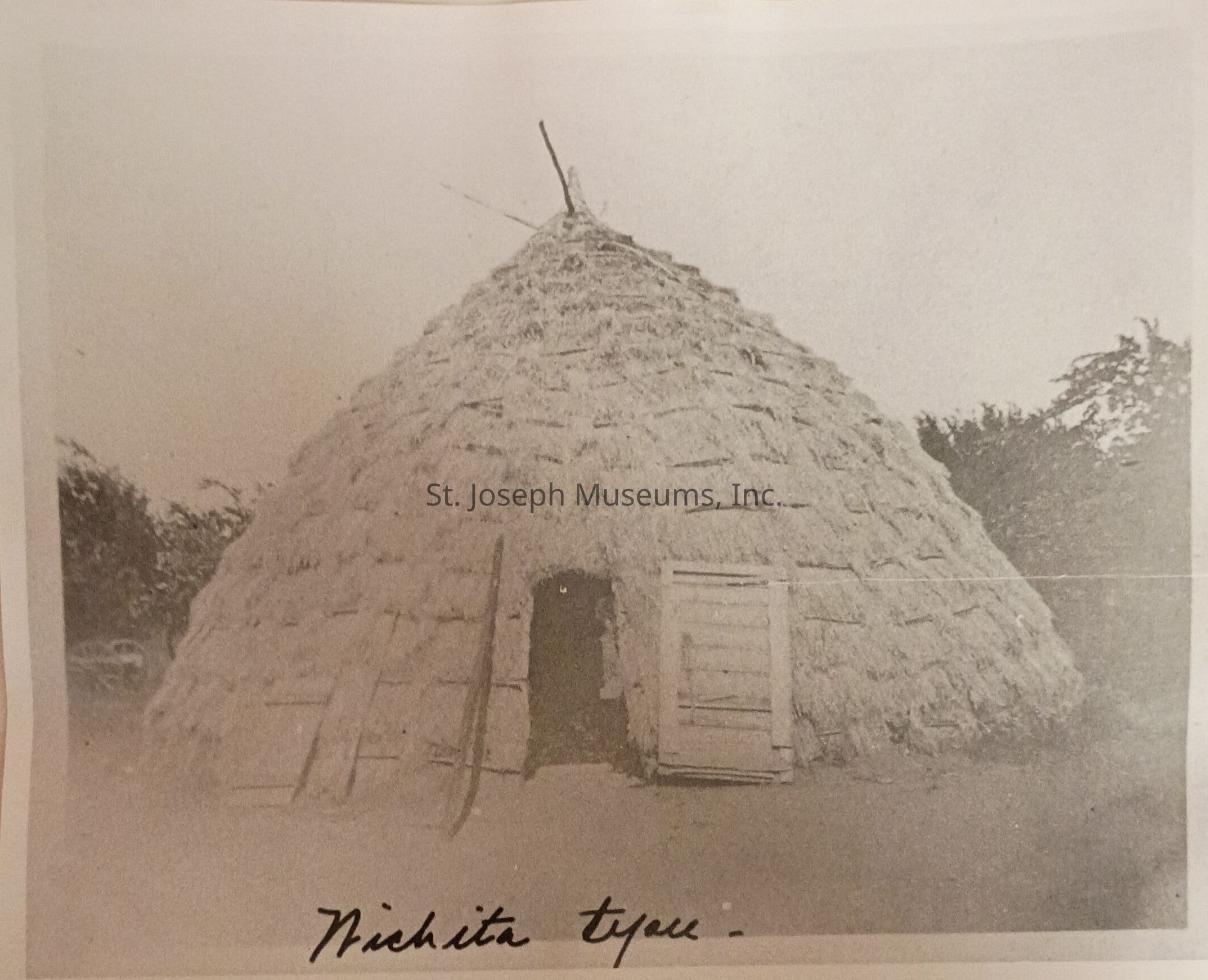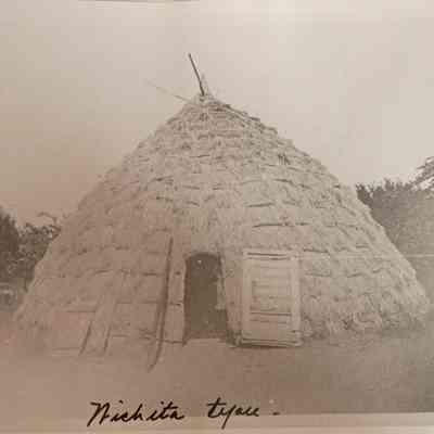 Black and white photograph of Nichita Teepee Part of Mett Shippee Album of Indian Photos
