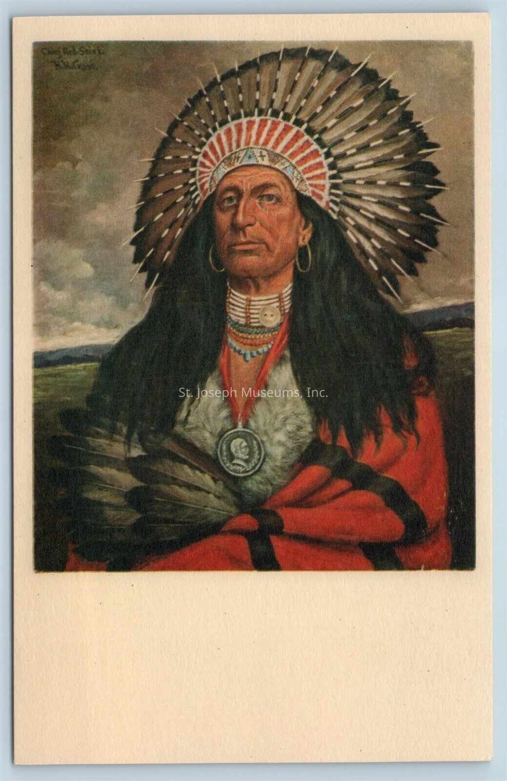 The Indians of North America series PO Dolls series No 5. Oglala Sioux warriors red shirt died in 1888 from painting by H.H. Cross saroff doll collection