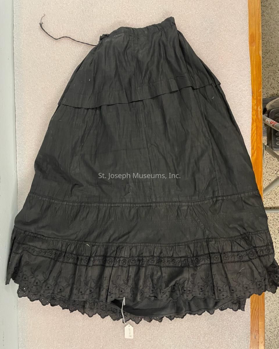 Petticoat/Black/Floral designs along bottom fringe/Shoestring tie around waist/34.5"x37"