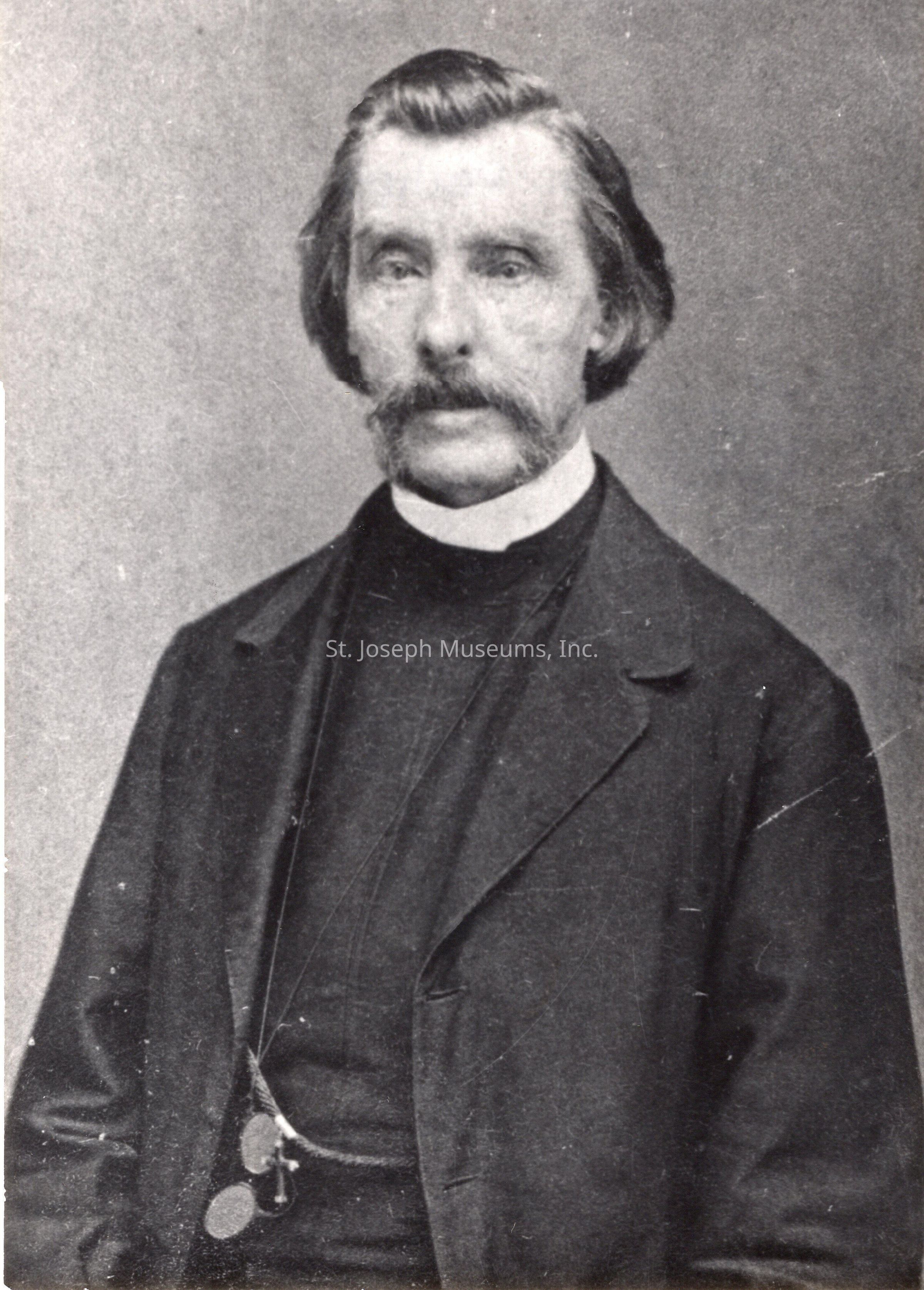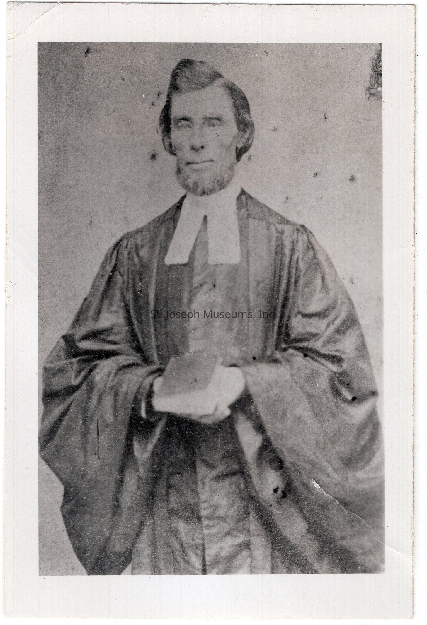 Philips, William (Rev.) Portraits, c. 1869. Two copies of photos of Rev. Philips in clerical attire. One in priest robes, and in clerical suit with collar. He was rector of Christ Episcopal Church in St. Joseph, 1869-1871.Collection