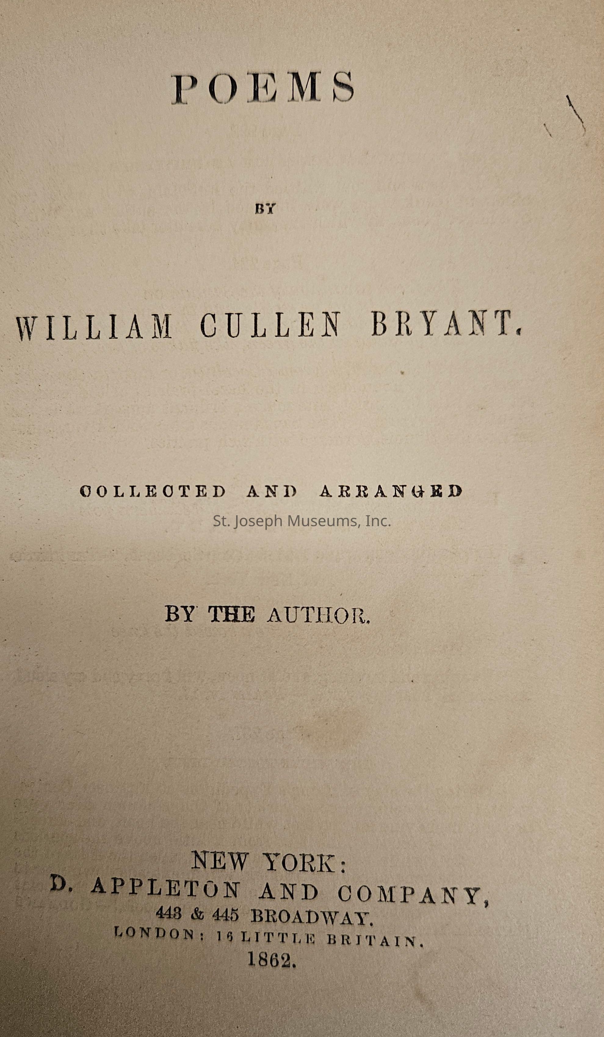 Poems by William Cullen Bryant is just that--a collection of his poetry--collected and arranged by him. The preface states that the poems "are all arranged according to the order of time in which they were written, as far as it can be ascertained."